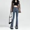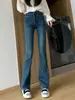 Jeans Blancos de Verano Delgados Micro-Acampanados para Mujer Cintura Alta Sueltos Temperamento Casual Elásticos Acampanados