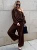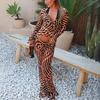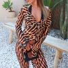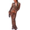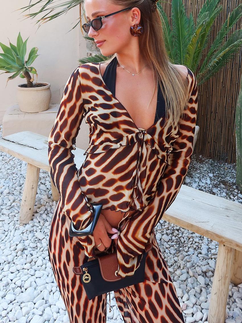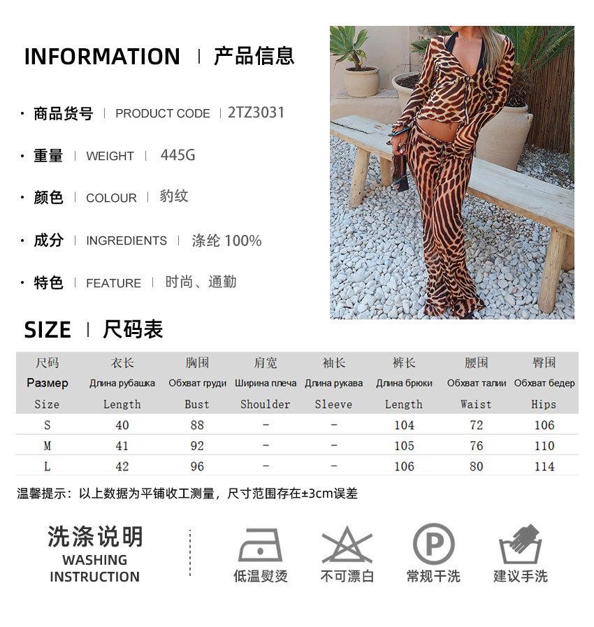 2025 Otoño/Invierno Nuevo Top Corto con Cordones Estampado de Leopardo Manga Larga Set de Pantalones Largos Mujer Sentido del Diseño Temperamento Moda Transfronteriza Para Ir al Trabajo