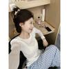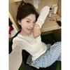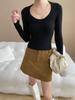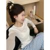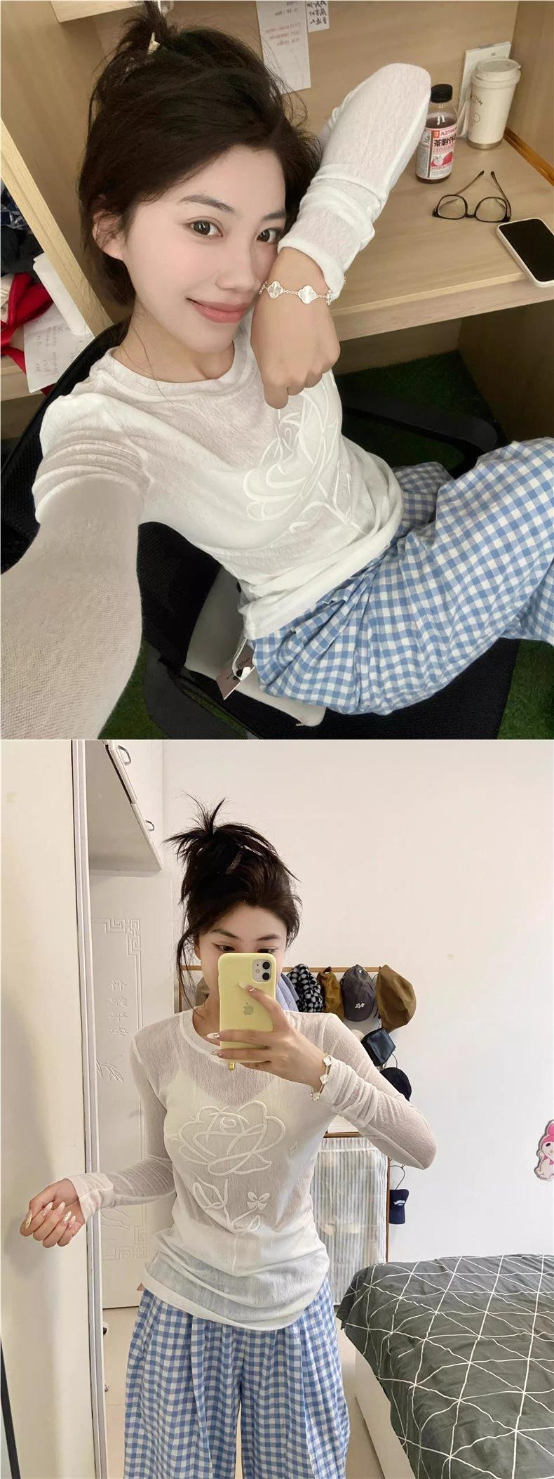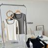 Playera Blanca de Manga Larga Acanalada Tencel con Espuma 3D Ajustada Cintura Ceñida High Street Hot Girl Base Top Protección Solar