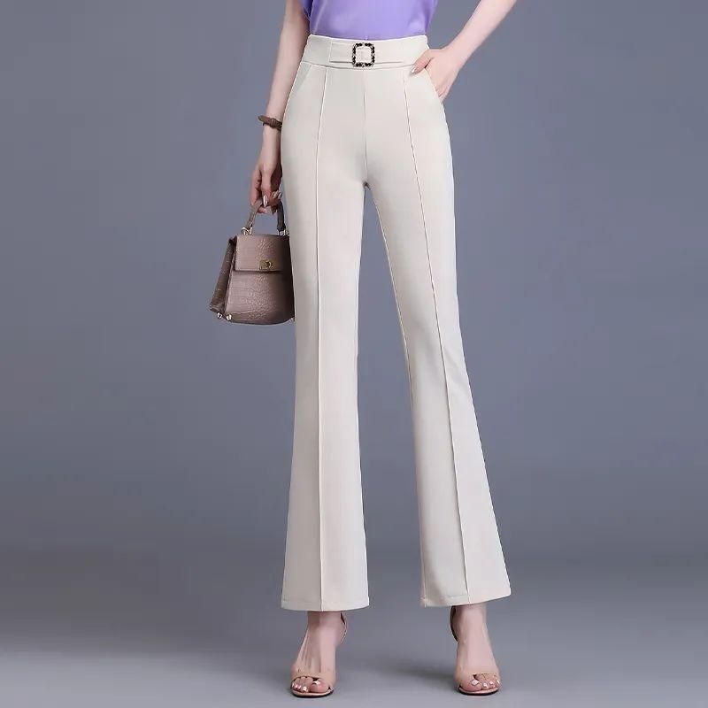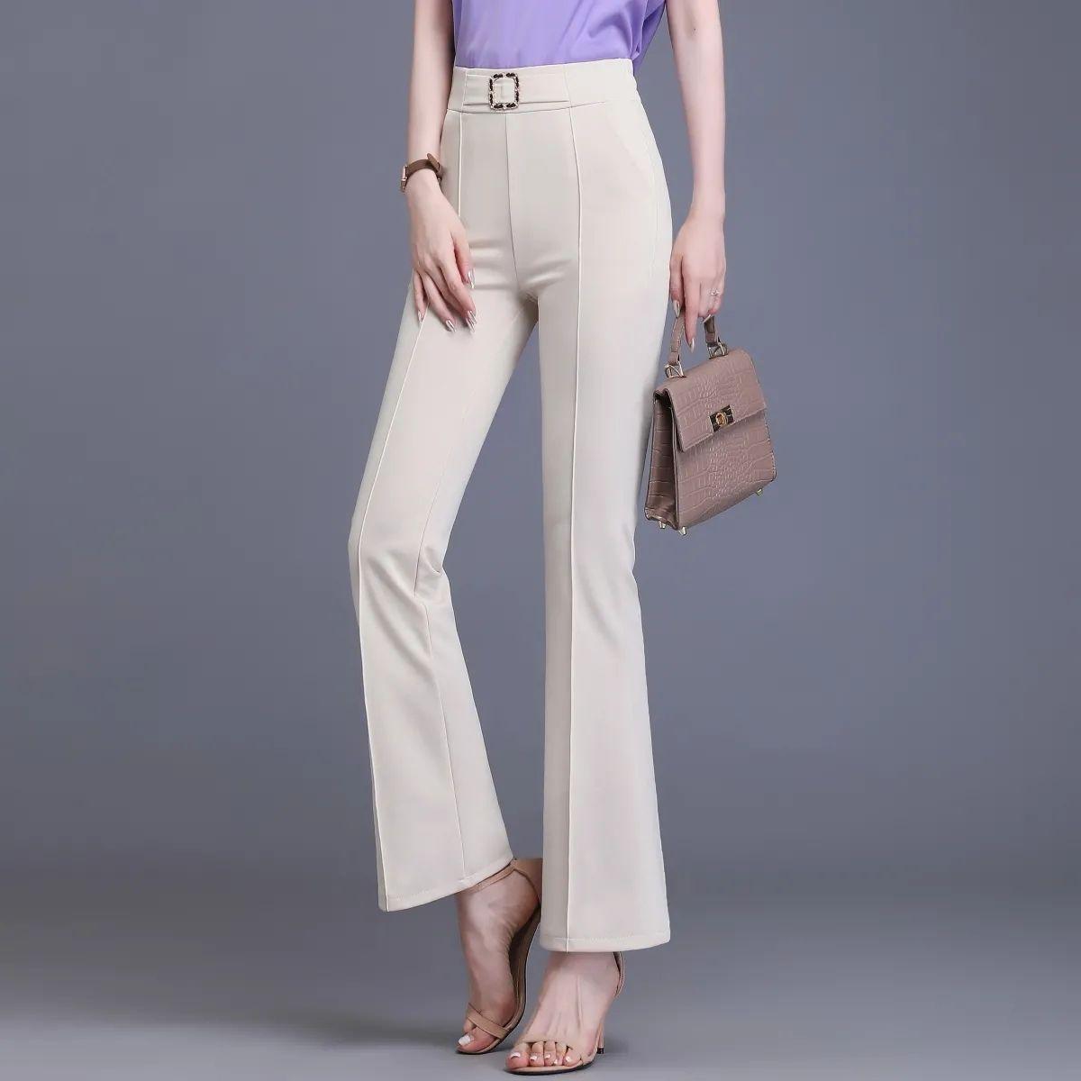 Pantalones de Traje Acampanados para Mujer, Estilo Nuevo de Primavera y Verano, Cintura Alta, Slim, Versátiles, Elásticos, Cómodos y con Caída, Pantalones Acampanados Casuales