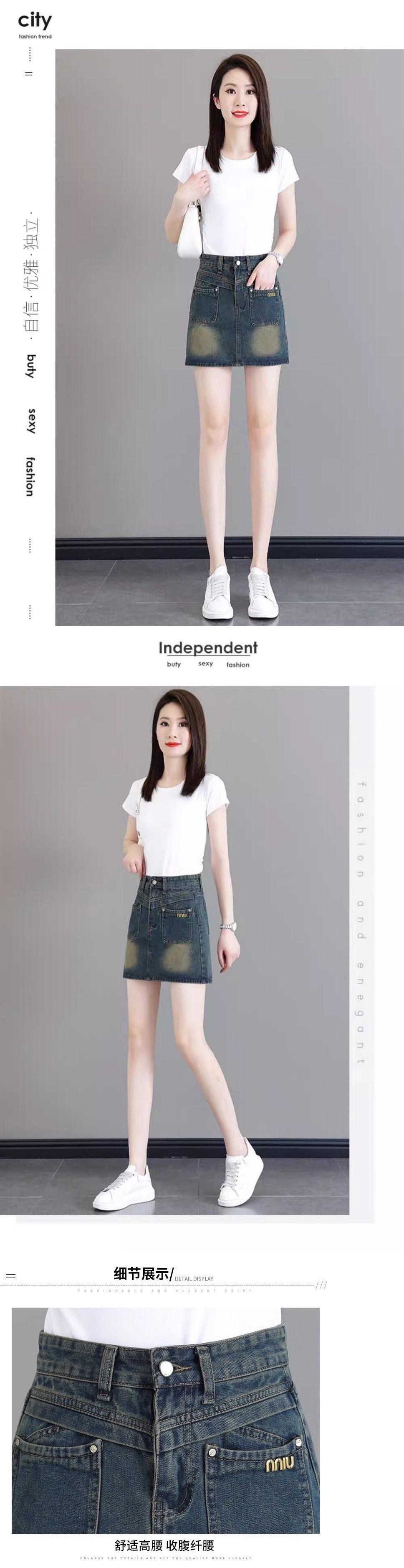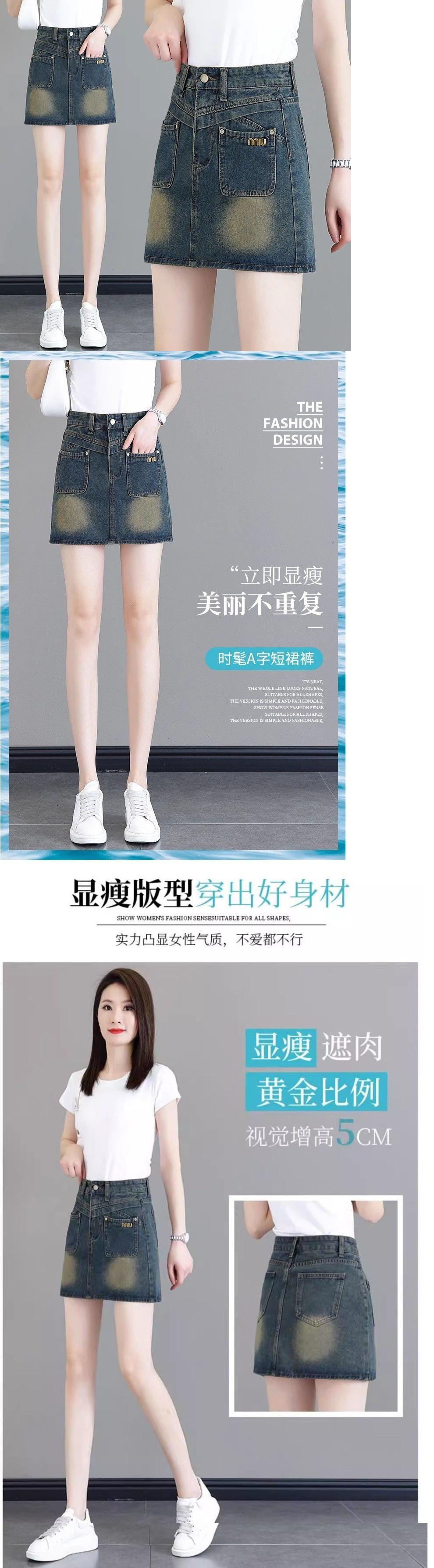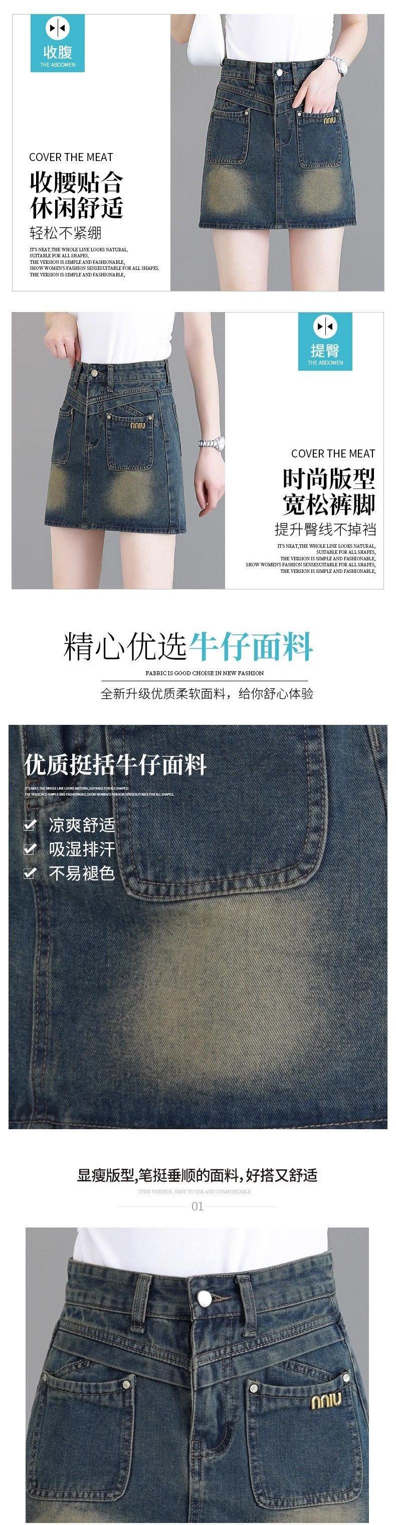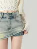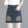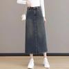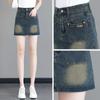 Falda de mezclilla retro para mujer verano 2025 nueva look adelgazante de cintura alta falda A de cadera falda de ropa de trabajo americana