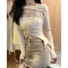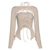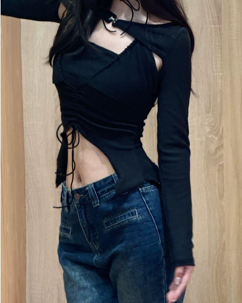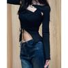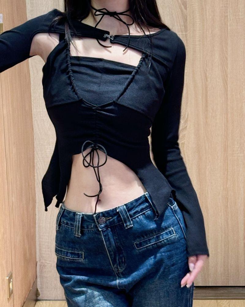 Tops Irregulares Estilo Americano para Mujer Nuevo 2025 Estilo Europeo y Americano Sexy de Manga Larga Calado Conjunto de Dos Piezas con Tirantes