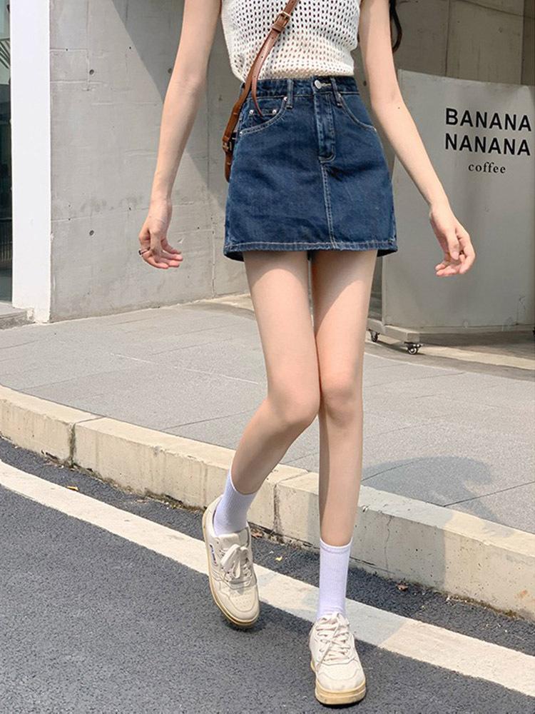 Falda Pantalón de Mezclilla de Tiro Alto Retro Americano de Verano 2025 para Mujer, Nueva Falda Pantalón Ajustada Versátil para Chica Hot, Falda Corta Ajustada