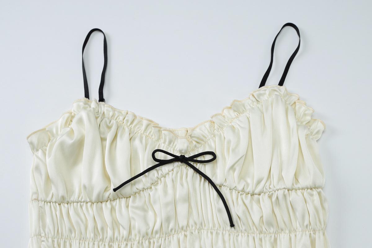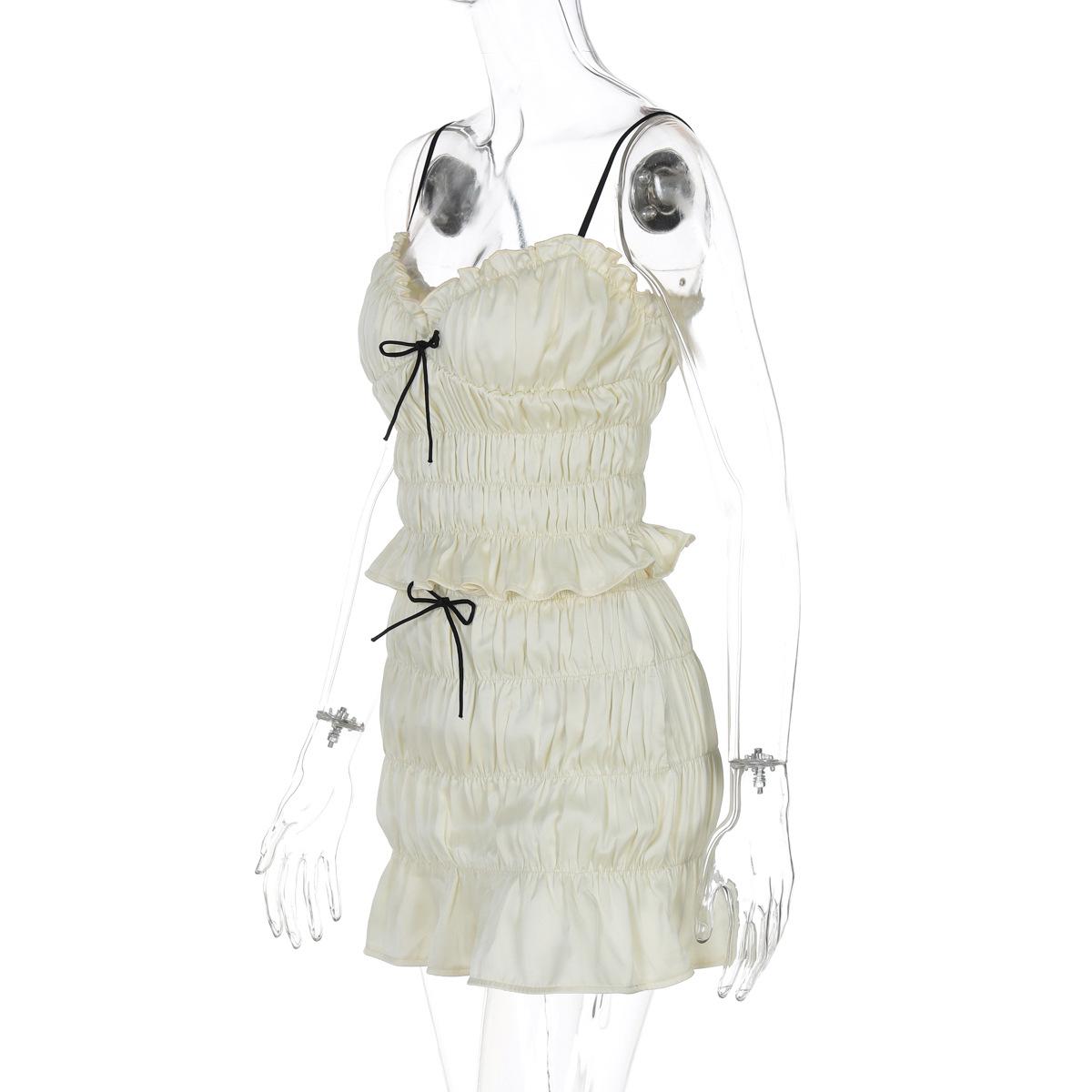Estilo Ins de Moda Europeo y Americano Transfronterizo Nuevo Estilo Fresco y Dulce Pequeños Tirantes Falda Plisada de Chifón de Color Puro Traje para Mujer