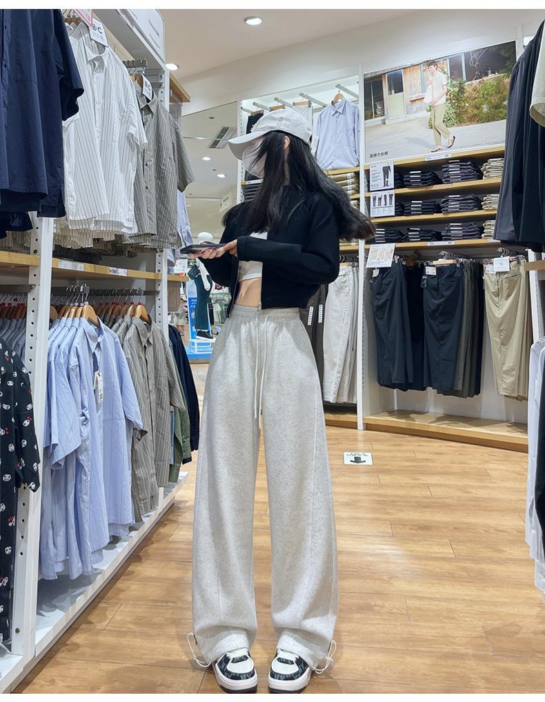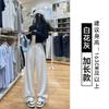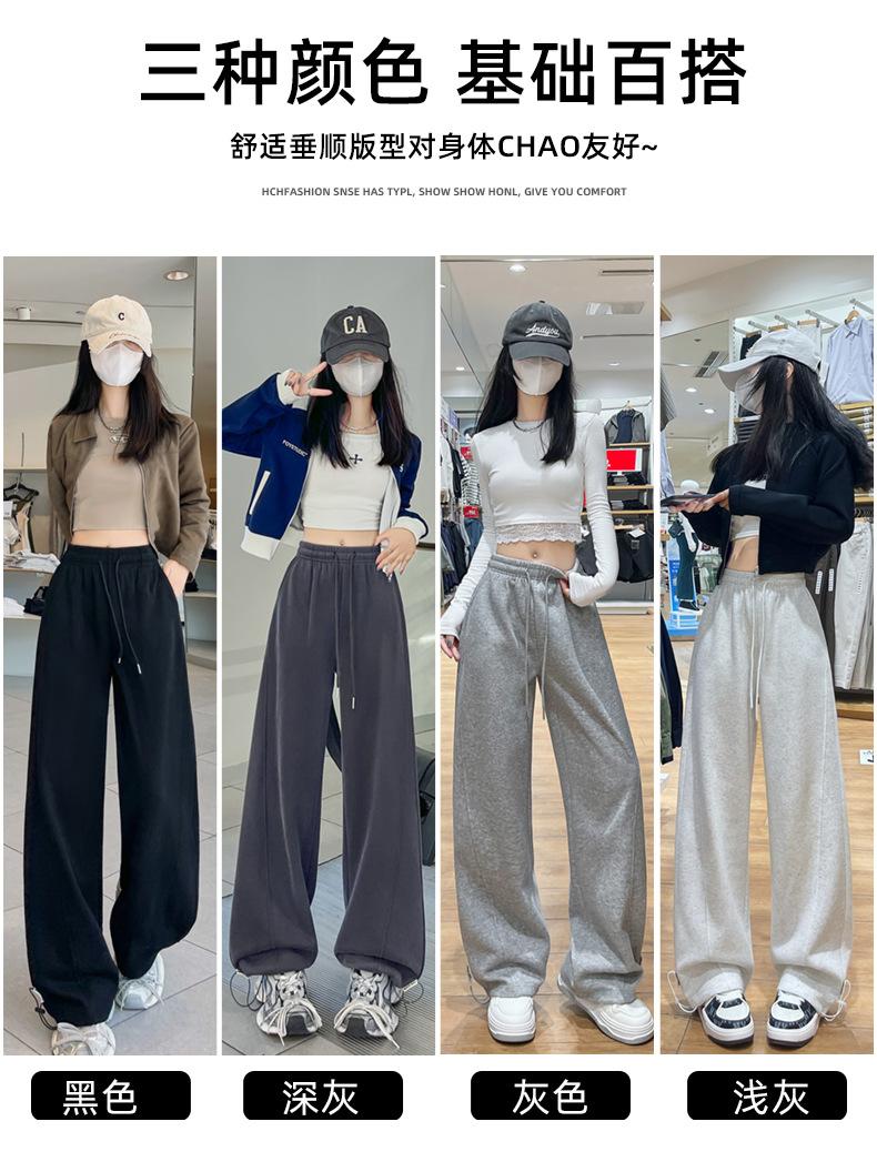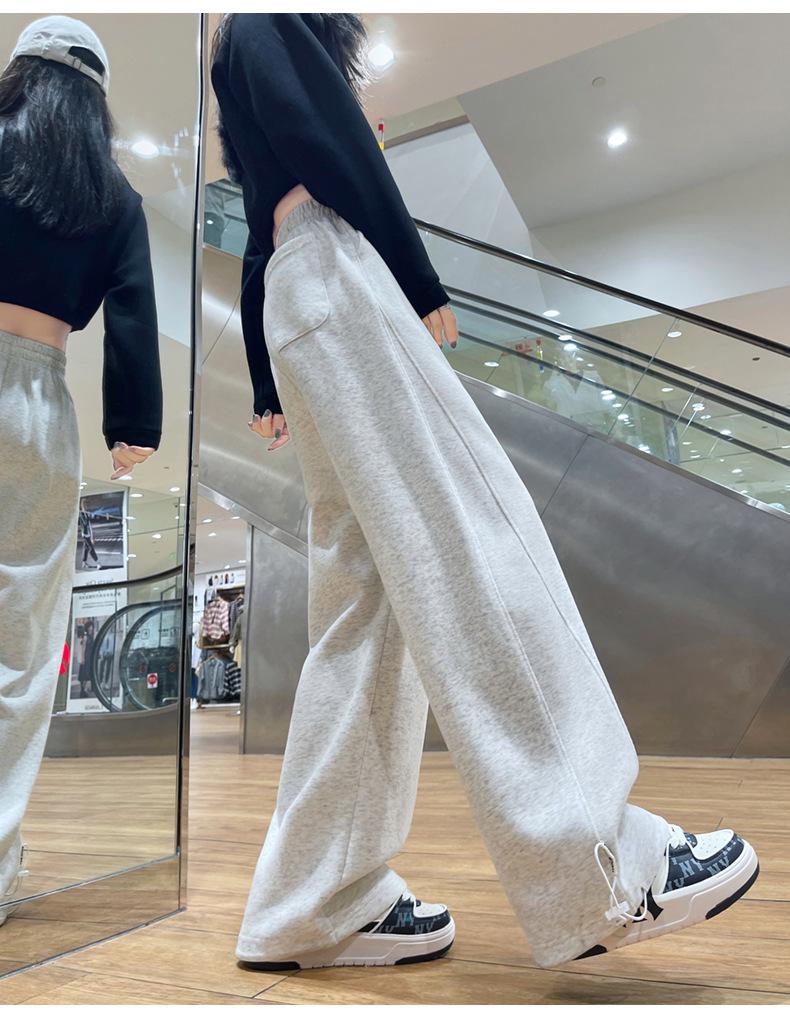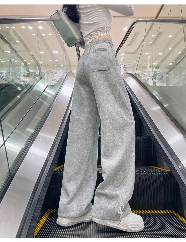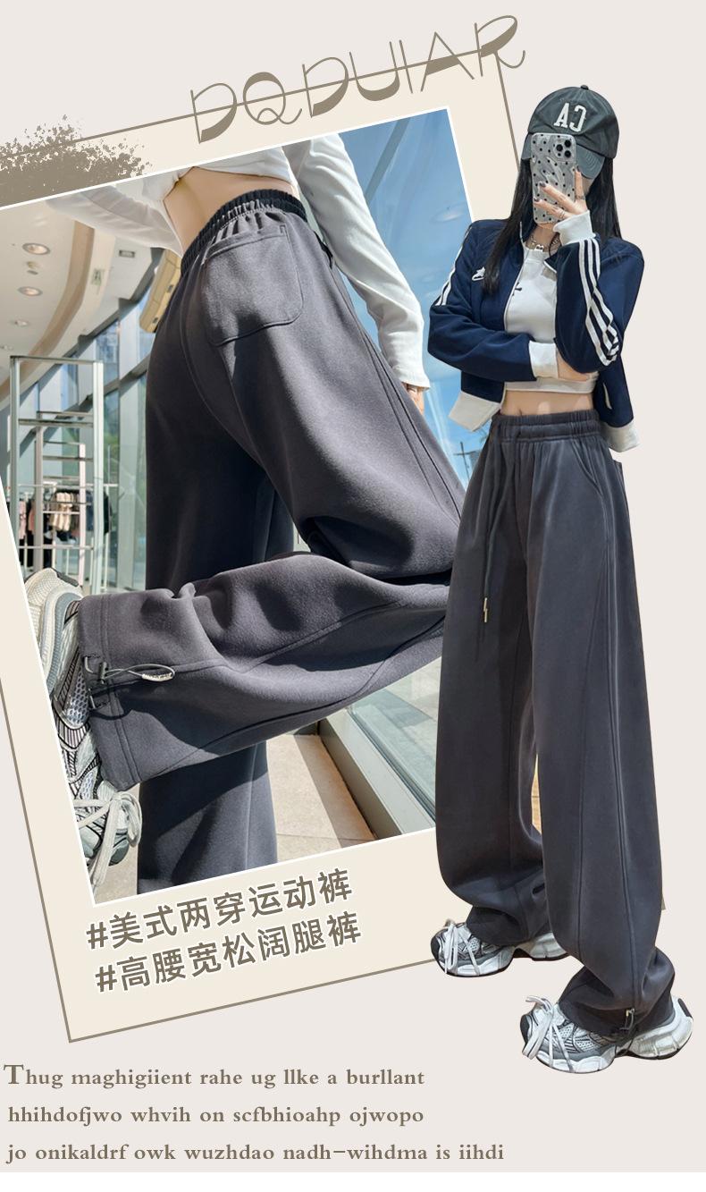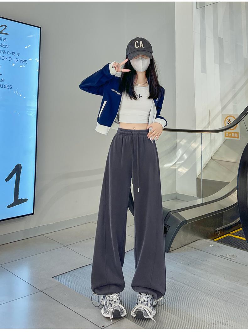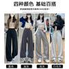 Pantalón de Jogging Gris Americano Mujer Primavera Otoño Cintura Alta Pierna Curva Pierna Ancha Suelto Pierna Recta Casual Plátano