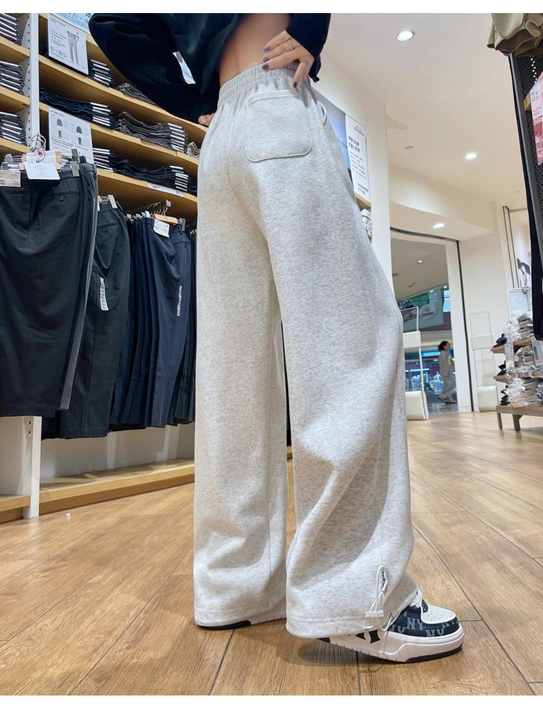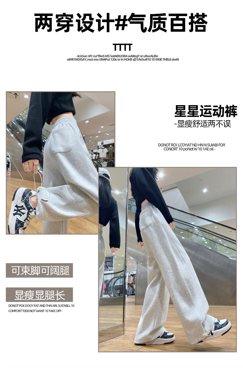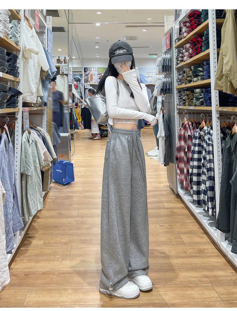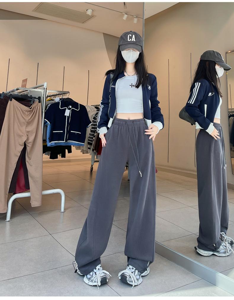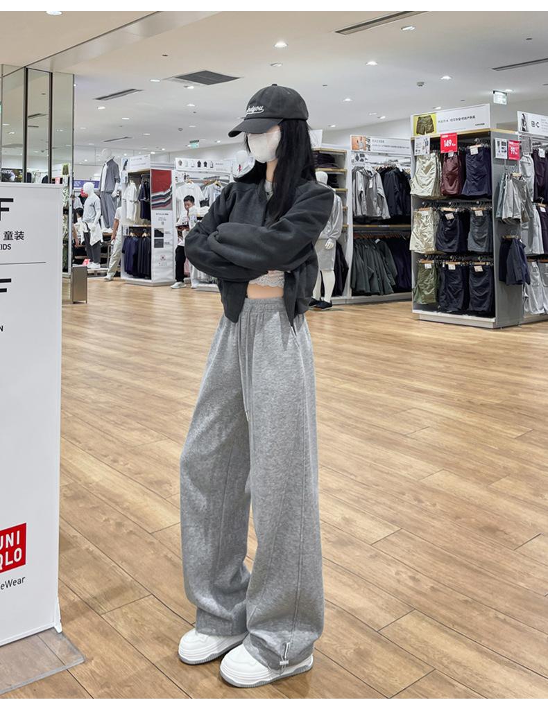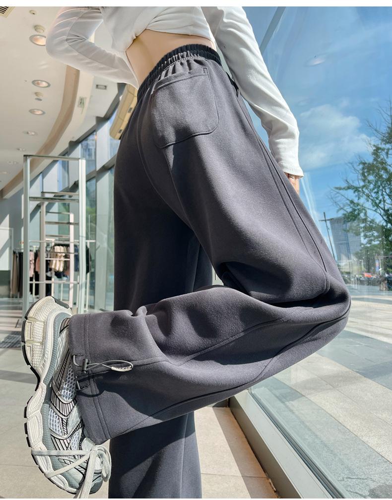 Pantalón de Jogging Gris Americano Mujer Primavera Otoño Cintura Alta Pierna Curva Pierna Ancha Suelto Pierna Recta Casual Plátano
