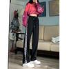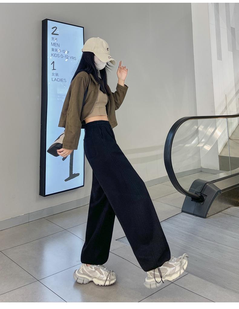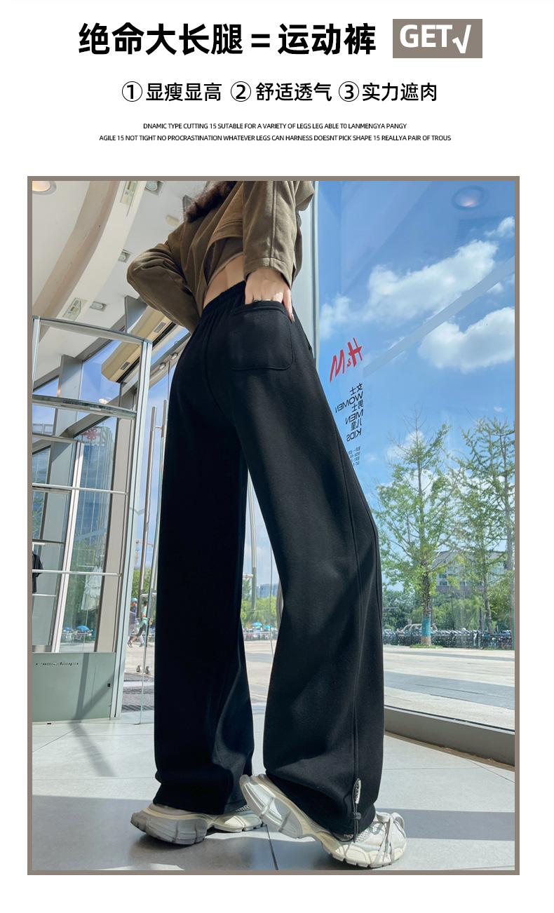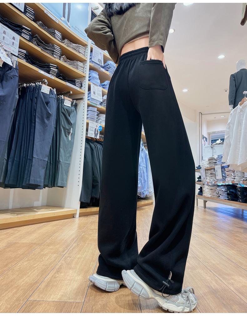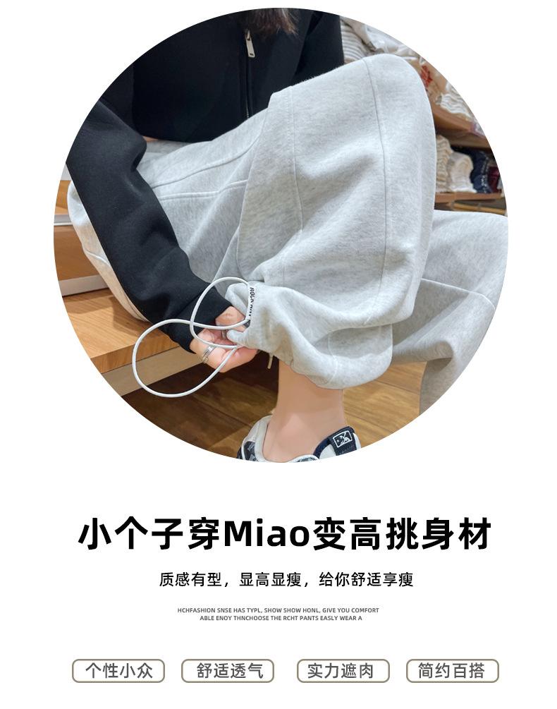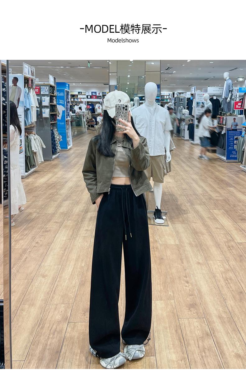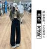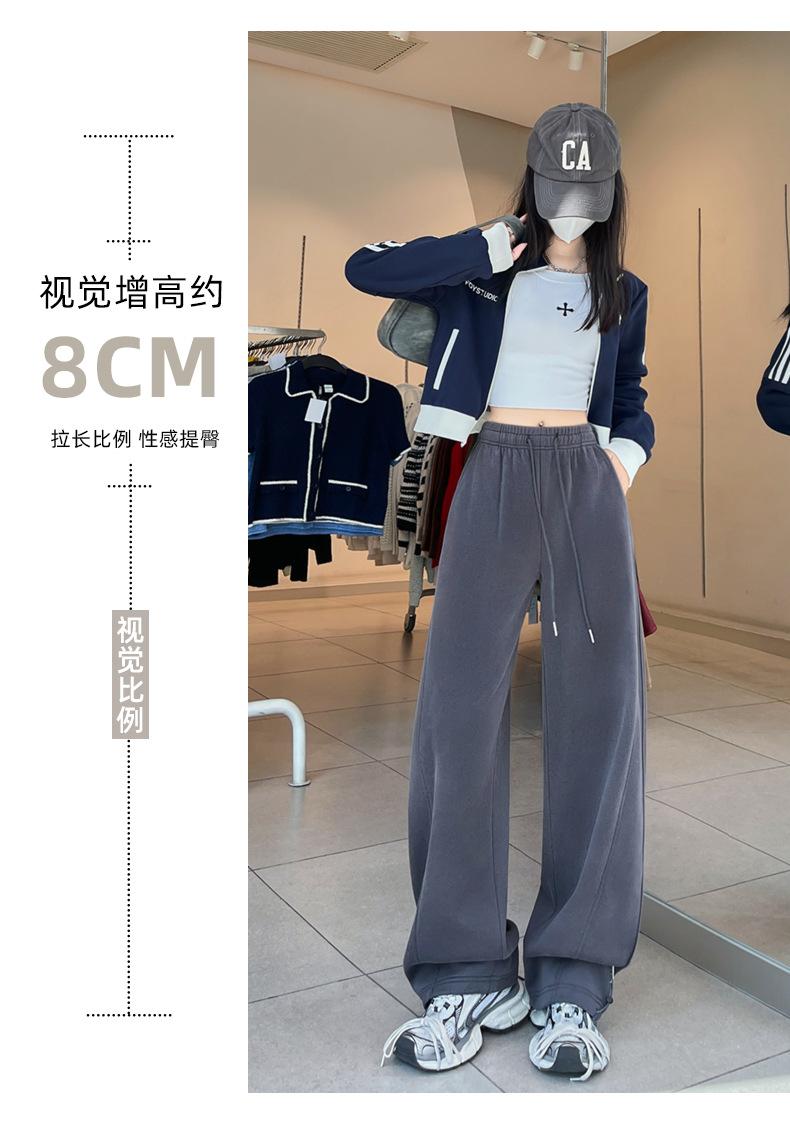 Pantalón de Jogging Gris Americano Mujer Primavera Otoño Cintura Alta Pierna Curva Pierna Ancha Suelto Pierna Recta Casual Plátano