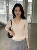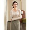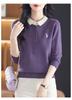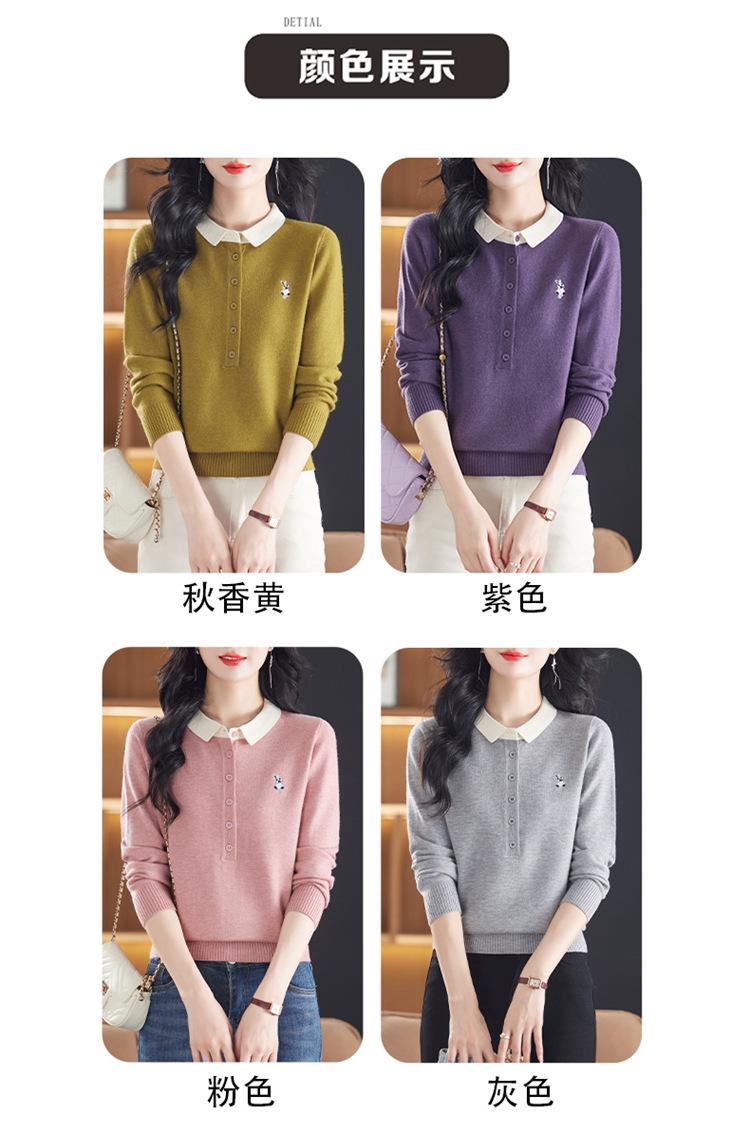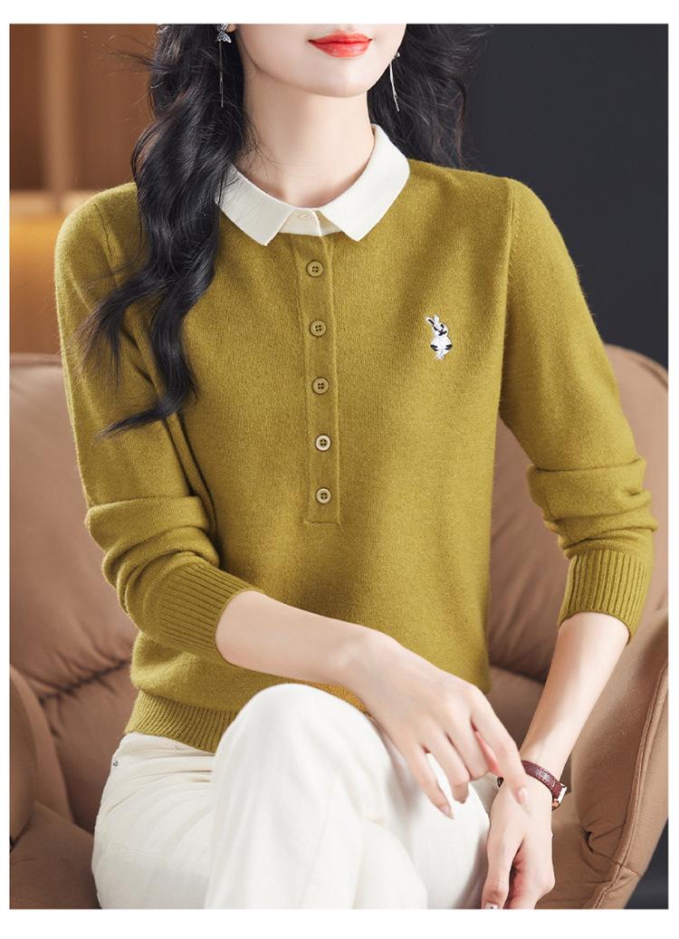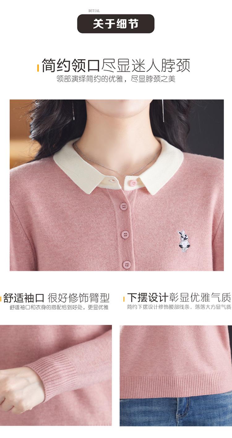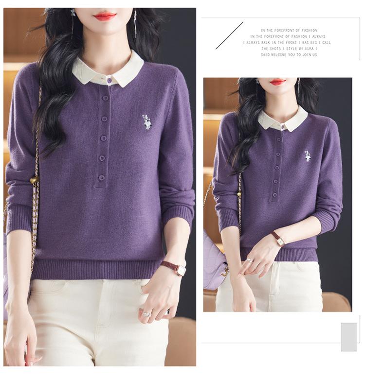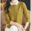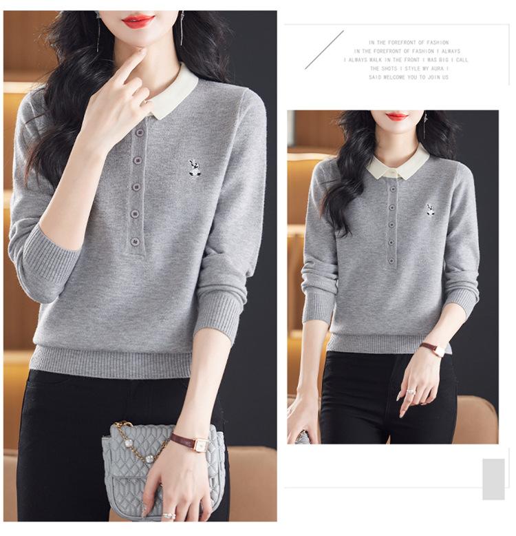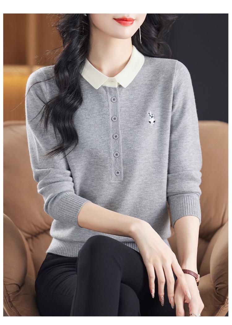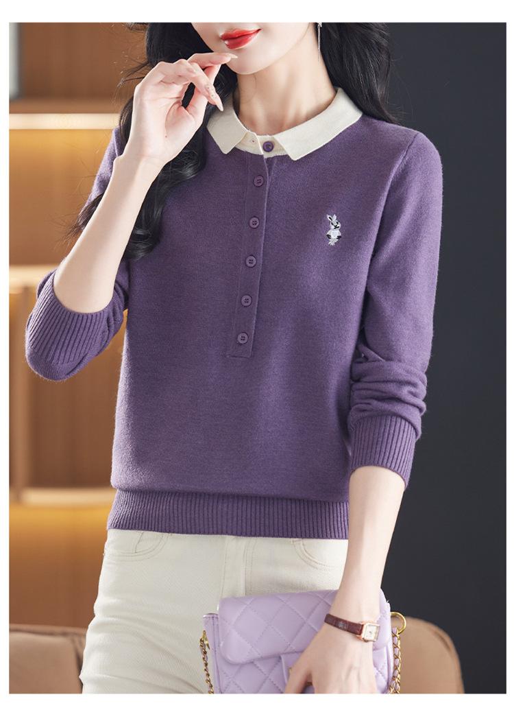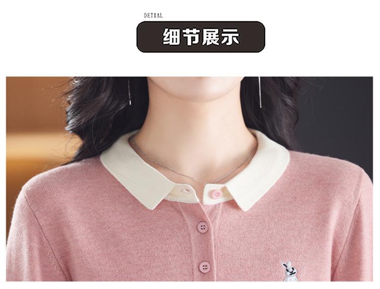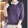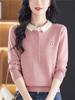 Camiseta de Manga Larga de Primavera y Otoño para Mujer con Cuello Polo Rosa Tejido Moderna Top Capa Base para Mamá
