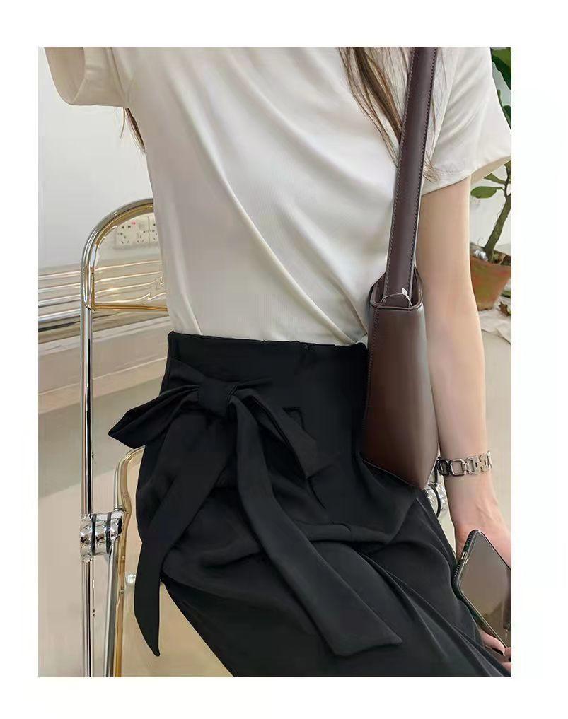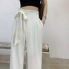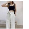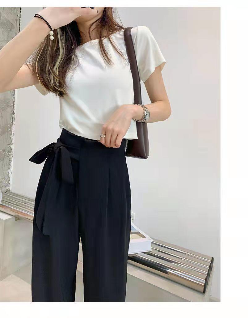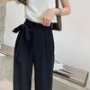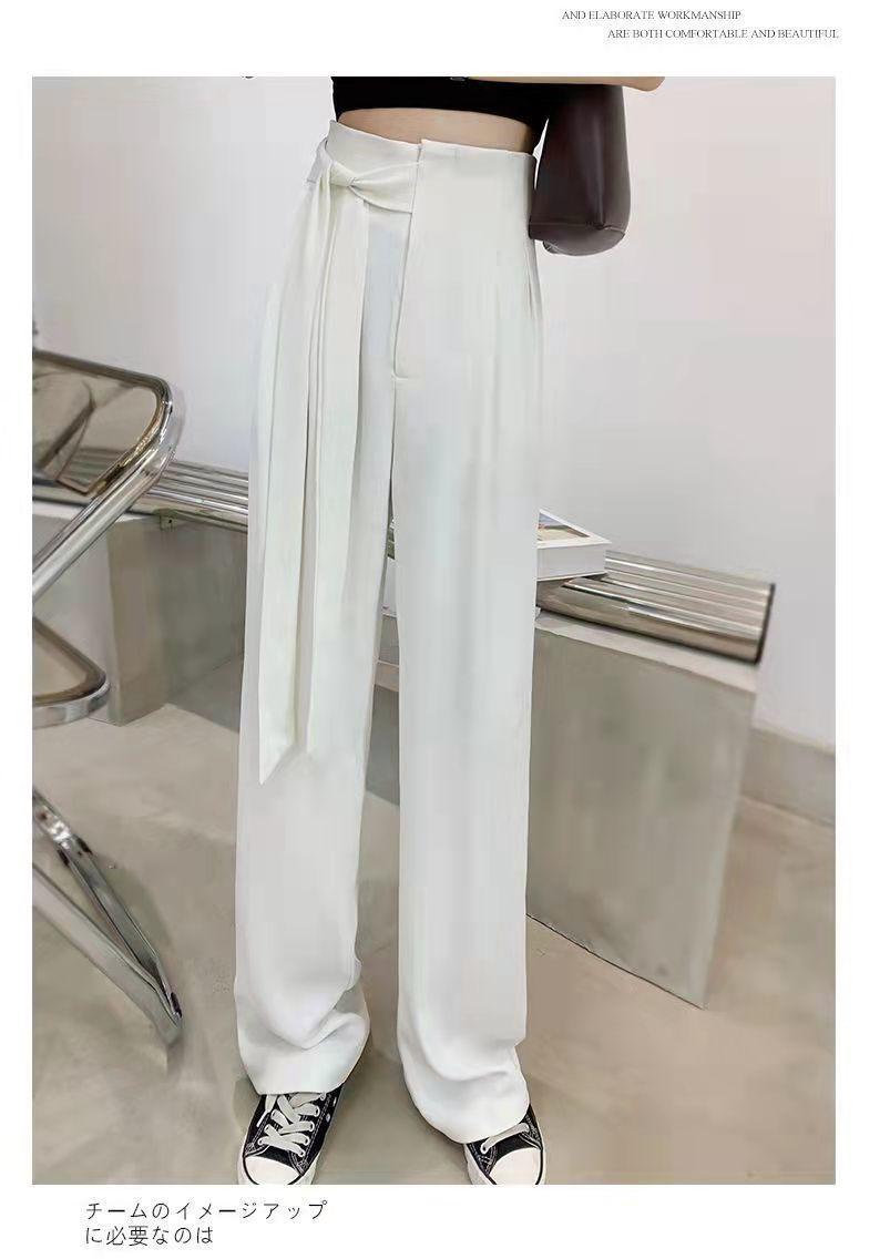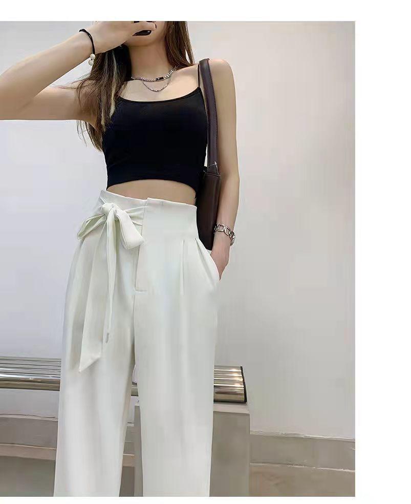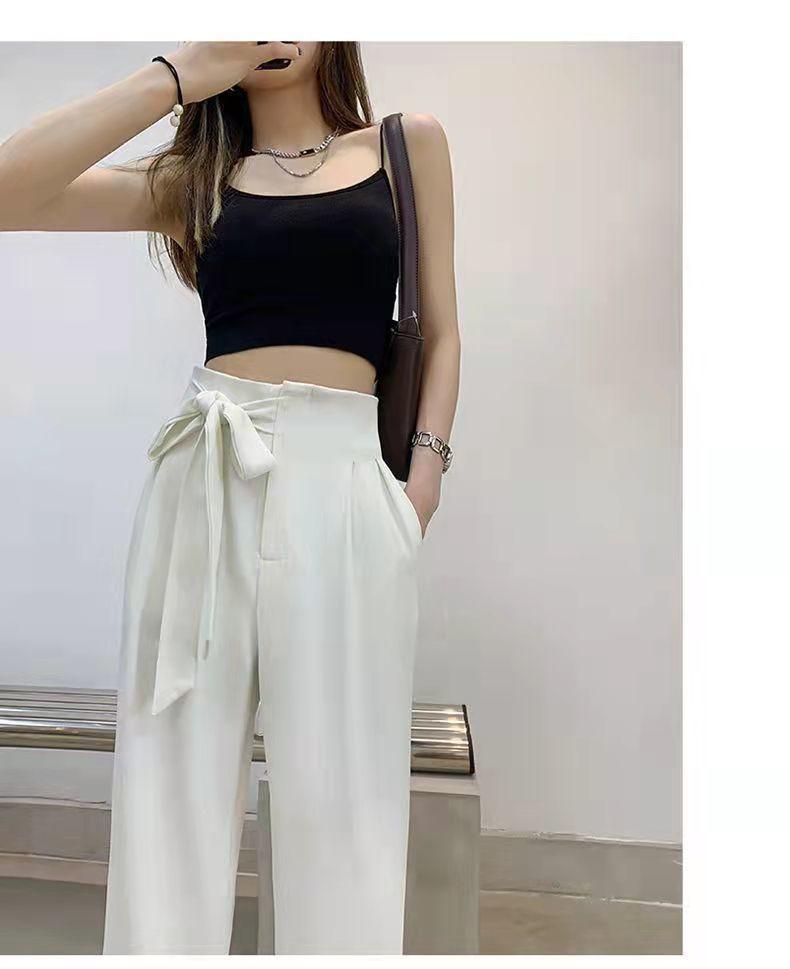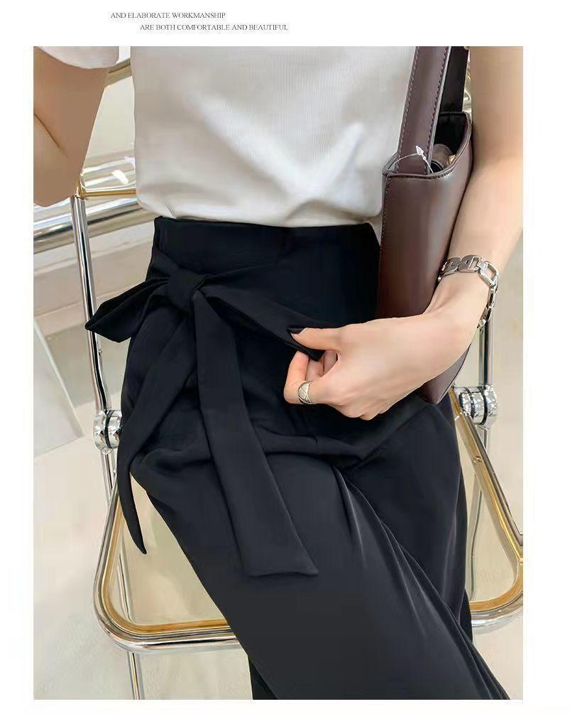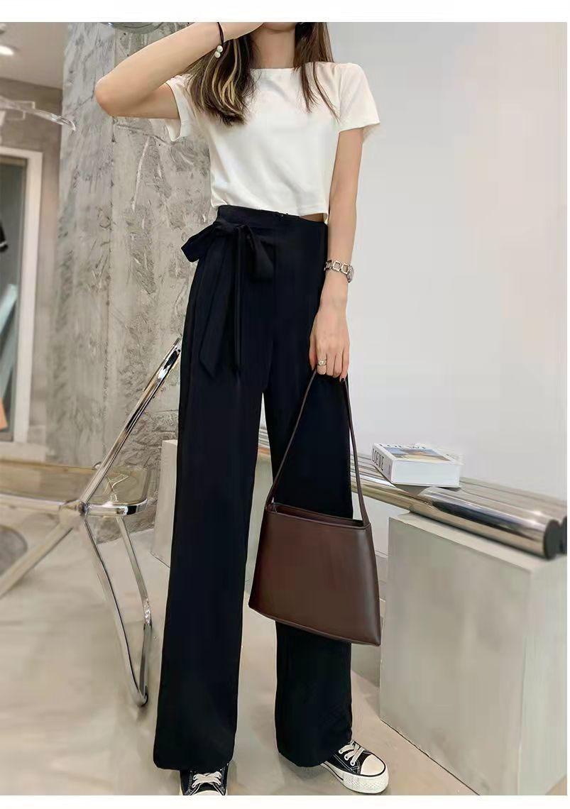 Pantalones de Traje Negros para Mujer 2025 Verano Nuevo Diseño con Cordones Cintura Alta Pierna Ancha Drapeados Rectos Casuales Modernos