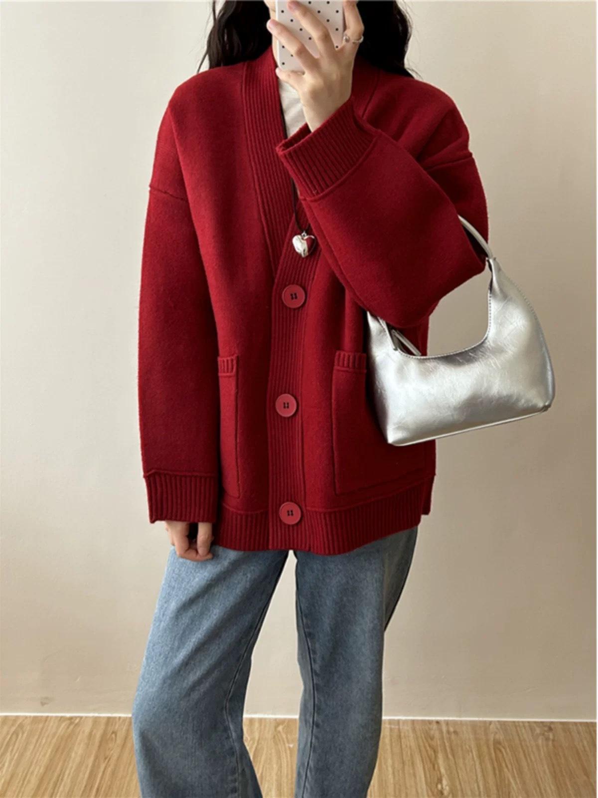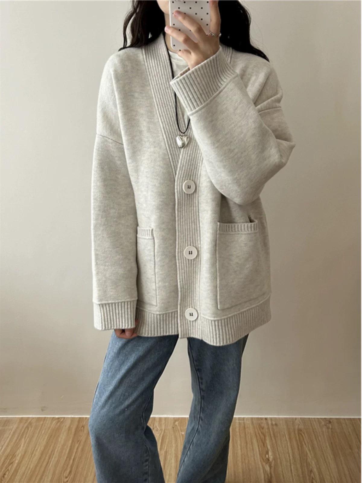 Ropa de Exterior para Principios de Otoño Suéter Gris para Mujer Cárdigan de Punto para Mujer 2025 Nuevo Abrigo de Estilo Lazy de Alta Gama para Primavera y Otoño