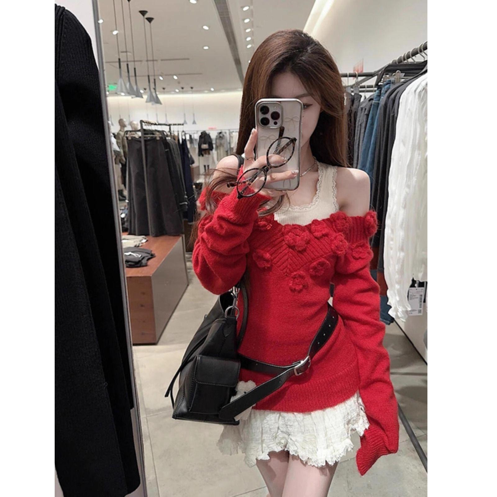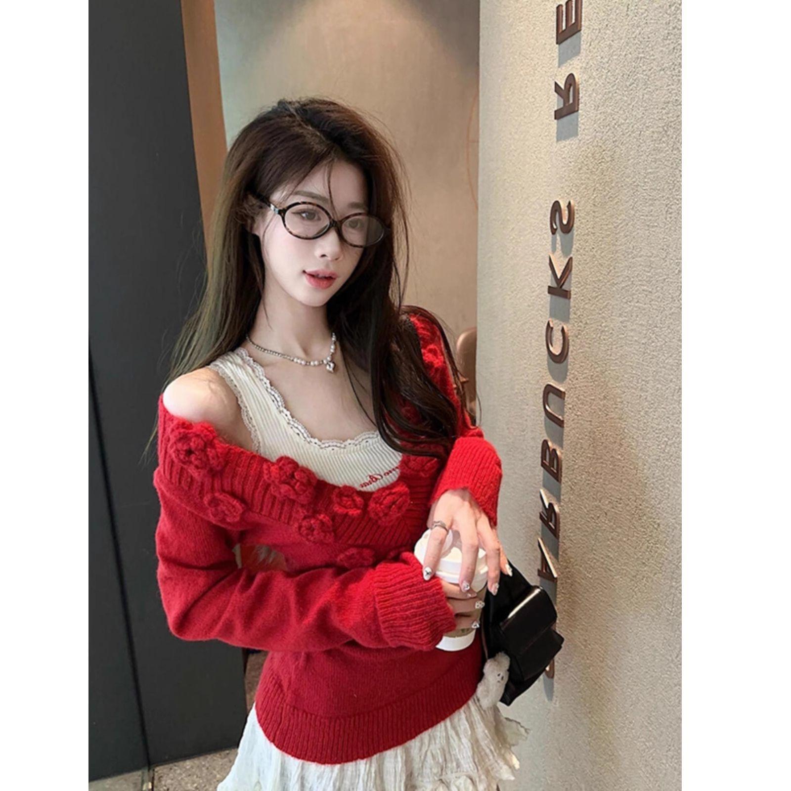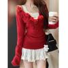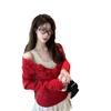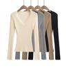 2024 otoño e invierno nuevo suave ceroso cuello en V rosa ajuste ceñido cintura delgada suéter diseño camiseta top de punto ins