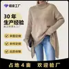 Suéter Europeo y Americano de Estilo Lazy de Cuello Alto Tejido Transfronterizo con Dobladillo Irregular, Suéter Holgado y a la Moda Otoño e Invierno para Mujer