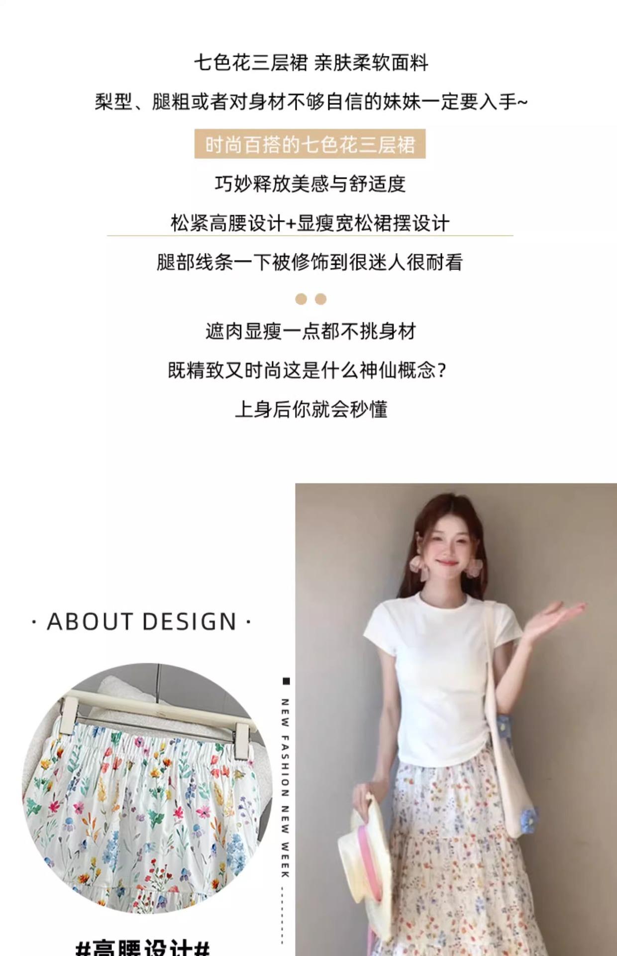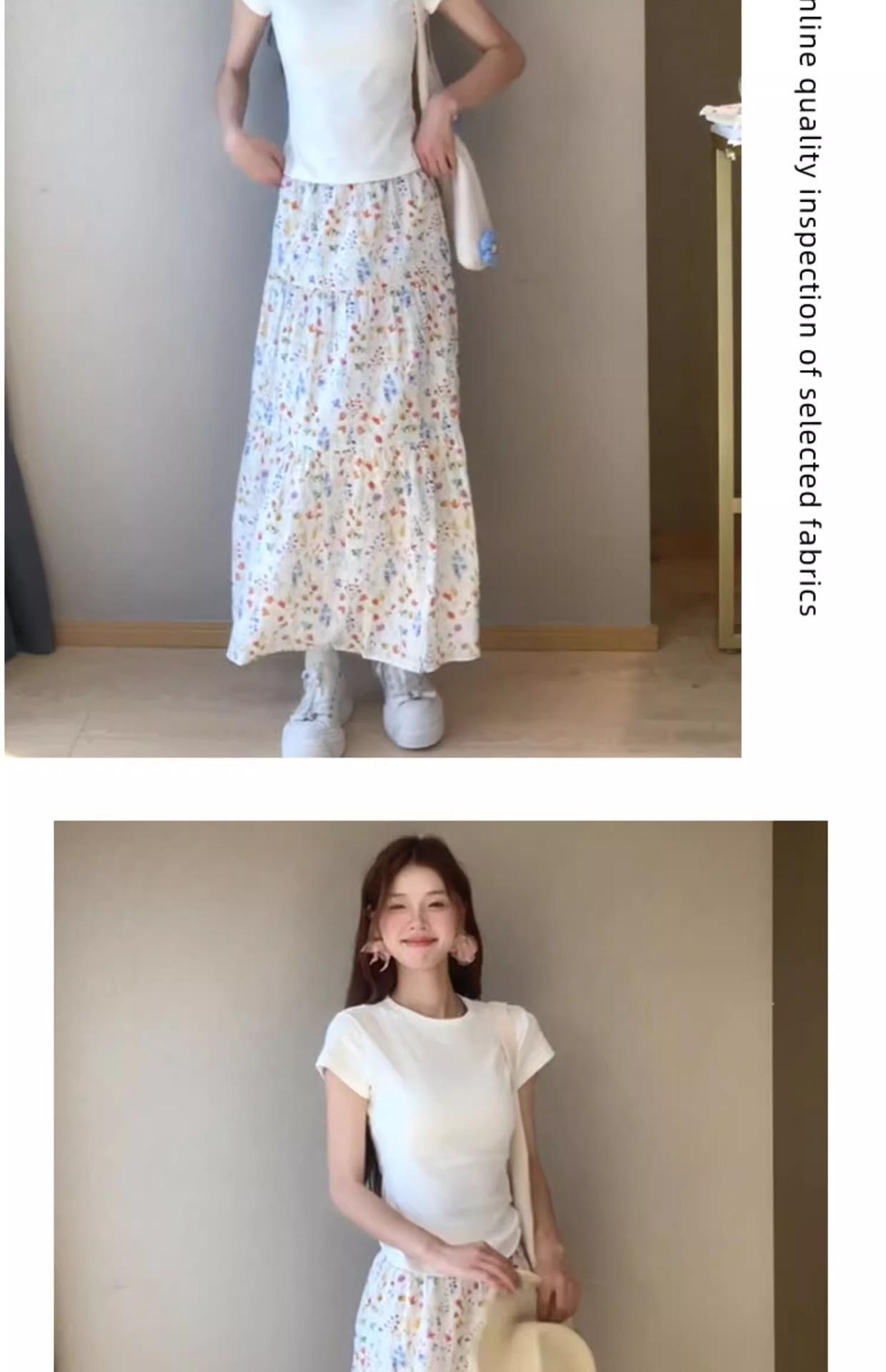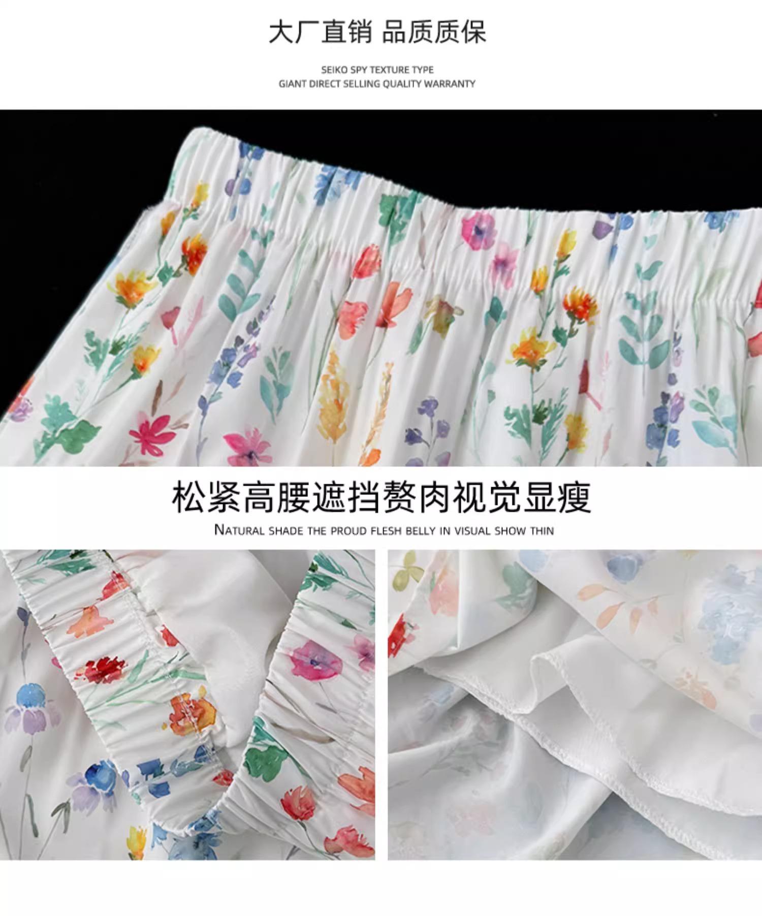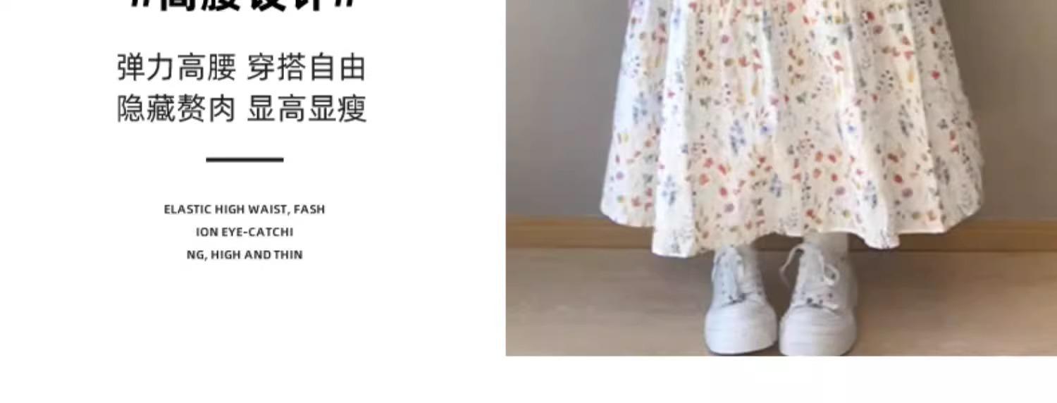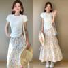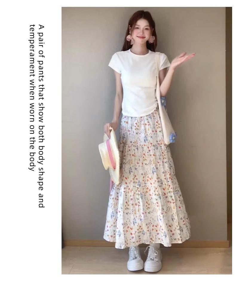 Falda Floral para Mujer Verano Nuevo Estilo Fresca Cintura Alta Adelgazante Falda Línea A Diseño Francés Nicho Falda Pastel