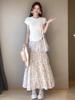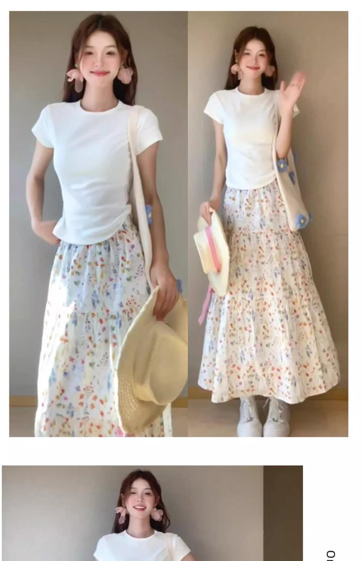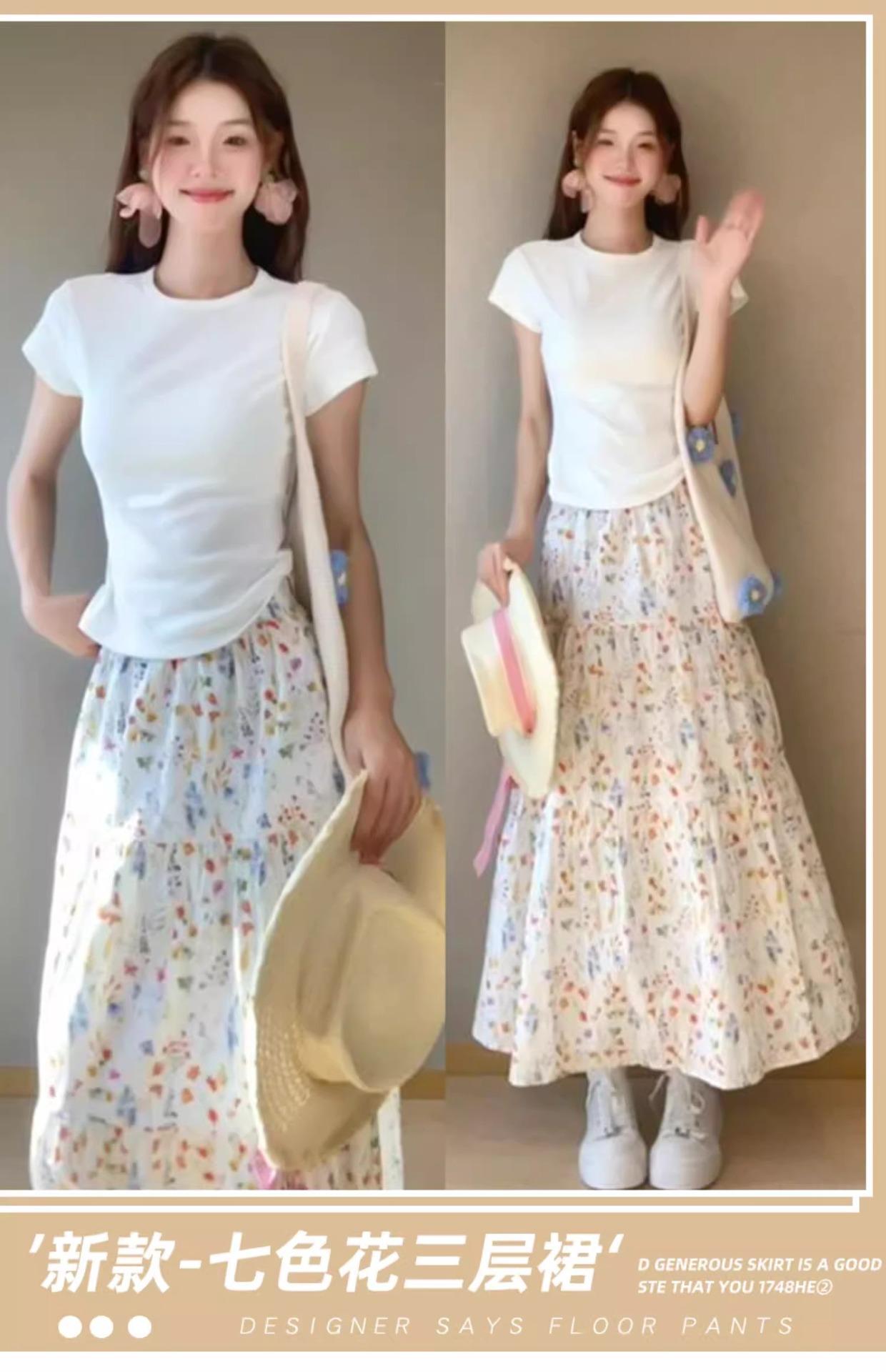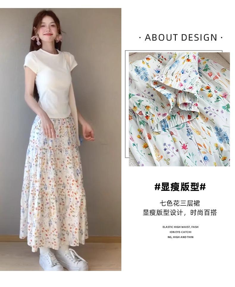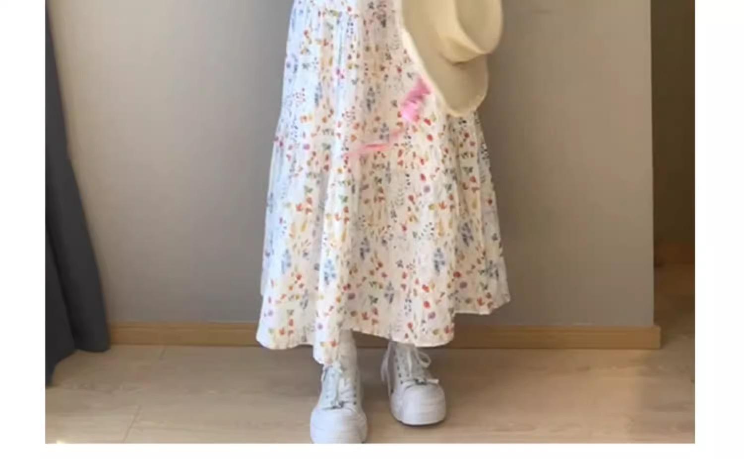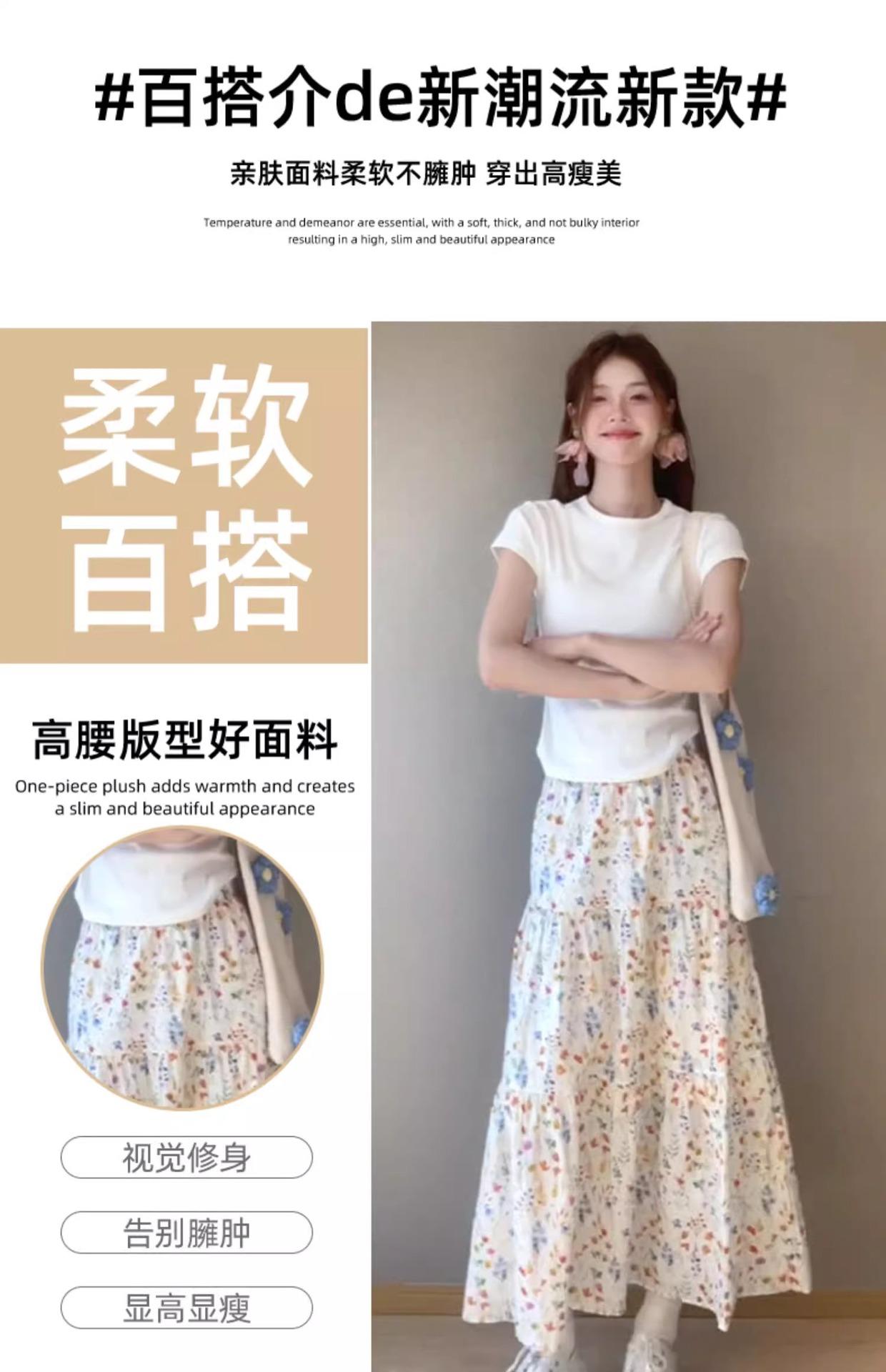 Falda Floral para Mujer Verano Nuevo Estilo Fresca Cintura Alta Adelgazante Falda Línea A Diseño Francés Nicho Falda Pastel