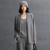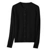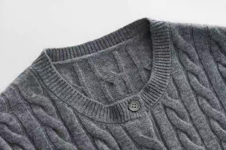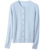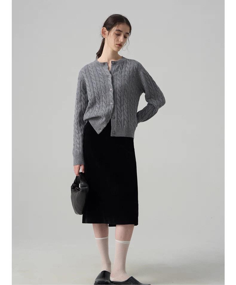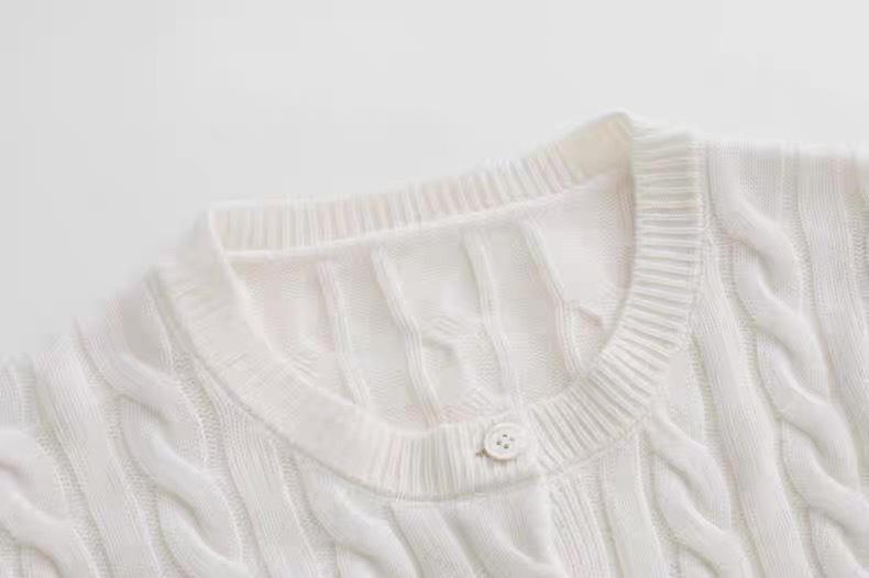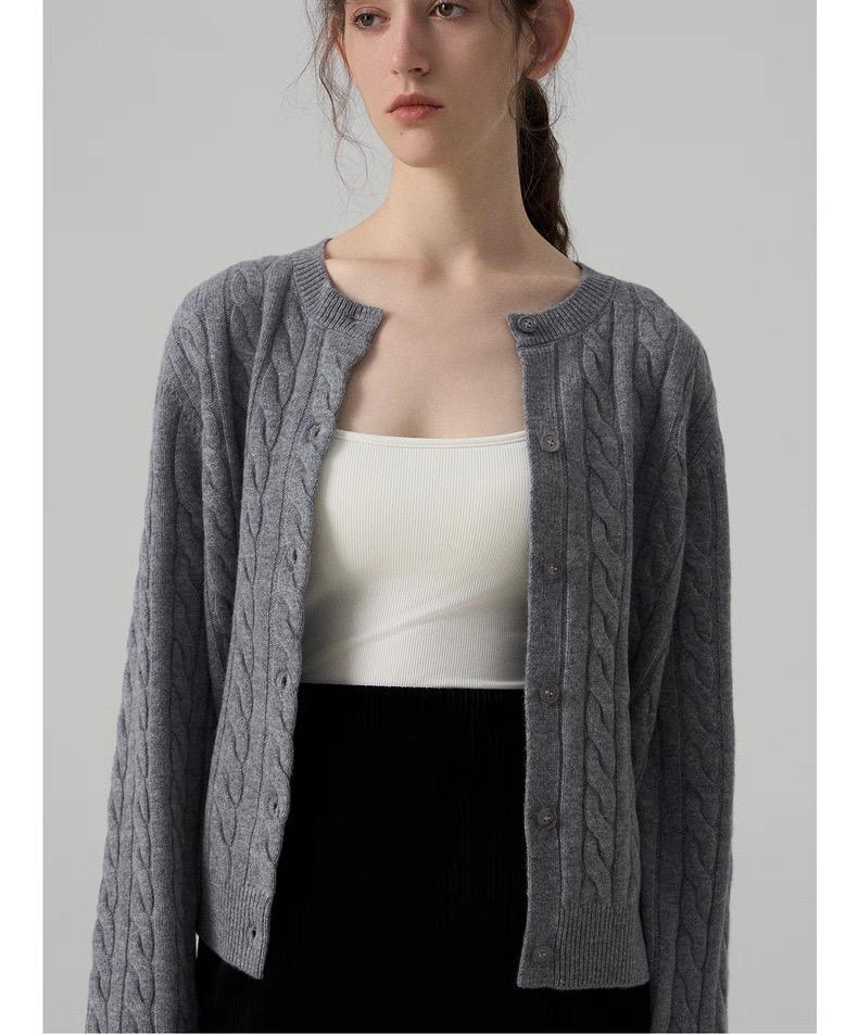 French Retro Gray Cable Knit Cardigan Women Spring Autumn Round Neck Slim Fit Single-Breasted Inner Top Fashionable Outerwear