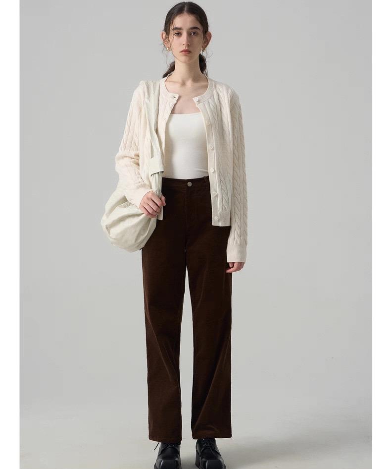Estilo Old Money Cárdigan de Punto Trenzado de Lana 100% Cuello Redondo de un Solo Botón Manga Larga Ropa Exterior Prendas de Punto Versátiles Mujer Otoño Invierno