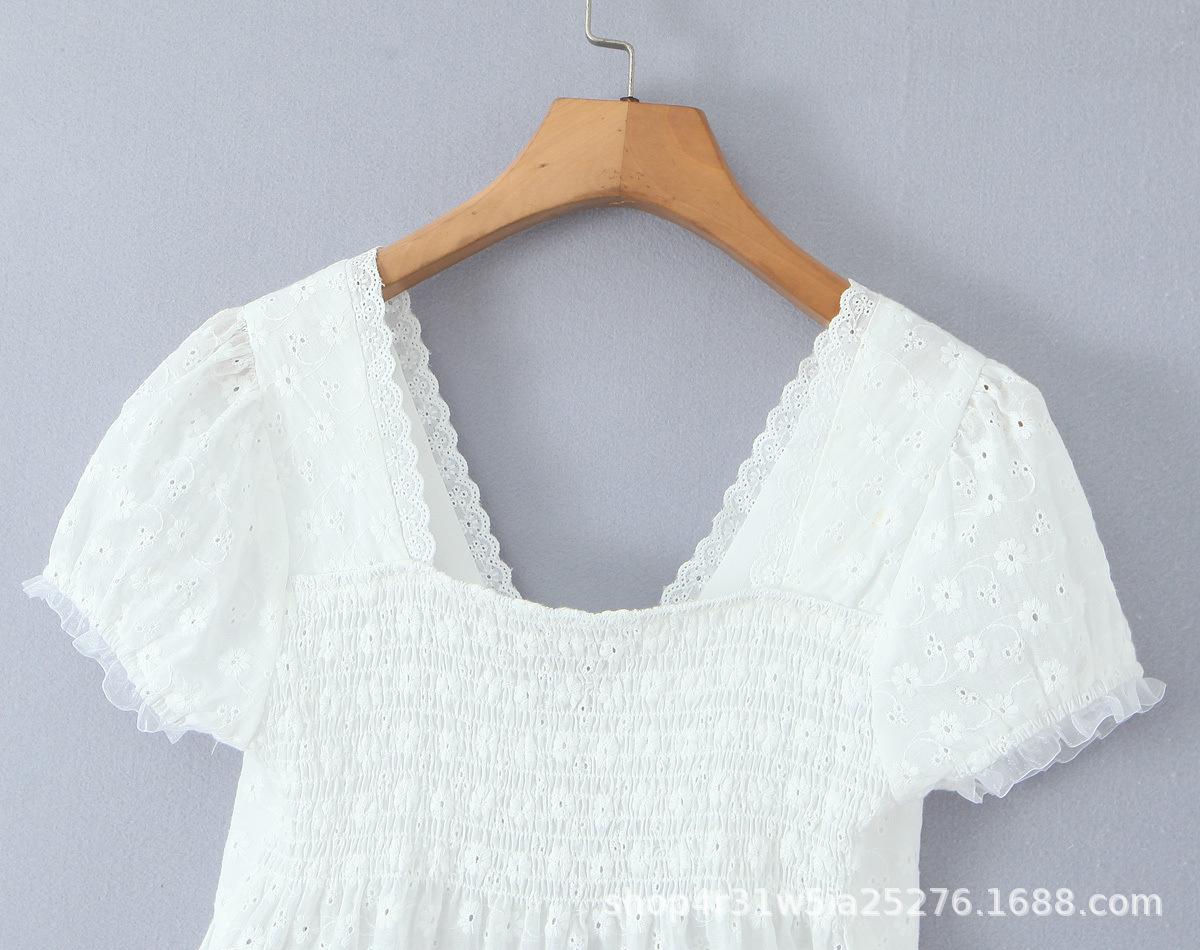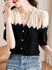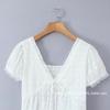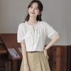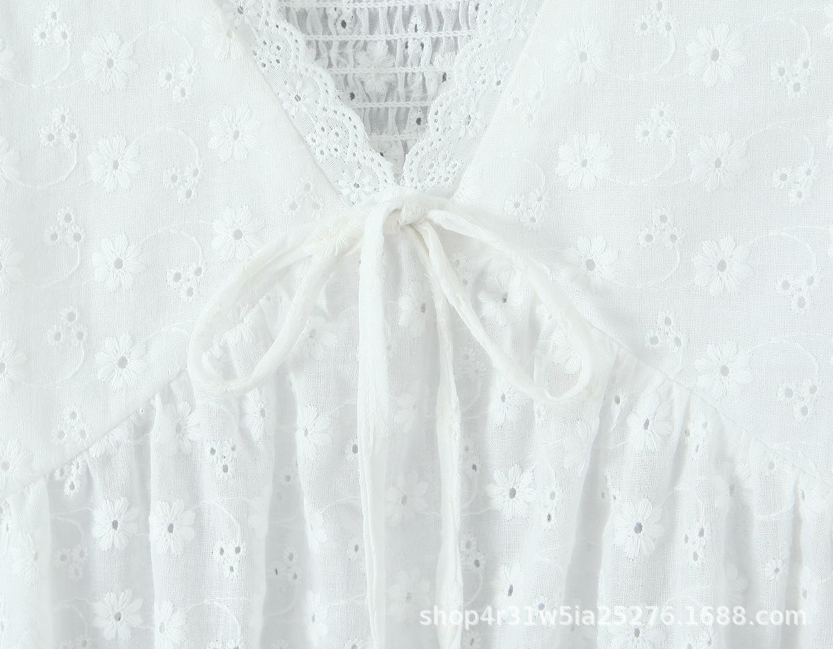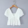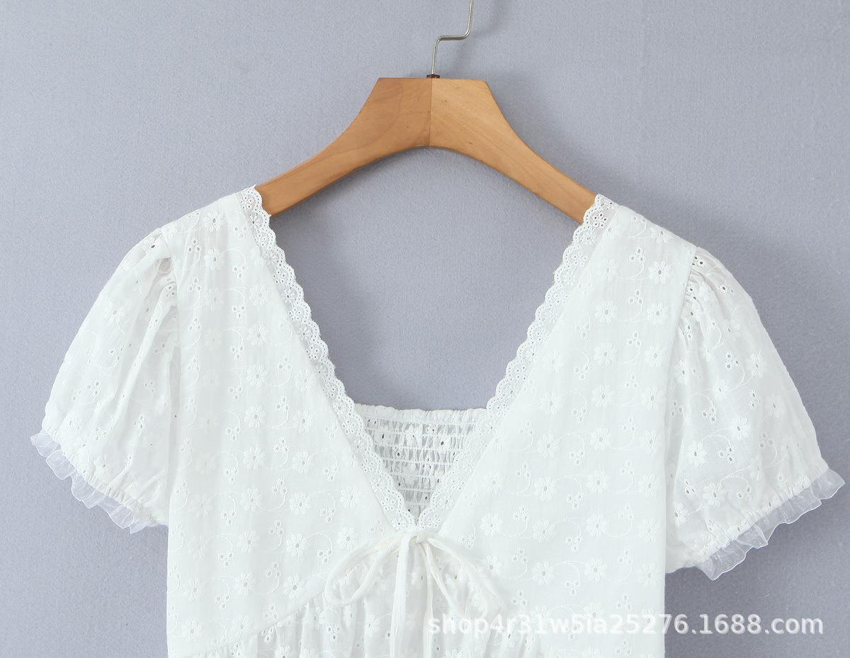2025 Nuevo Estilo de Verano Moda Francesa Dulce y Fresco Nicho Cuello V Encaje Calado Bordado Camisa de Manga Corta Top