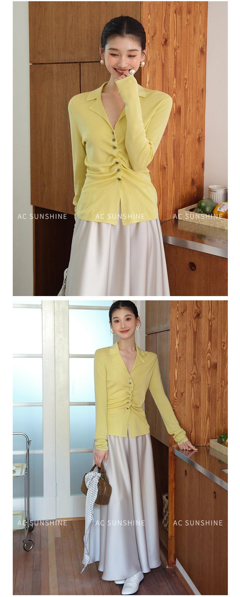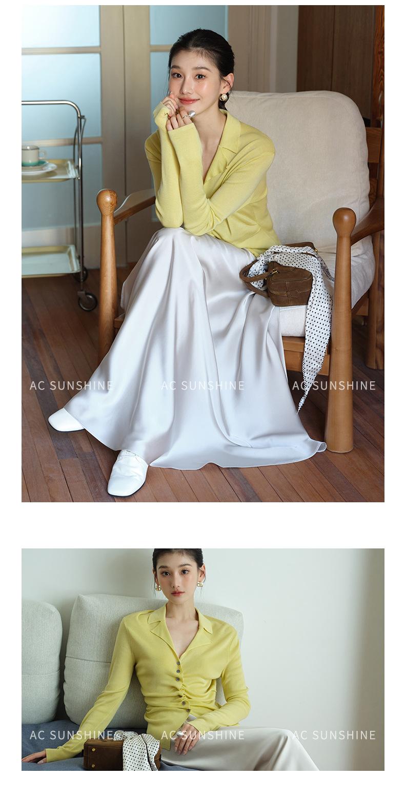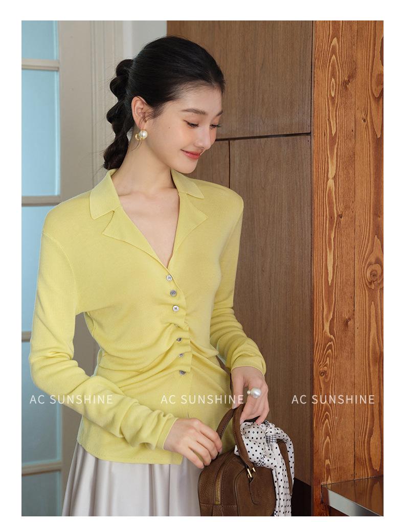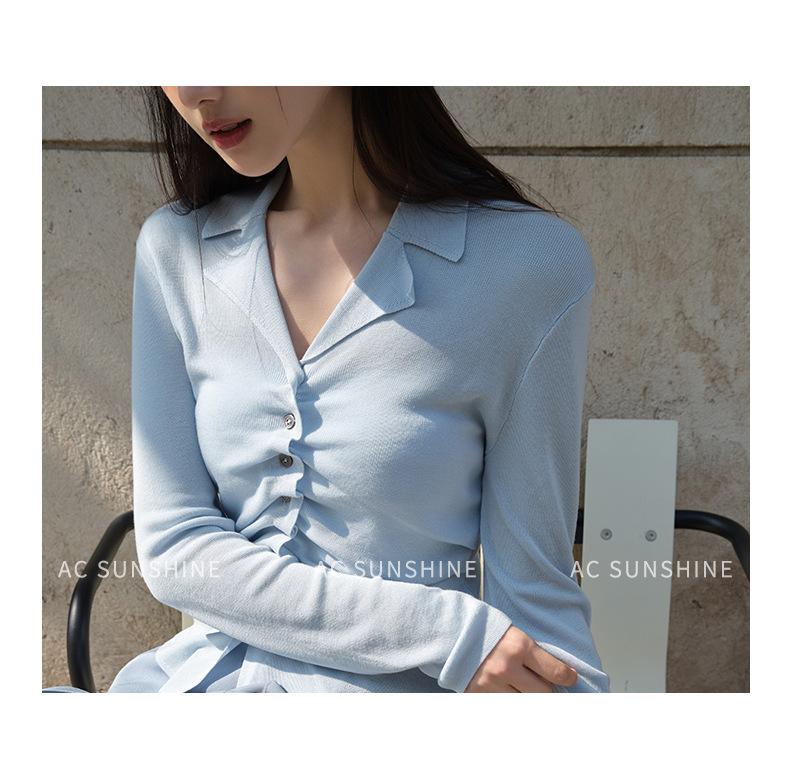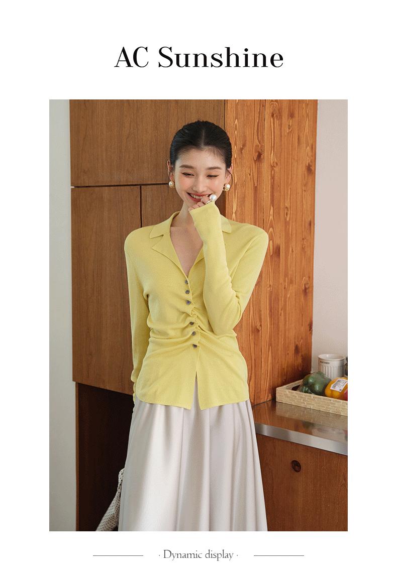 AC Sunshine Lyocell Tencel Tejido de Punto Top con Volantes Otoño Nuevo Suéter Base Adelgazante 17237