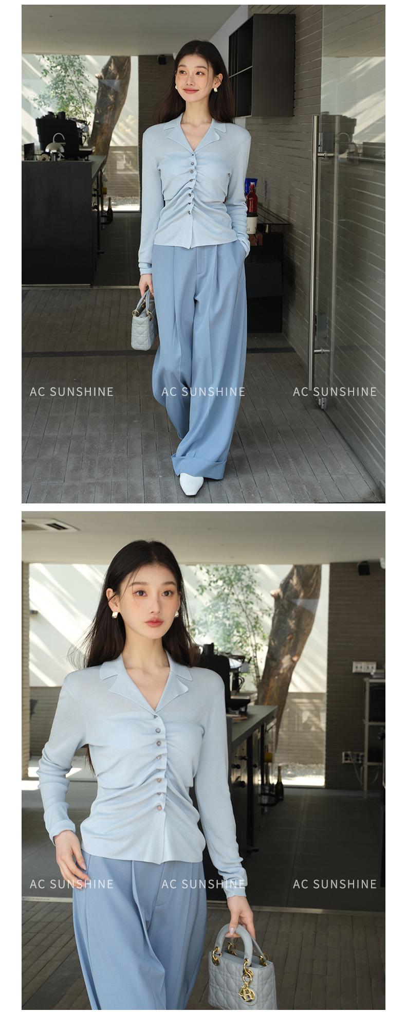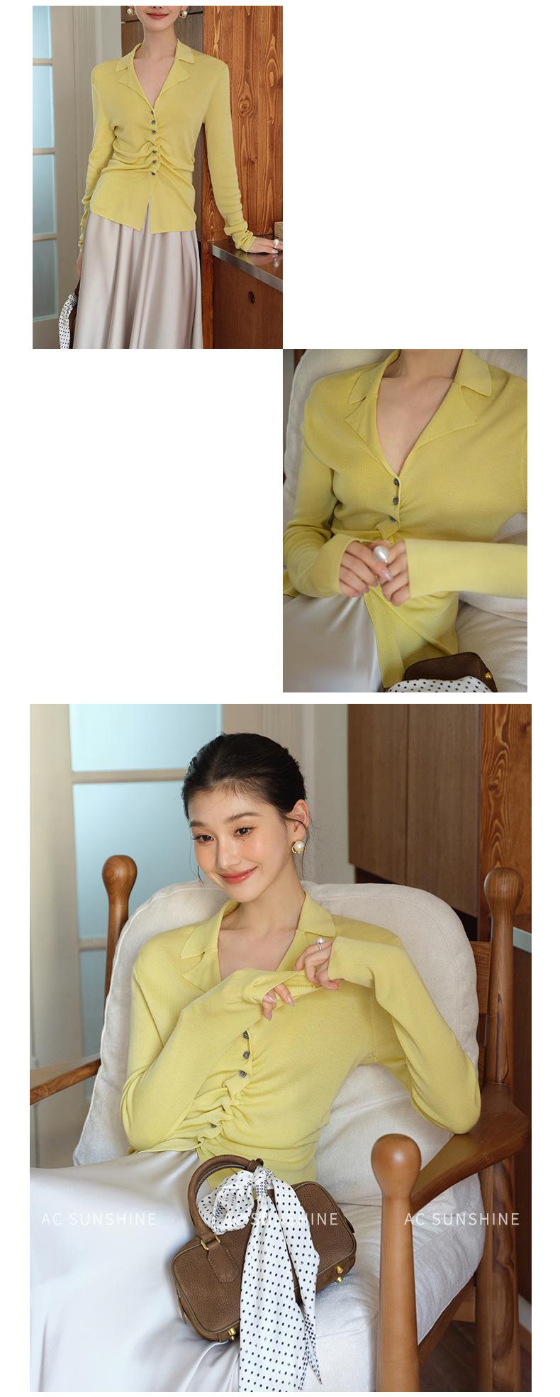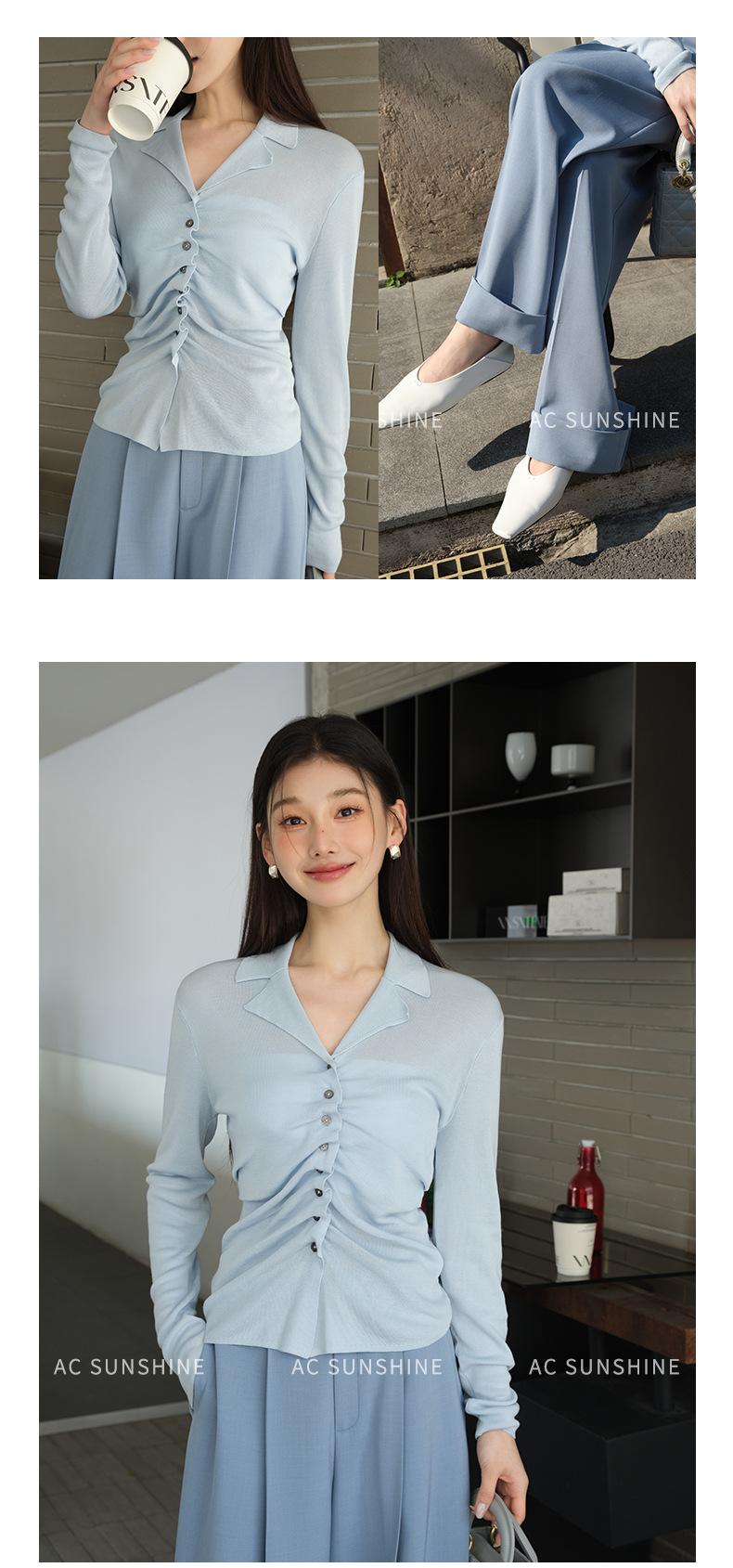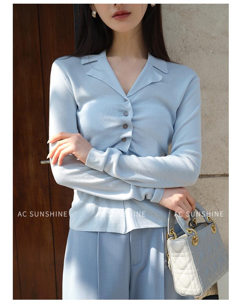 AC Sunshine Lyocell Tencel Tejido de Punto Top con Volantes Otoño Nuevo Suéter Base Adelgazante 17237