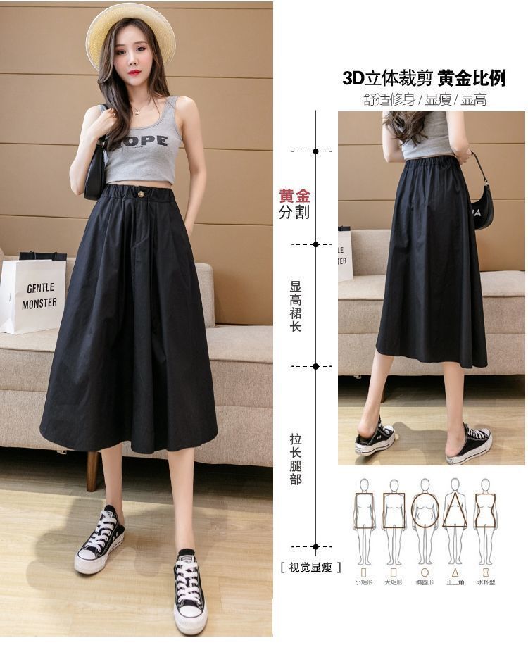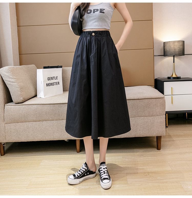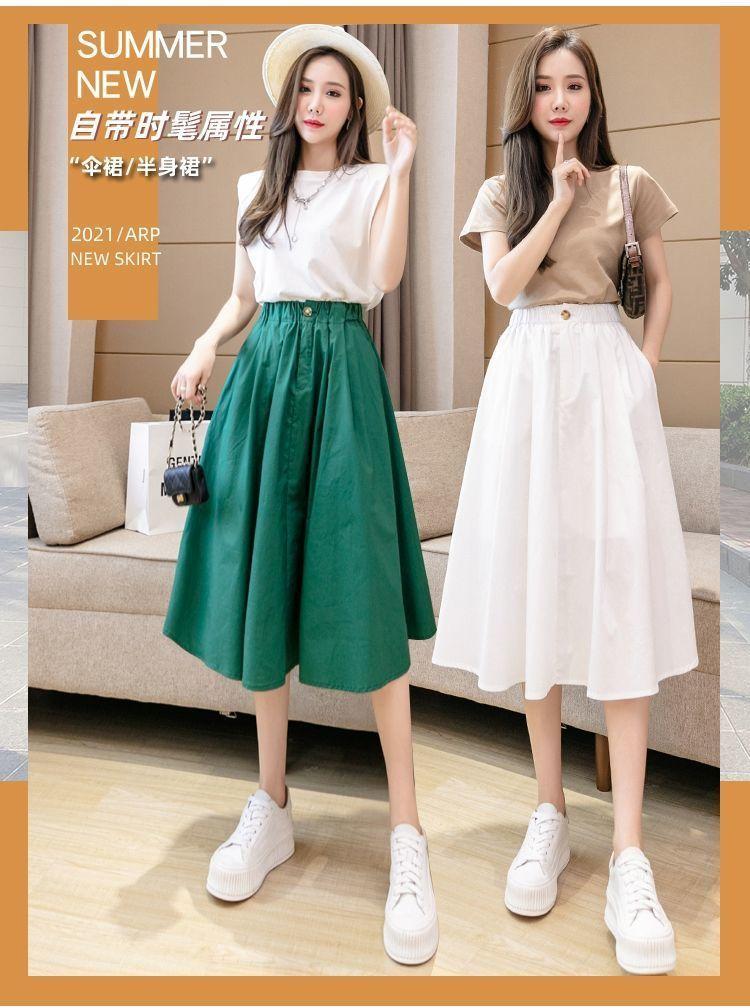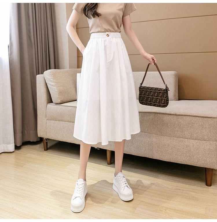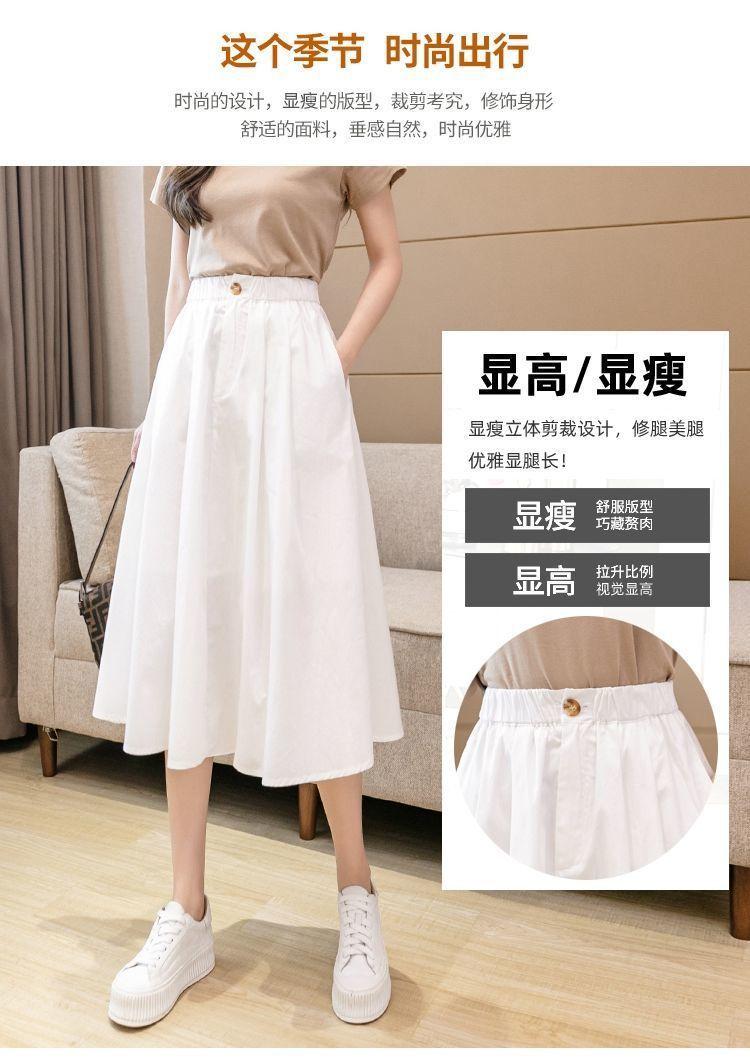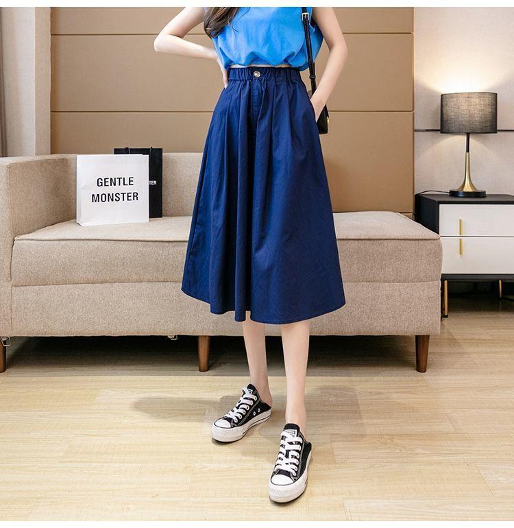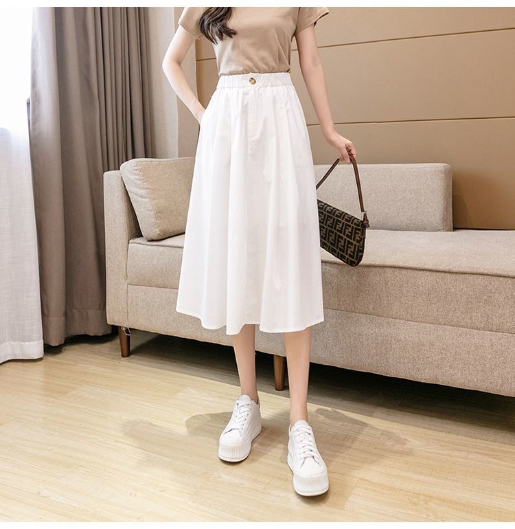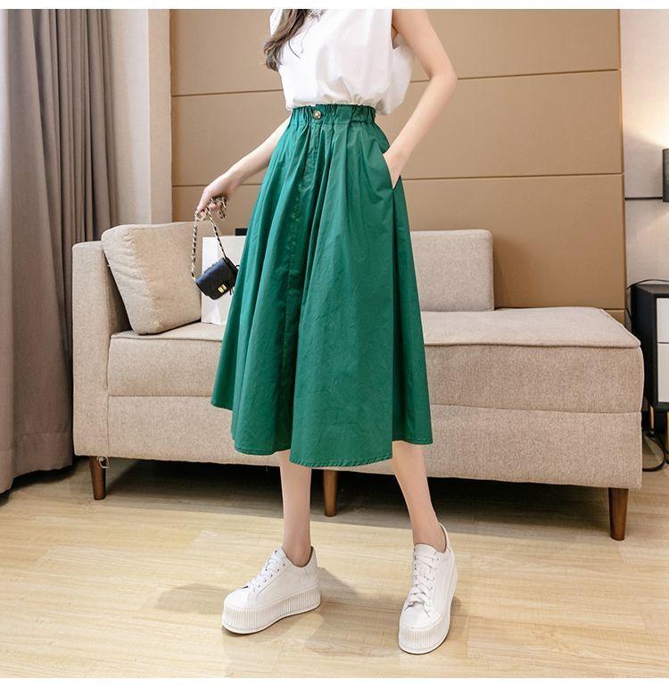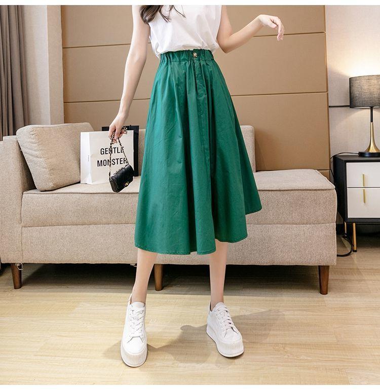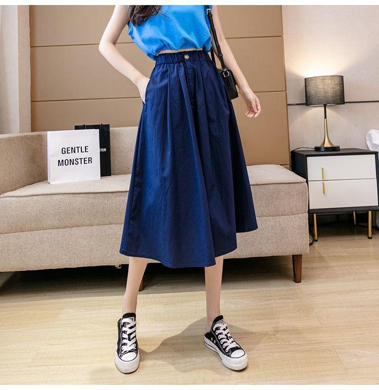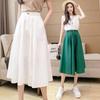 Falda de Trabajo de Moda de Verano para Mujer Estilo Japonés Largo Medio Falda Paraguas Cintura Alta Adelgazante Pequeña Combinable Línea A Falda de Vuelo Grande
