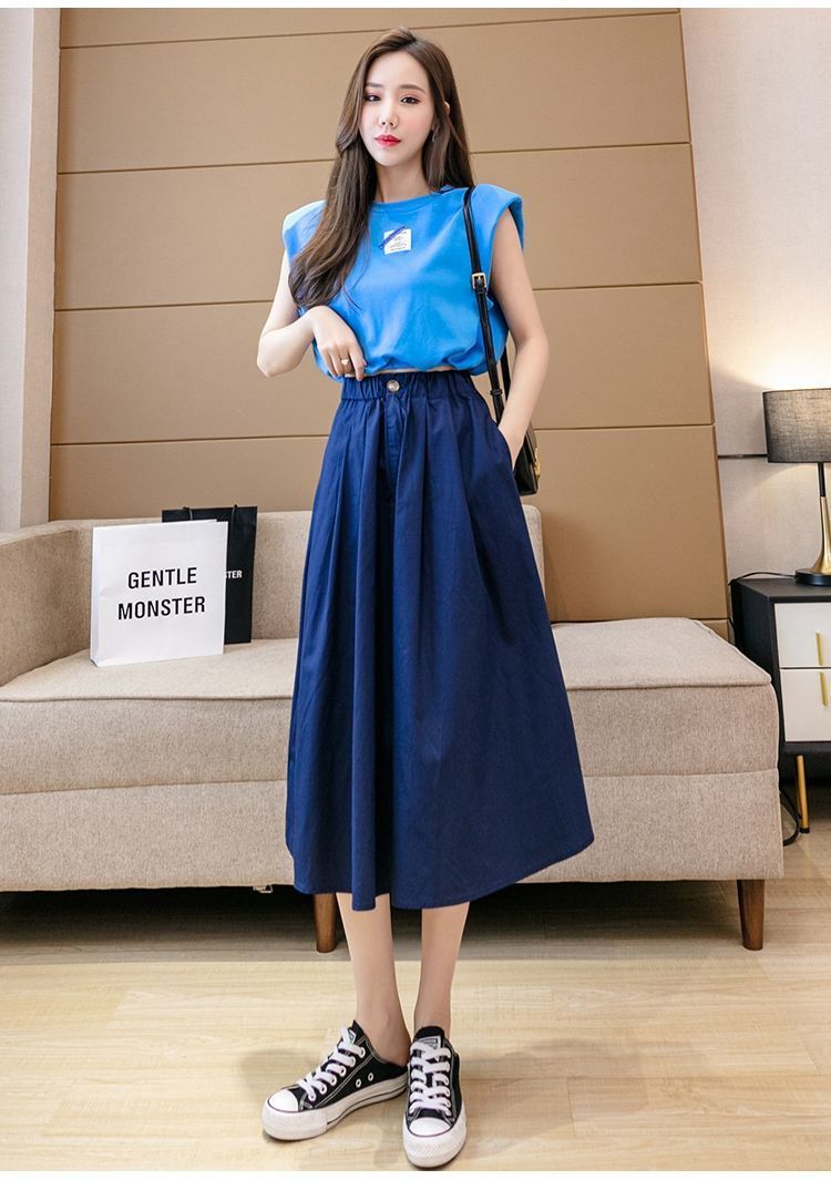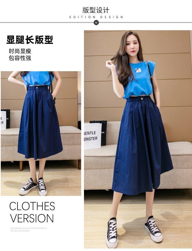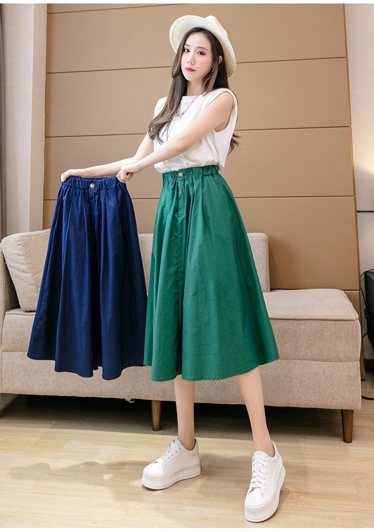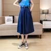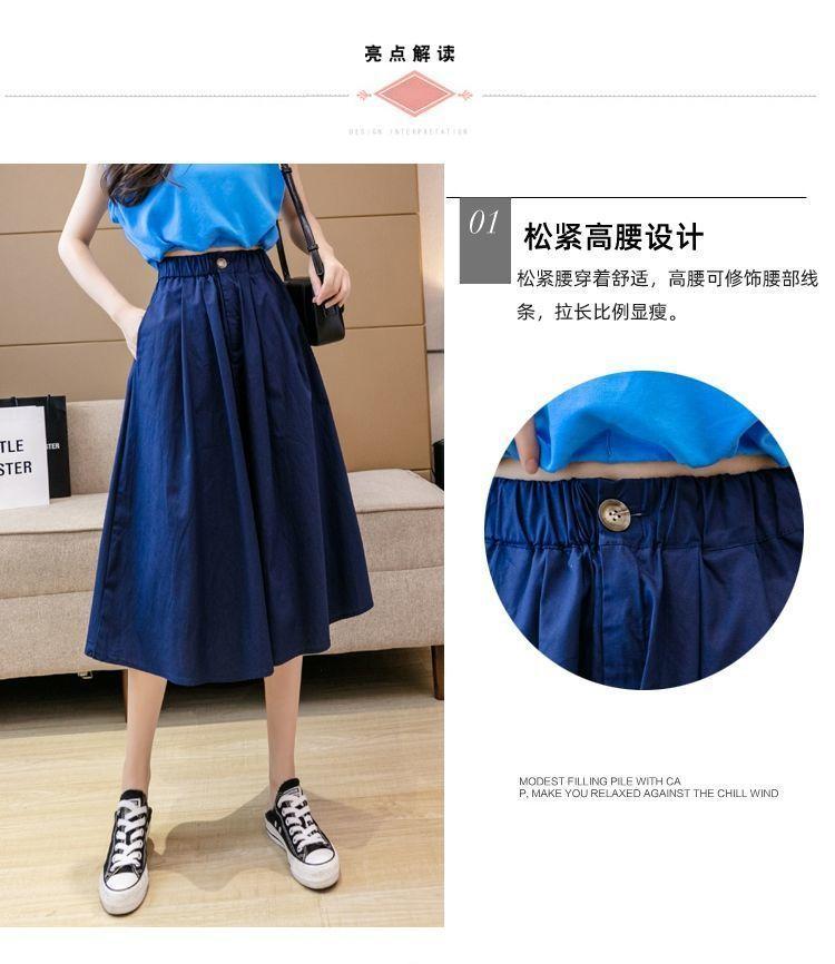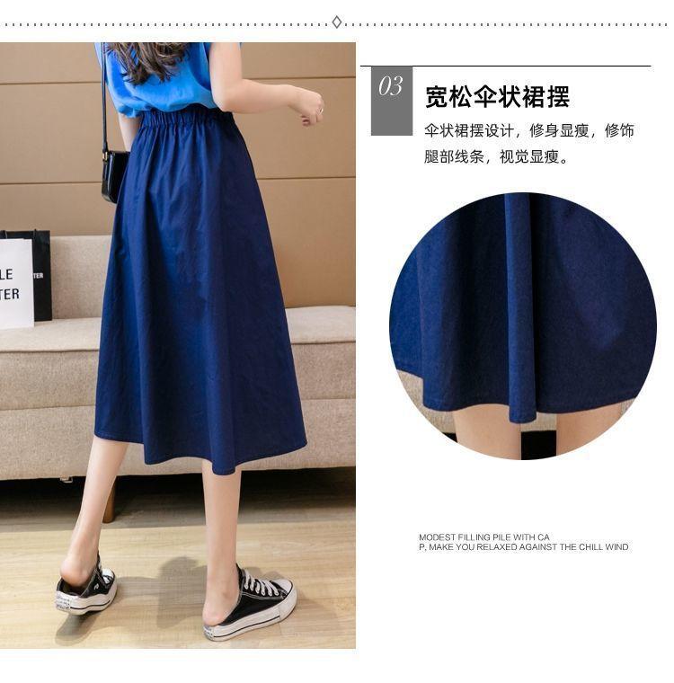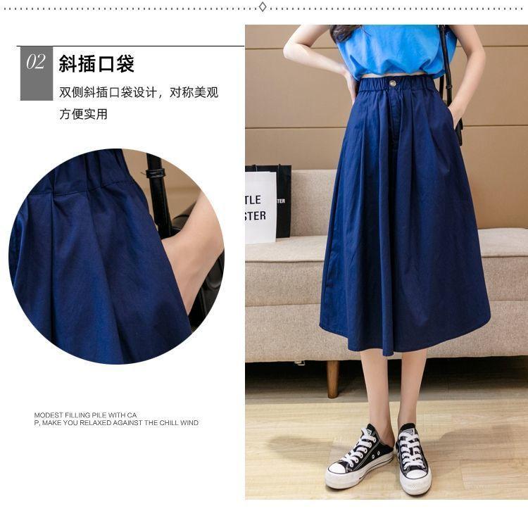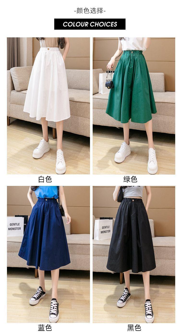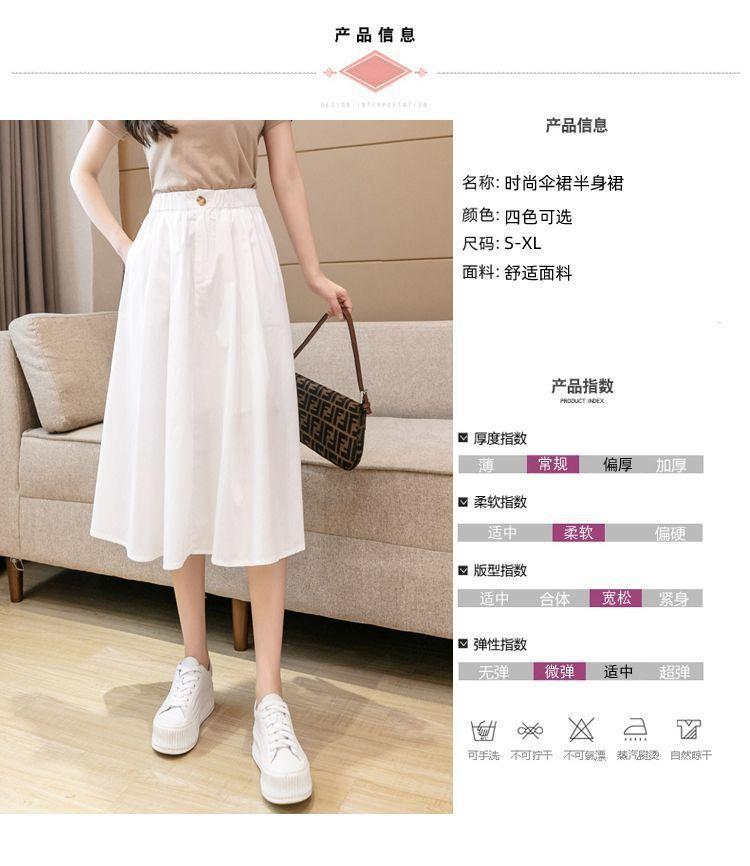 Falda de Trabajo de Moda de Verano para Mujer Estilo Japonés Largo Medio Falda Paraguas Cintura Alta Adelgazante Pequeña Combinable Línea A Falda de Vuelo Grande