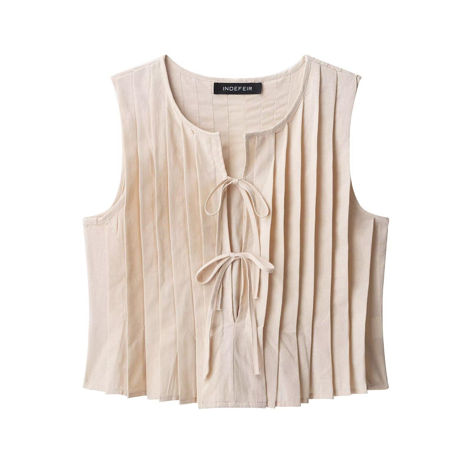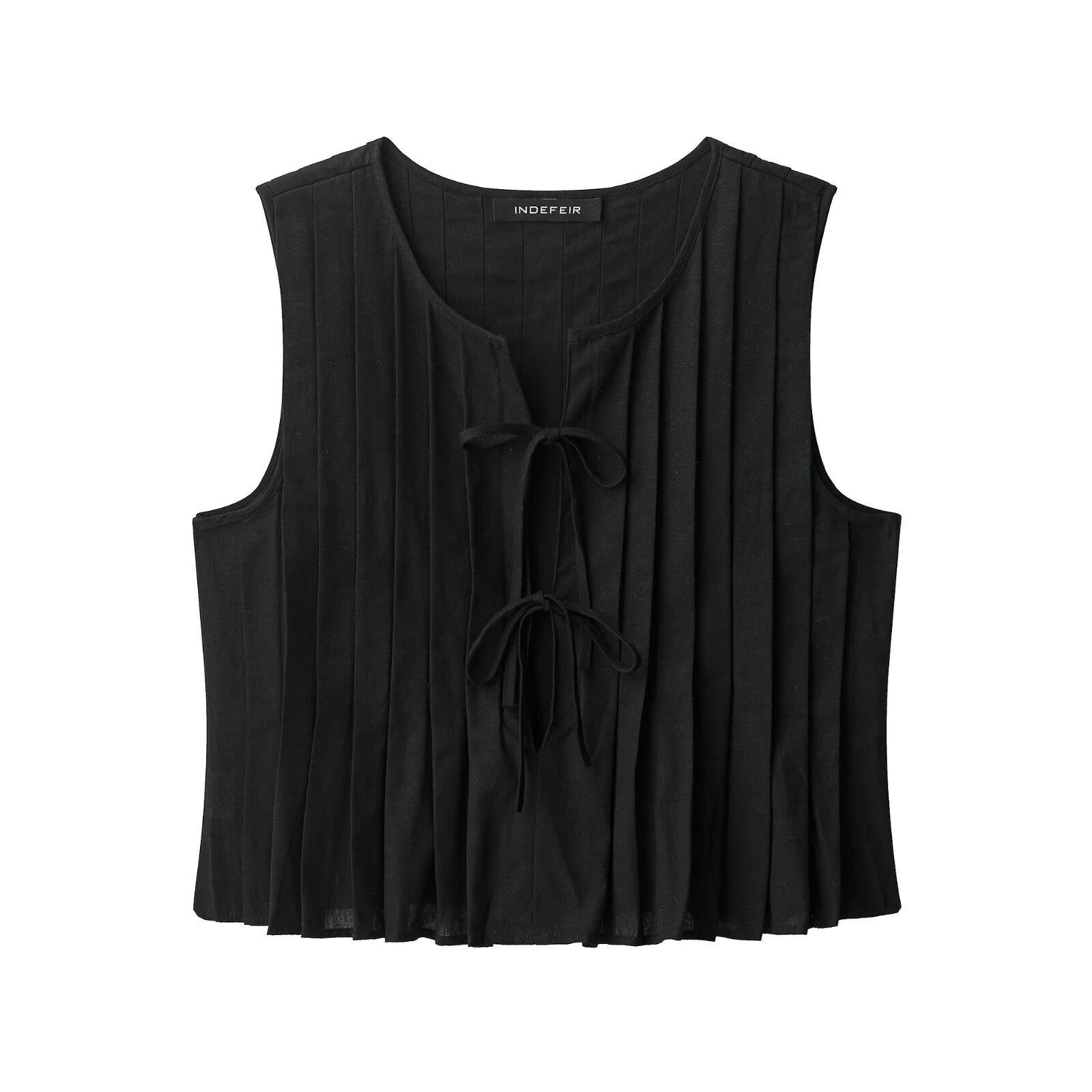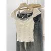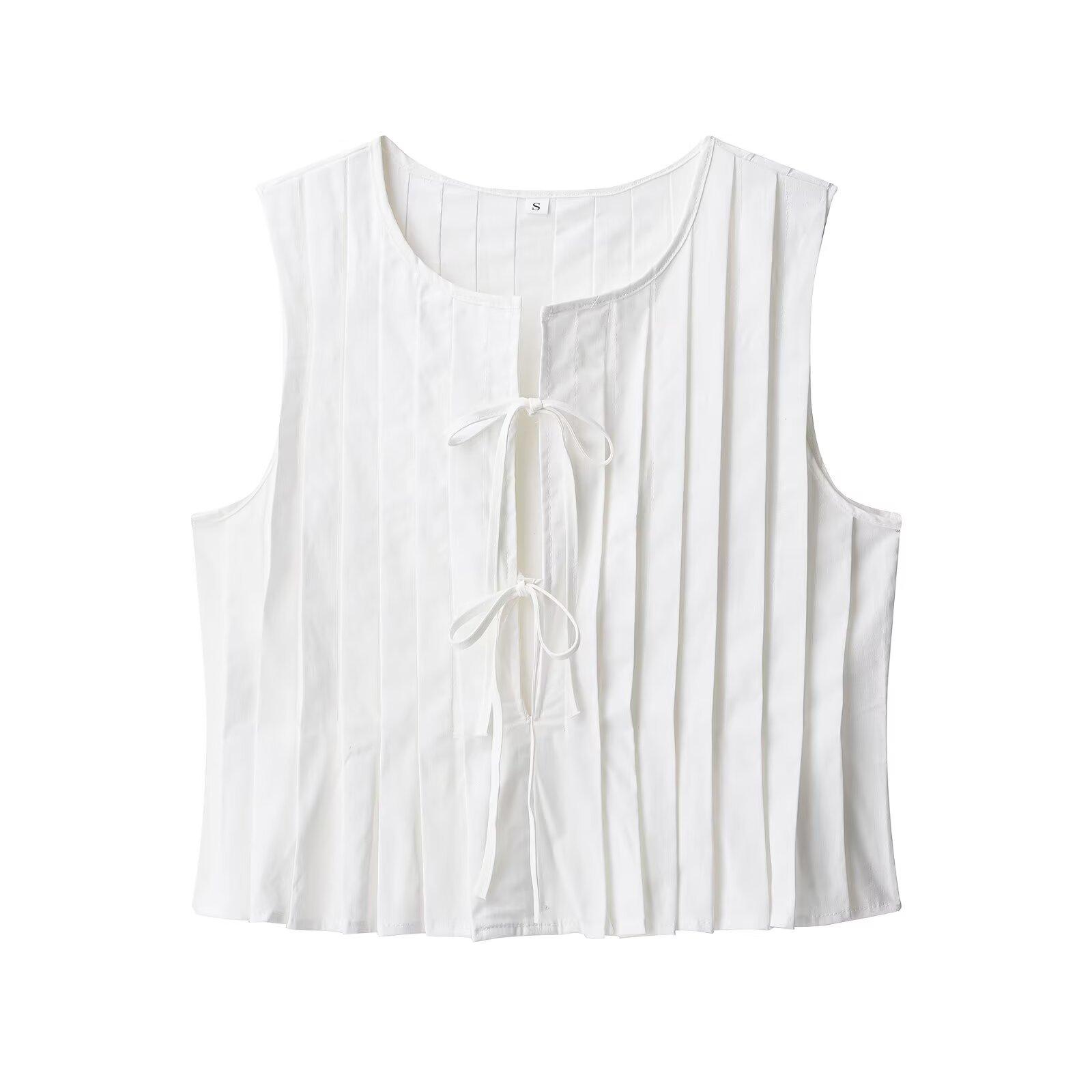 Chaleco acordonado estilo francés 2025 Verano Nuevo Moda europea y americana Versátil Diseño simple Top acordonado fruncido