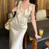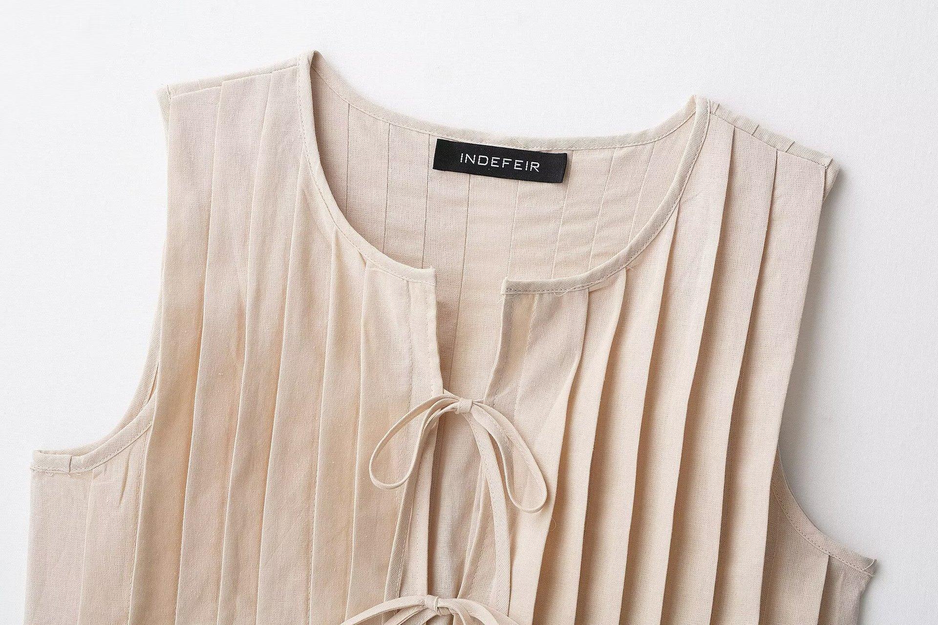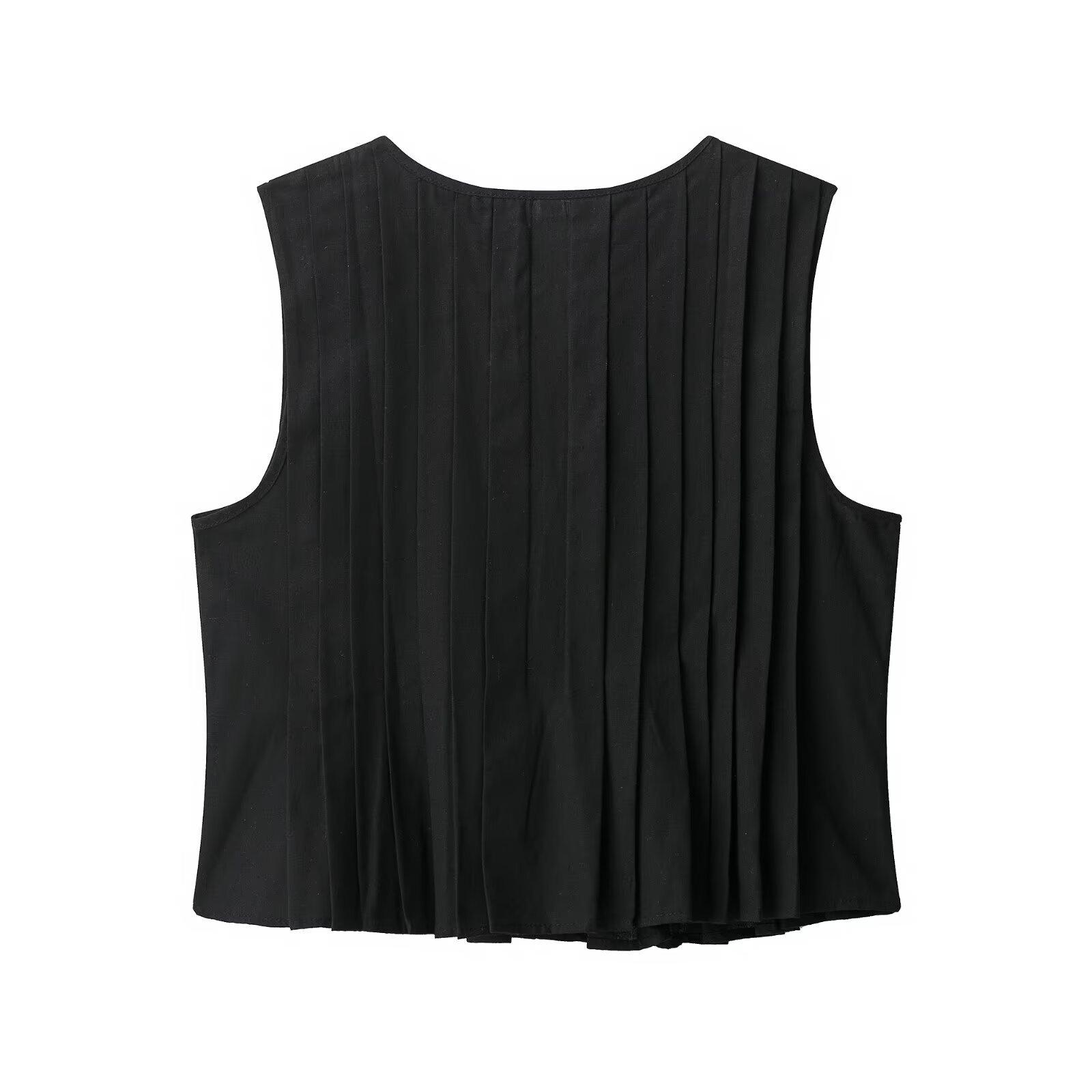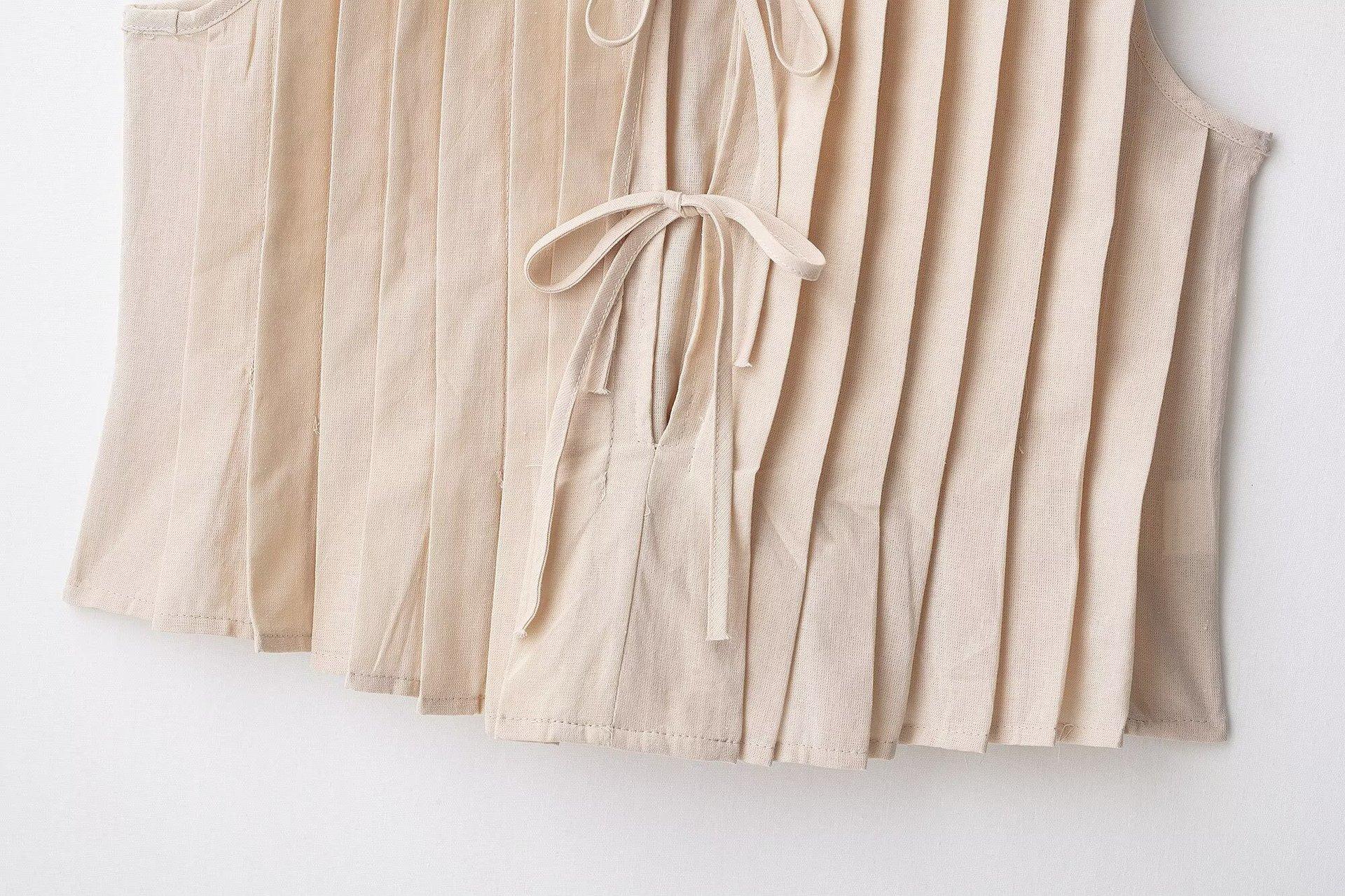Chaleco acordonado estilo francés 2025 Verano Nuevo Moda europea y americana Versátil Diseño simple Top acordonado fruncido