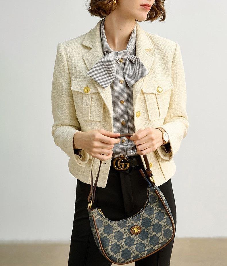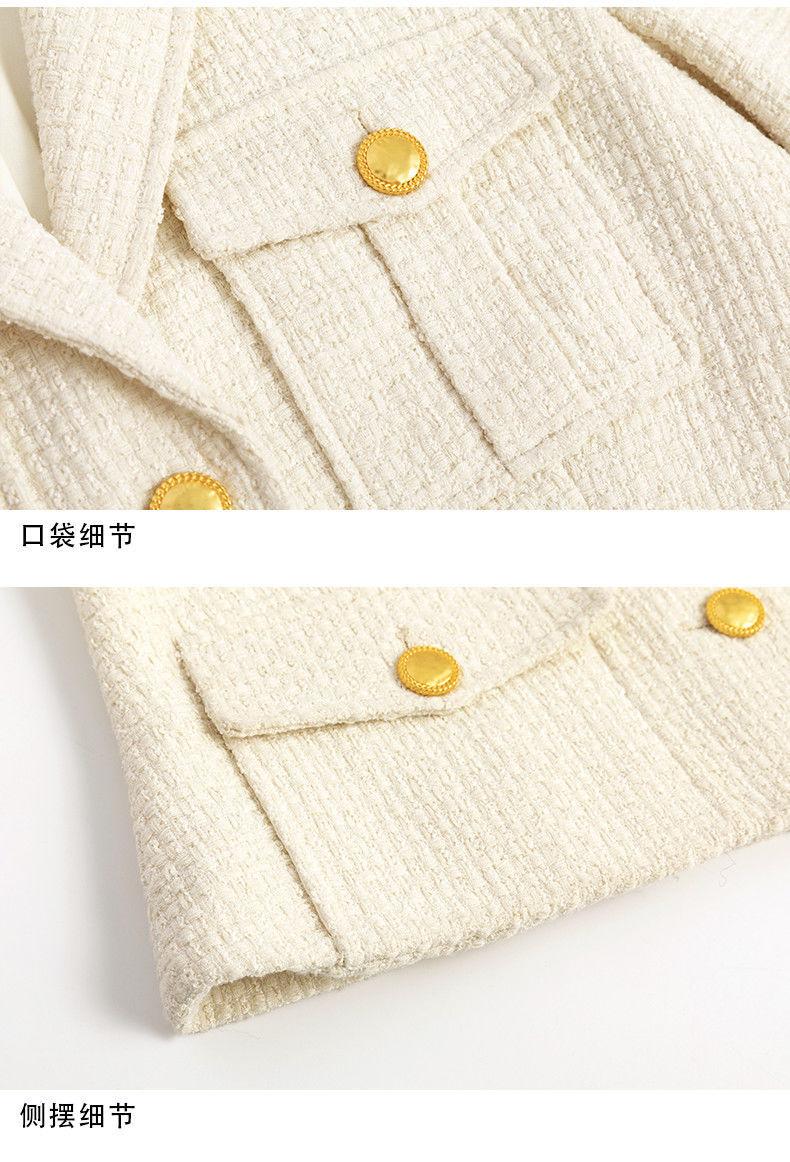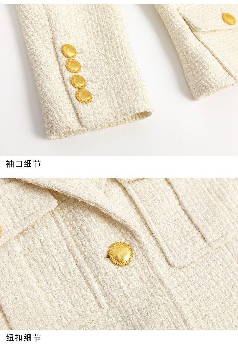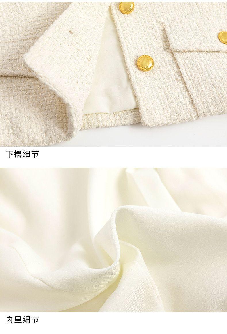 Abrigo de Lana Temperamento Mujer 2025 Primavera y Otoño Nuevo Blanco Leche Tweed Solapa de Traje Corto Estilo Pequeño Fragante Marea