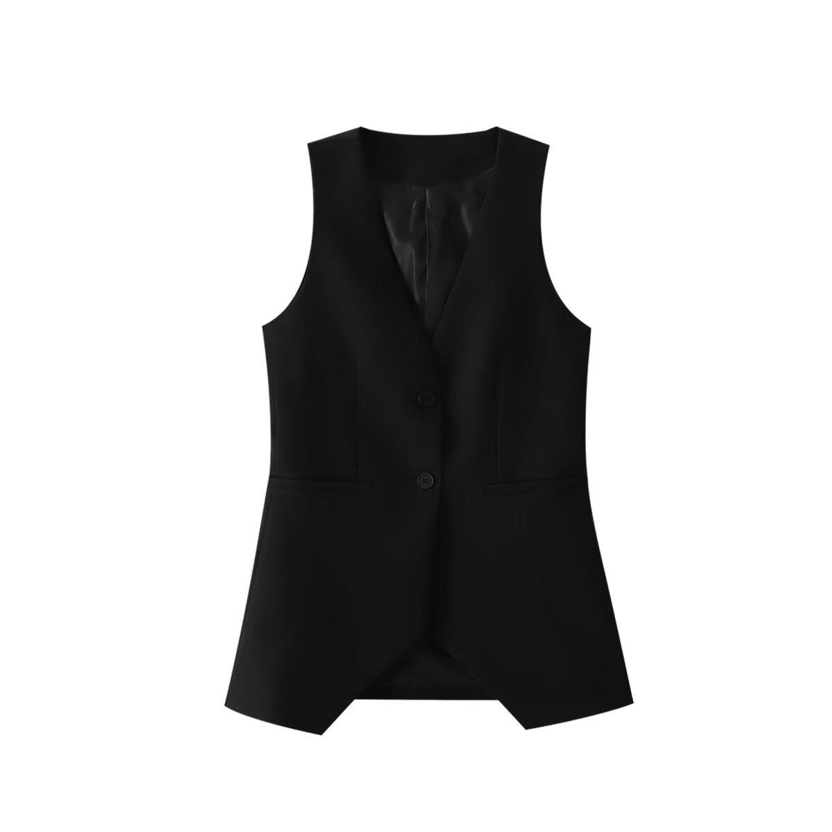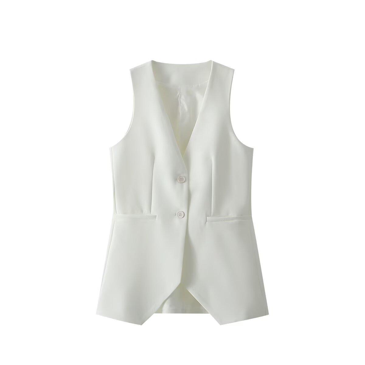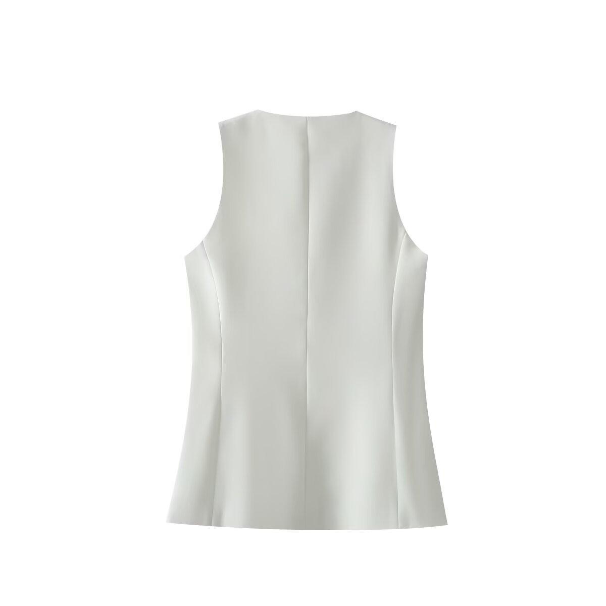 Ropa de mujer para comercio exterior transfronterizo 2025 otoño estilo europeo y americano cuello en V sin mangas abertura chaleco exterior de color sólido para mujer F525109F