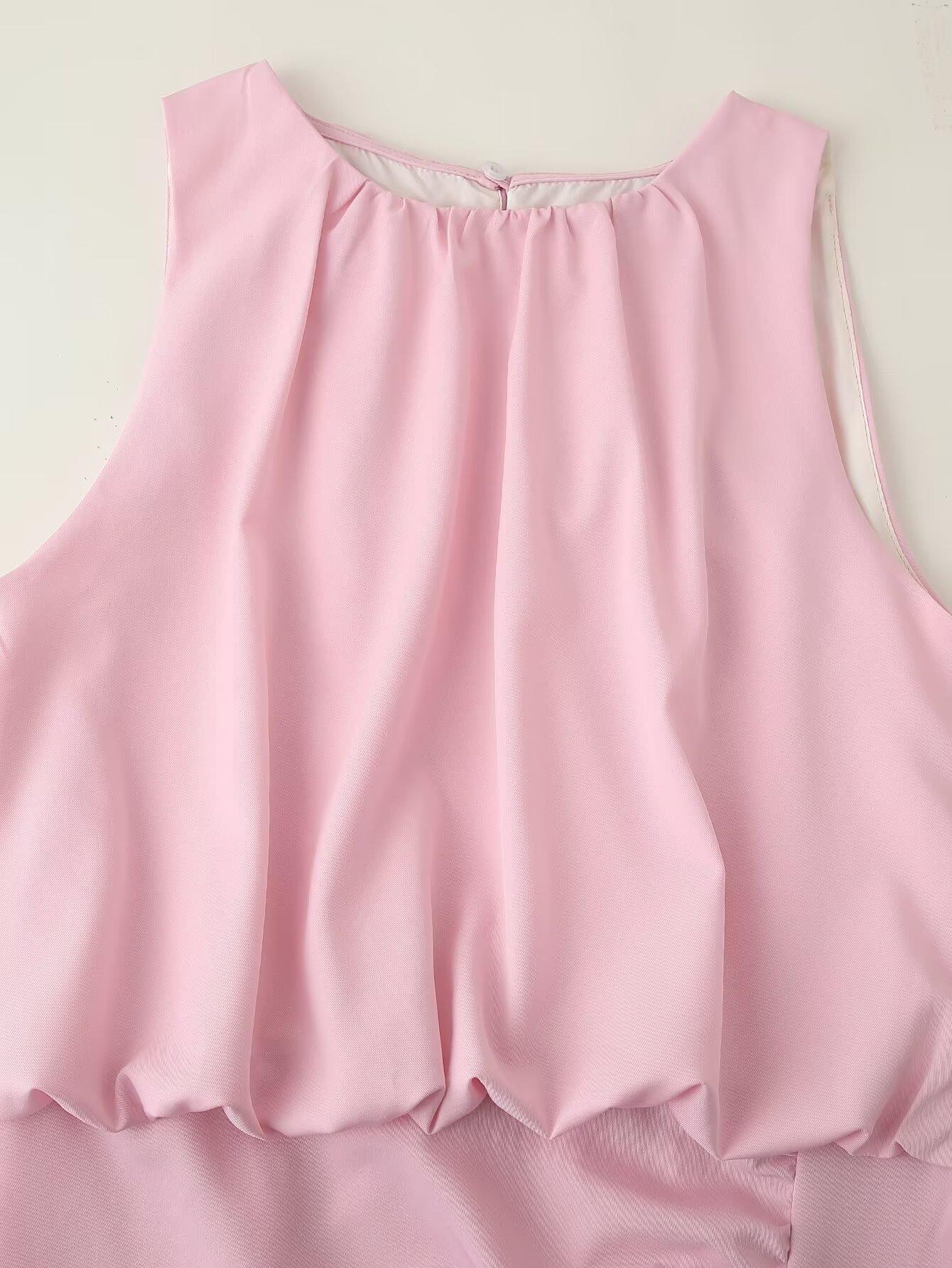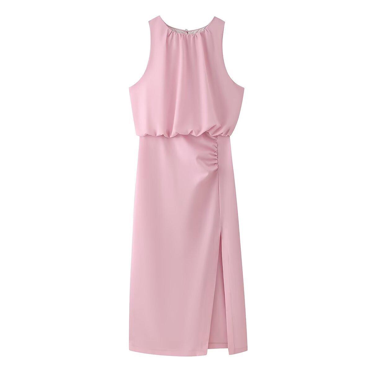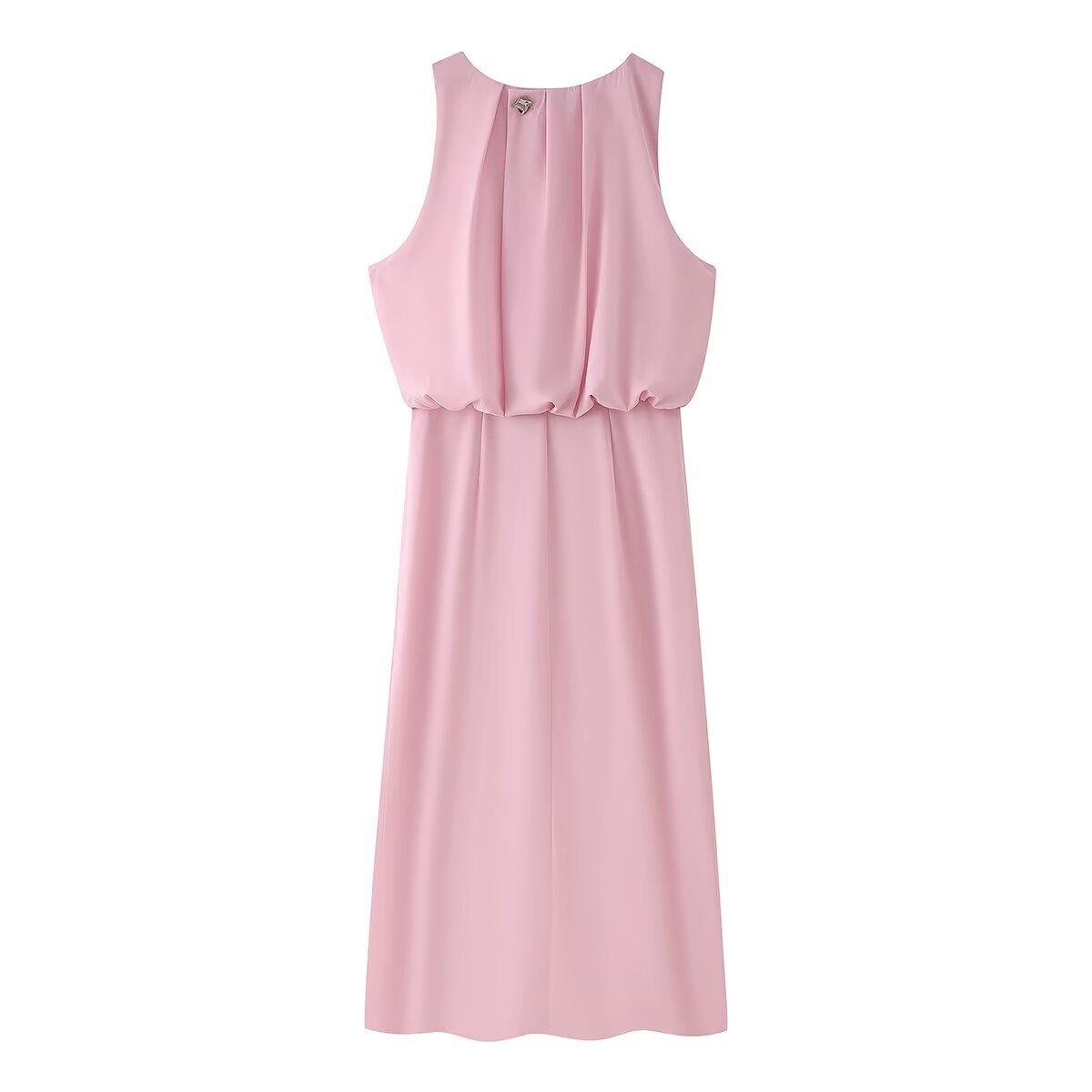 Moda Femenina Europea y Americana Transfronteriza AliExpress Vestido Midi Casual de Moda con Pliegues en la Cintura Más Vendido