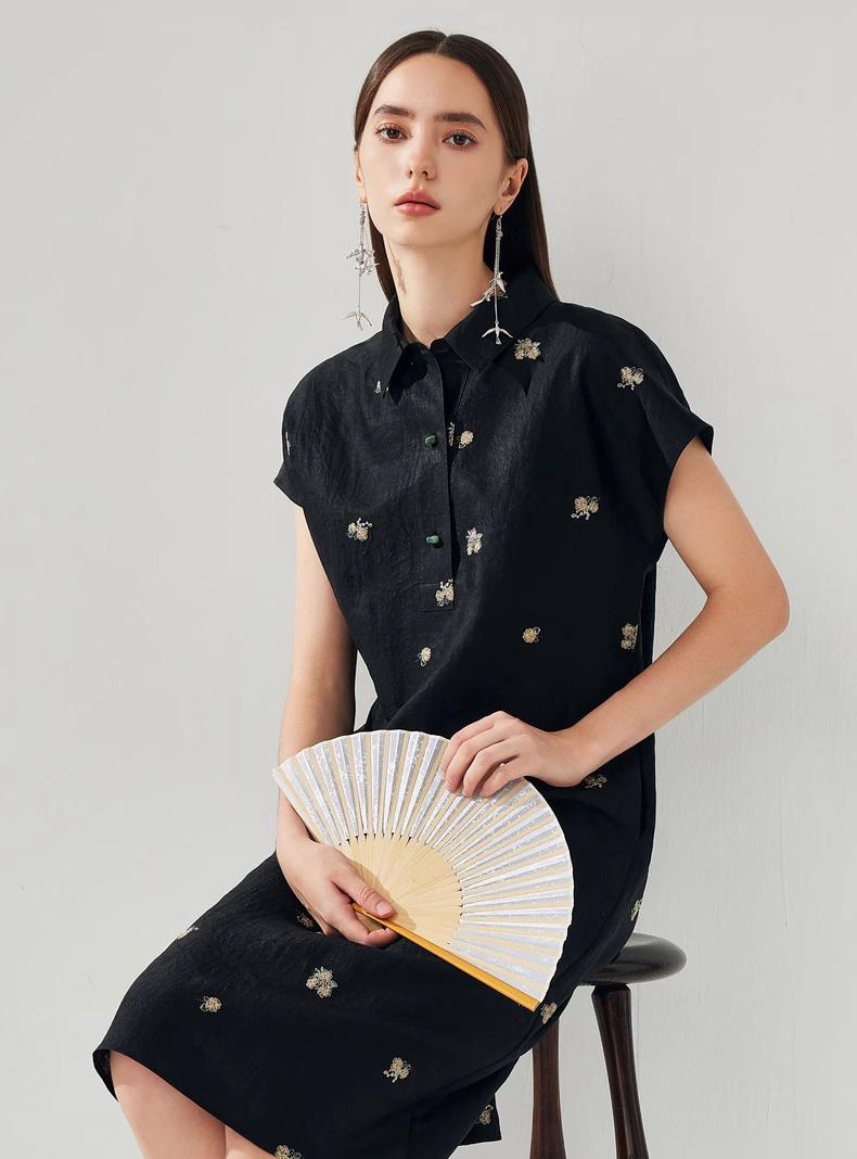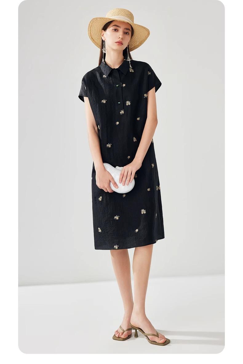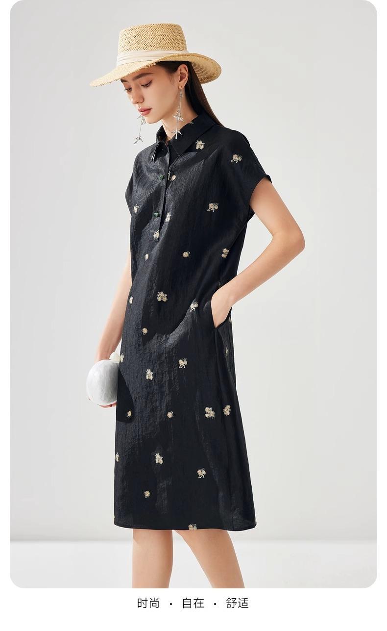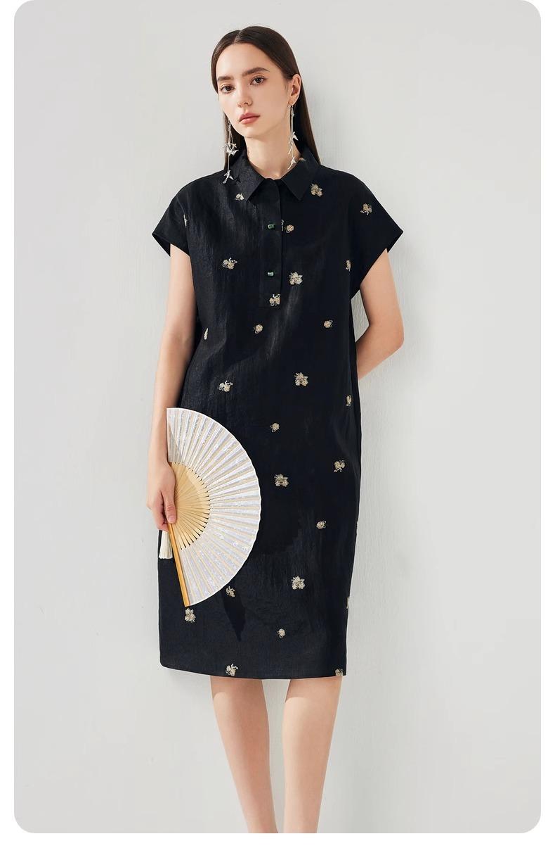 Vestido bordado con hilo de seda Xiangyun con patrón de craquelado de tortuga para mujer, nuevo verano 2025, falda midi de alta gama de seda de morera