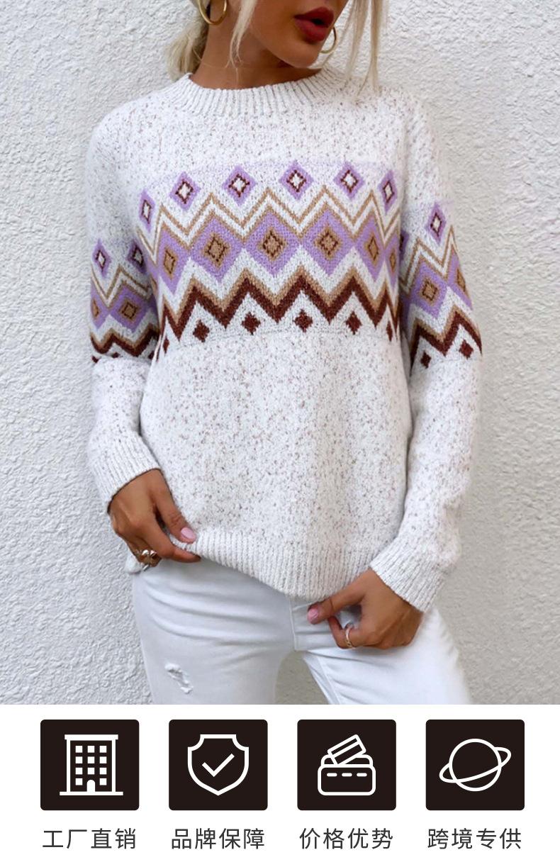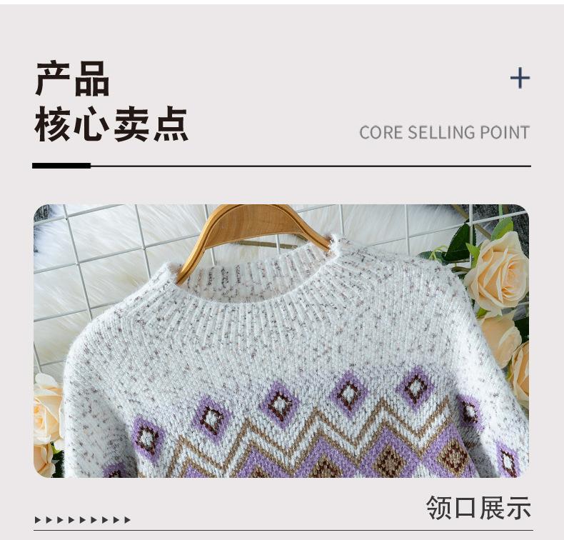 Comercio Exterior Otoño e Invierno Nuevo Jersey de Cuello Alto Medio Jacquard Manga Larga Tejido de Punto Casual Holgado Europeo y Americano Transfronterizo