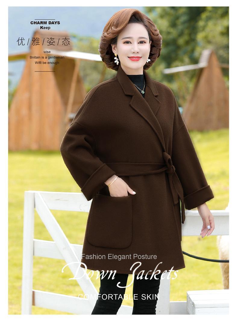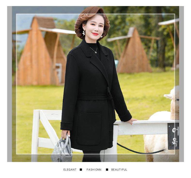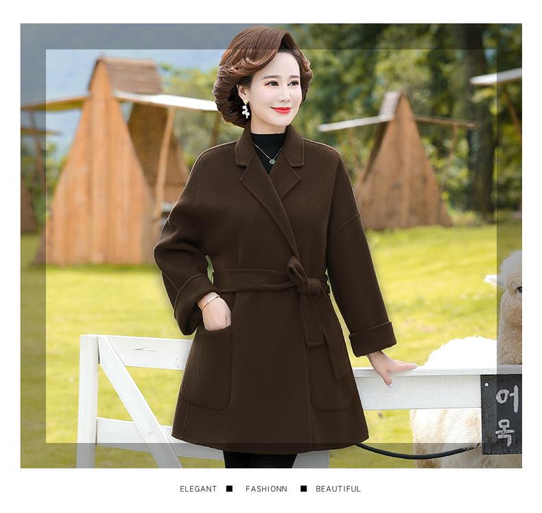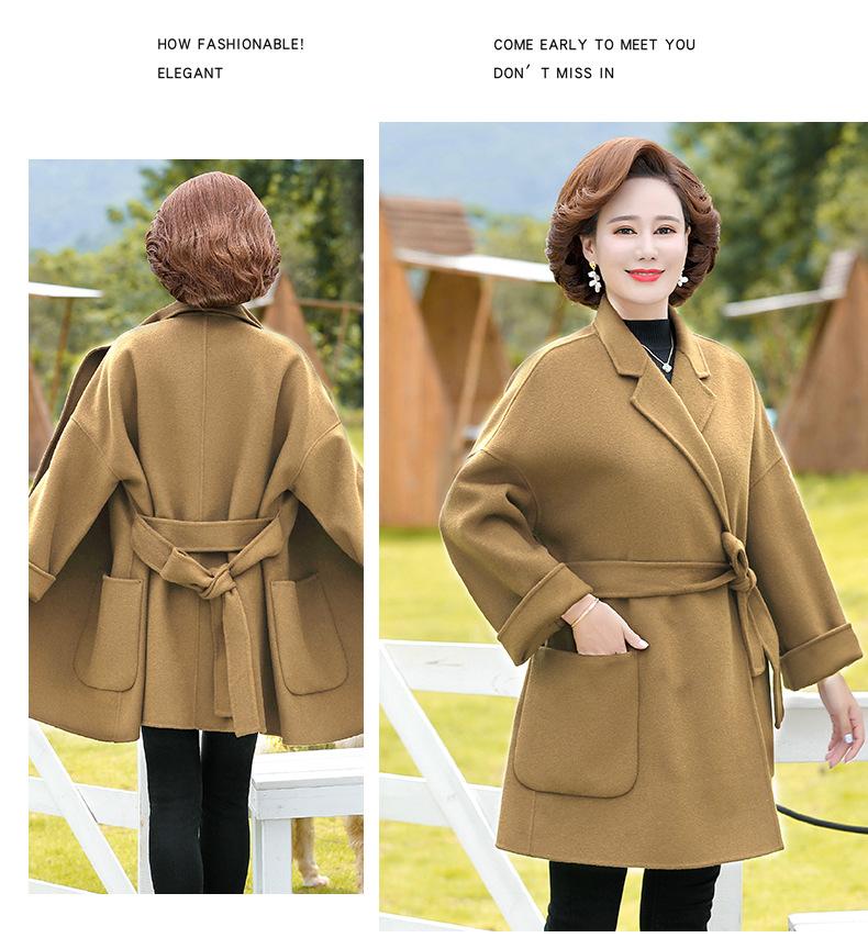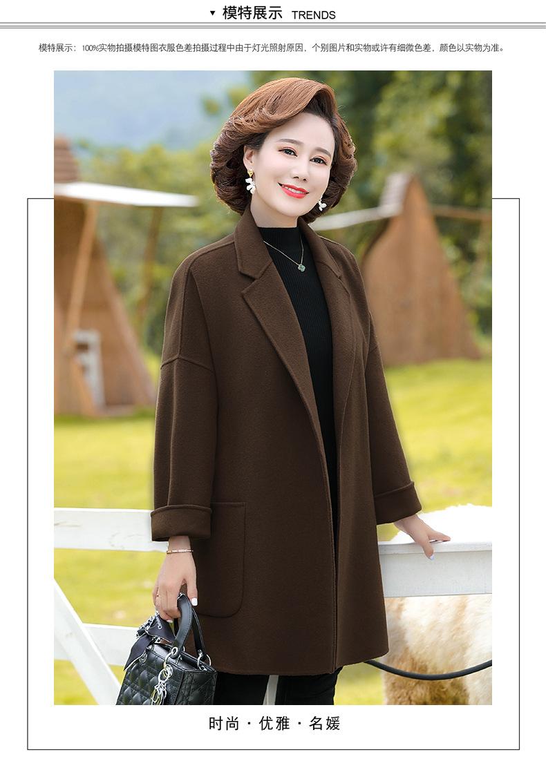 Abrigo de Lana Grueso Personalizado para Procesamiento de Ropa de Otoño 2022 para Señoras, Temperamento Holgado Cubre Carne, Color Sólido Doble Faz para Mujeres de Mediana Edad y Mayores