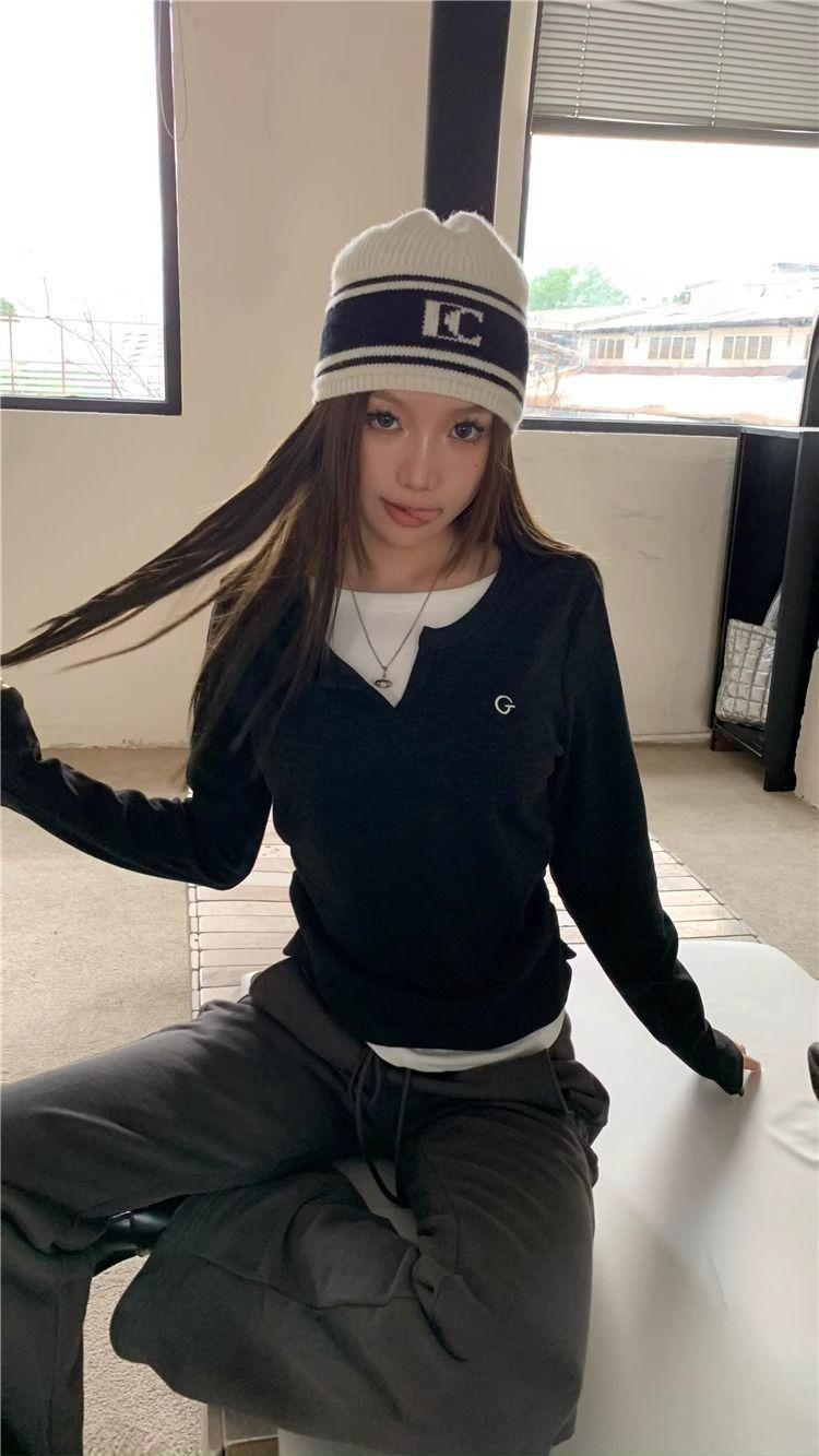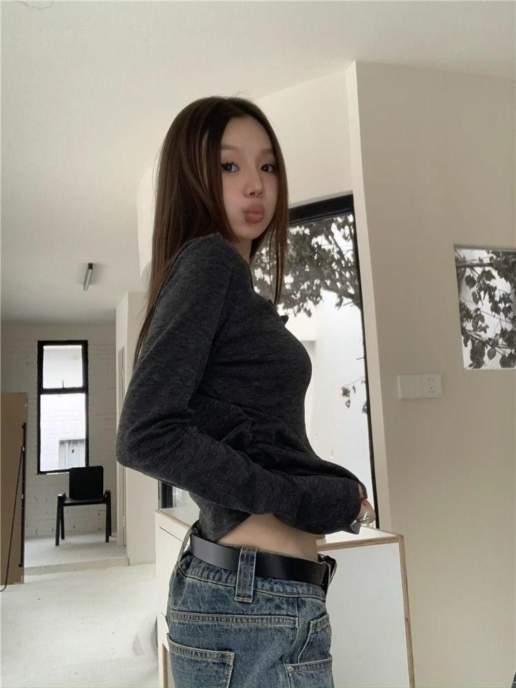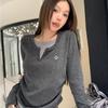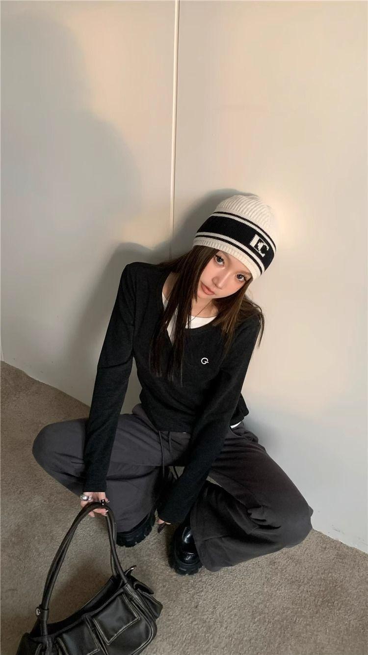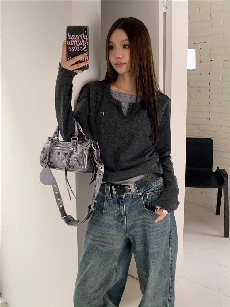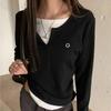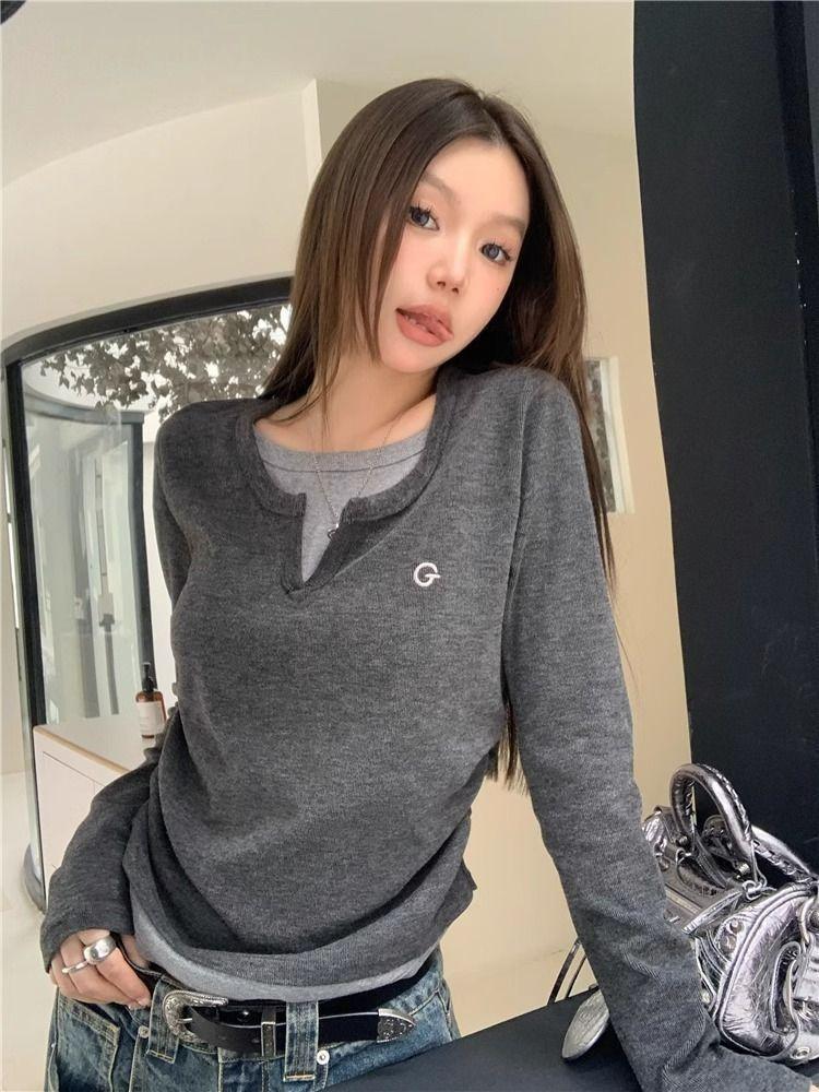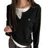 Camiseta de Manga Larga Falsa de Dos Piezas Estilo Americano Chic Camiseta Base Otoño Sentido del Diseño Nicho Ajustada Adelgazante Trendy Top Interior