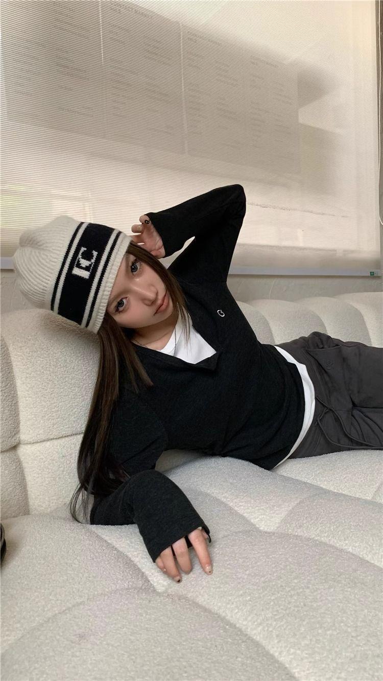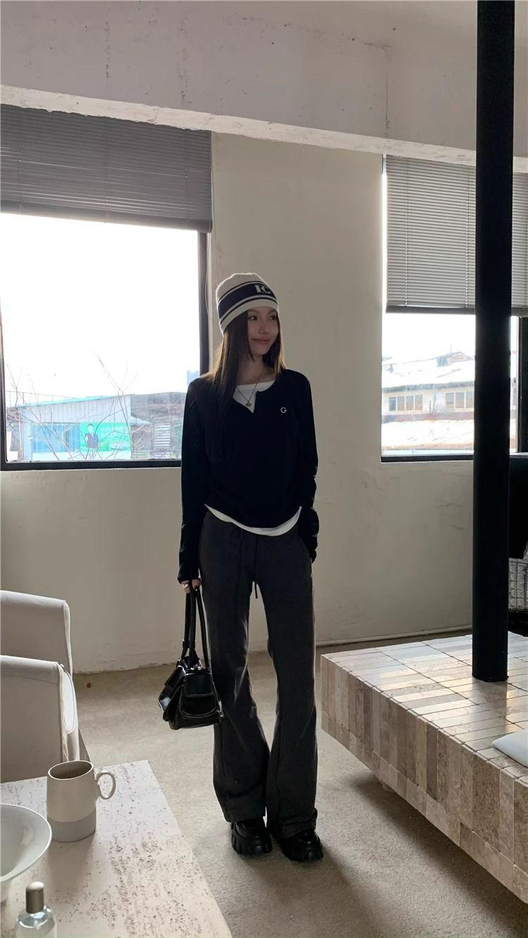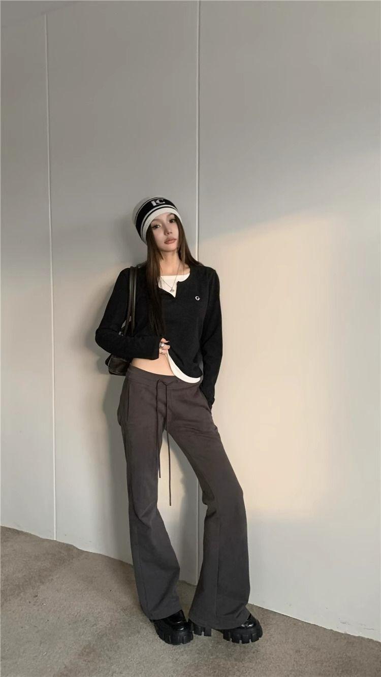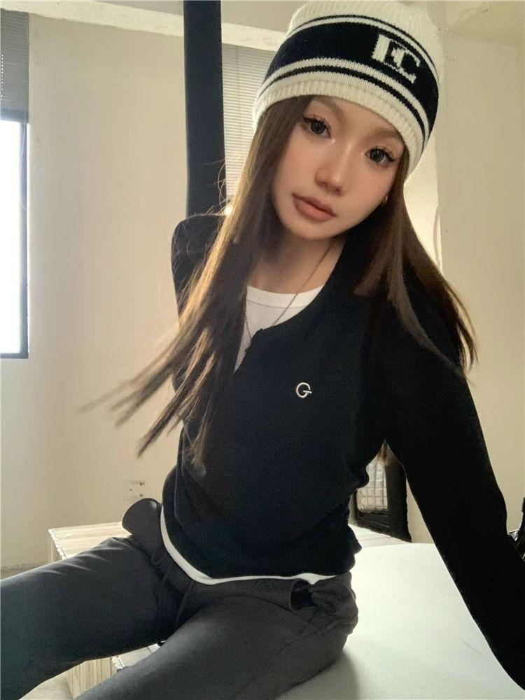 Camiseta de Manga Larga Falsa de Dos Piezas Estilo Americano Chic Camiseta Base Otoño Sentido del Diseño Nicho Ajustada Adelgazante Trendy Top Interior