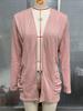 Amazon Europa y América Comercio Exterior Transfronterizo Otoño/Invierno 2025 Cárdigan de Punto Color Sólido Largo Medio Manga Larga Bolsillo Ropa Exterior para Mujer