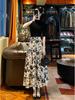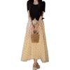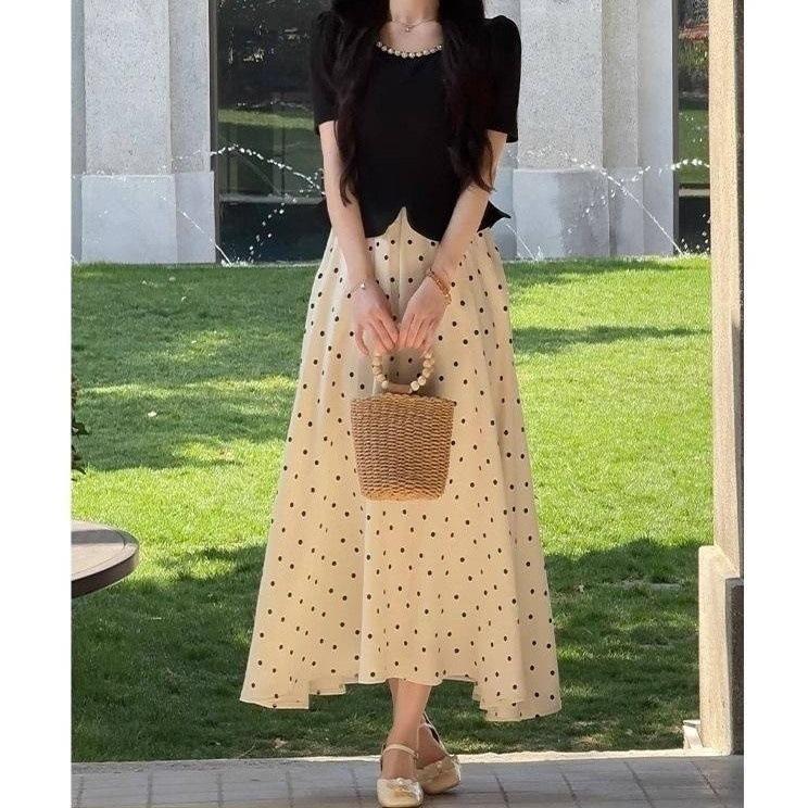 2025 Verano Nuevo Estilo Hepburn Francés Top Negro con Cuello Muy Bordado + Falda Midi de Lunares Set de Dos Piezas Mujer