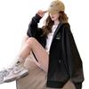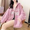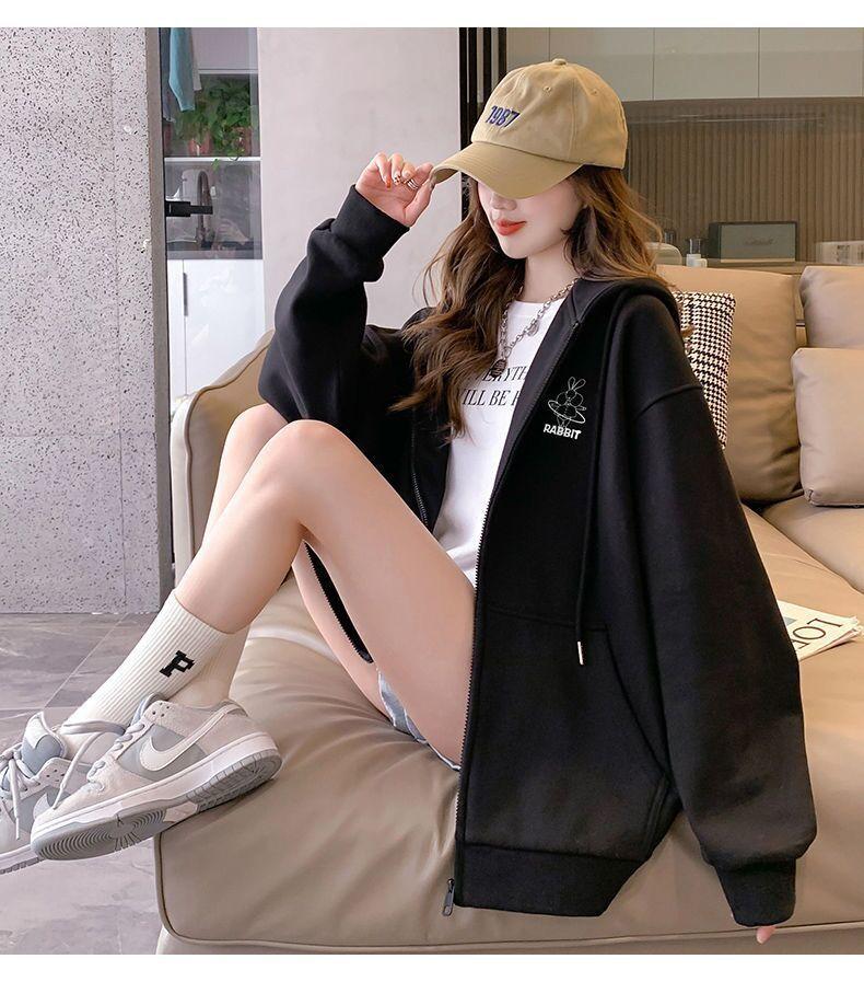 Sudadera para mujer con forro polar y gruesa, nuevo estilo de otoño e invierno, cárdigan deportivo casual suelto para estudiantes con capucha, bloque de color, chaqueta con cremallera