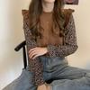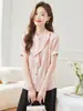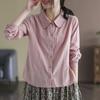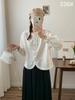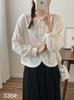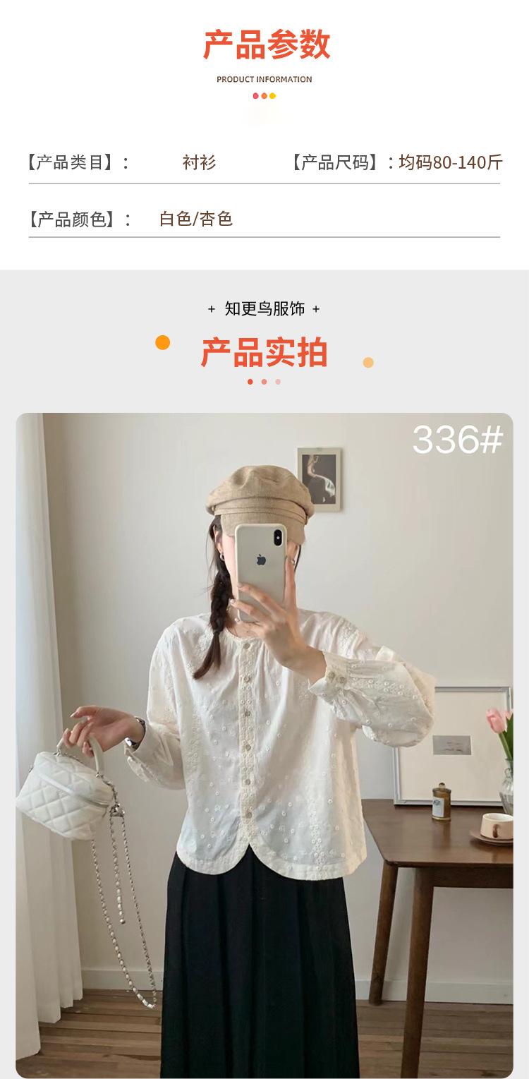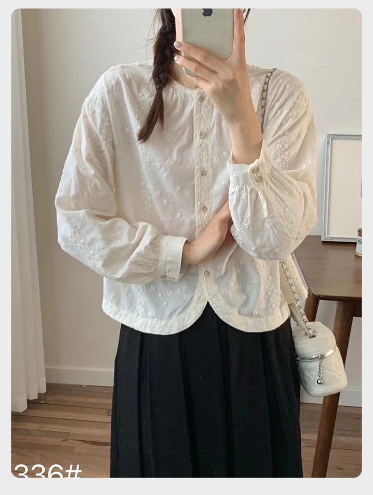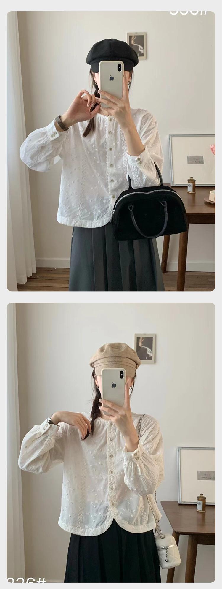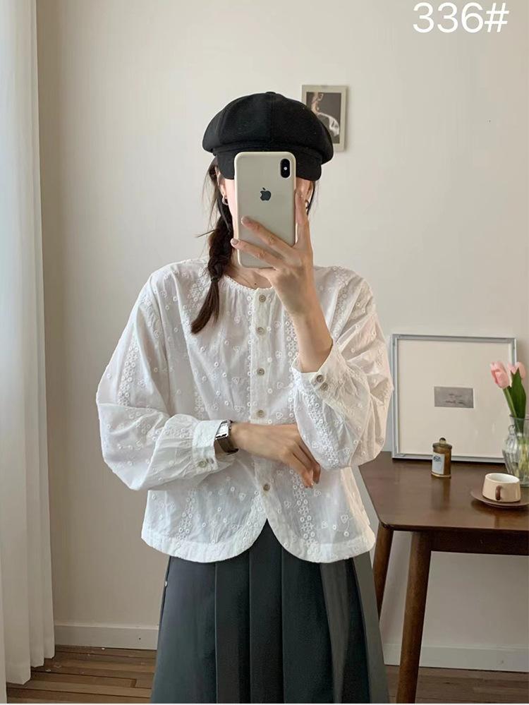 Primavera y Otoño Nuevo Estilo Artístico Traje Estilo Francés Camisa de Manga Larga Bajo Corto Curvo Bordado Pesado Camisa de Mujer