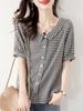 Camisa bonita popular de este año retro 2025 verano nueva solapa pequeña manga corta cuadros negros top suelto para mujer