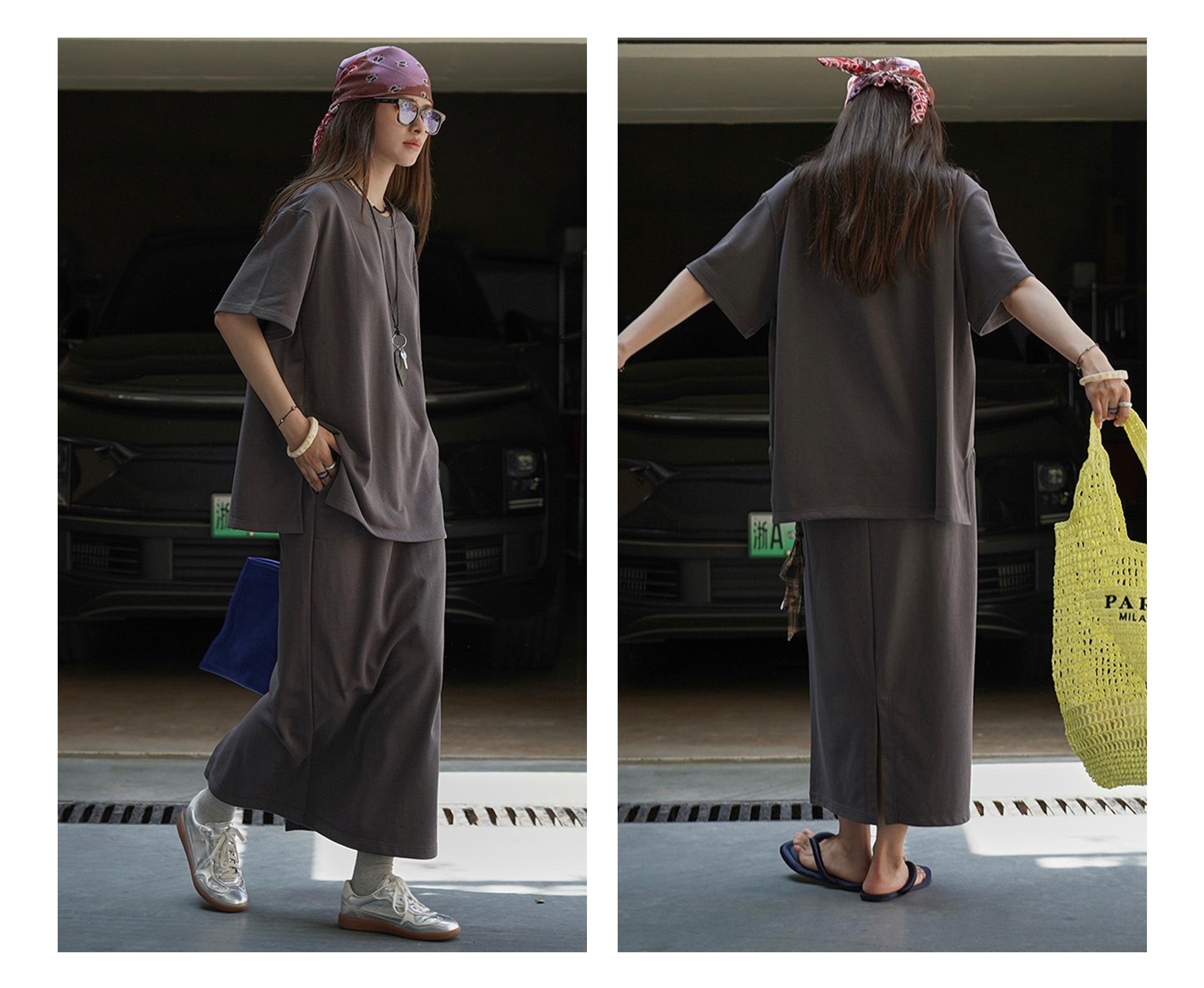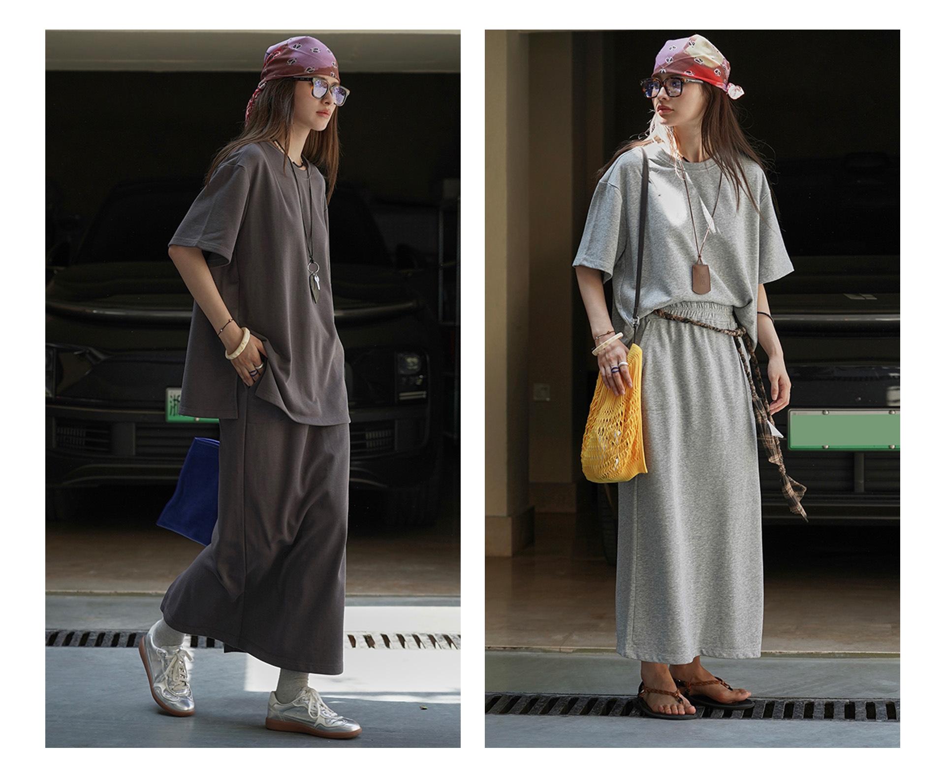 Principios de Otoño Nuevo Estilo Coreano Moda y Holgada Perezosa Camiseta + Falda Elegante Look Adelgazante Traje Casual para Mujeres