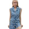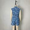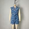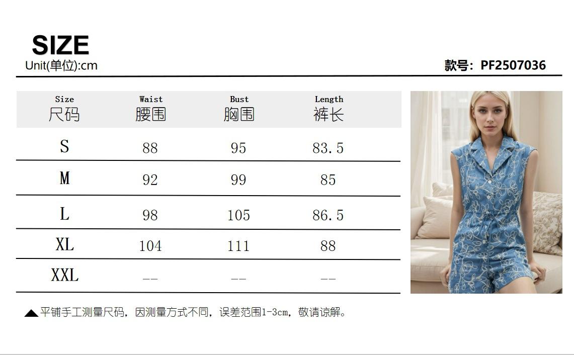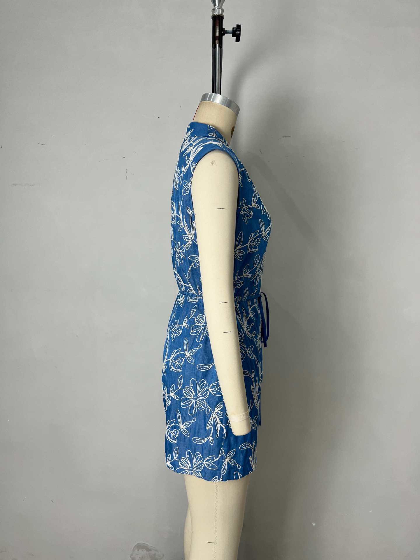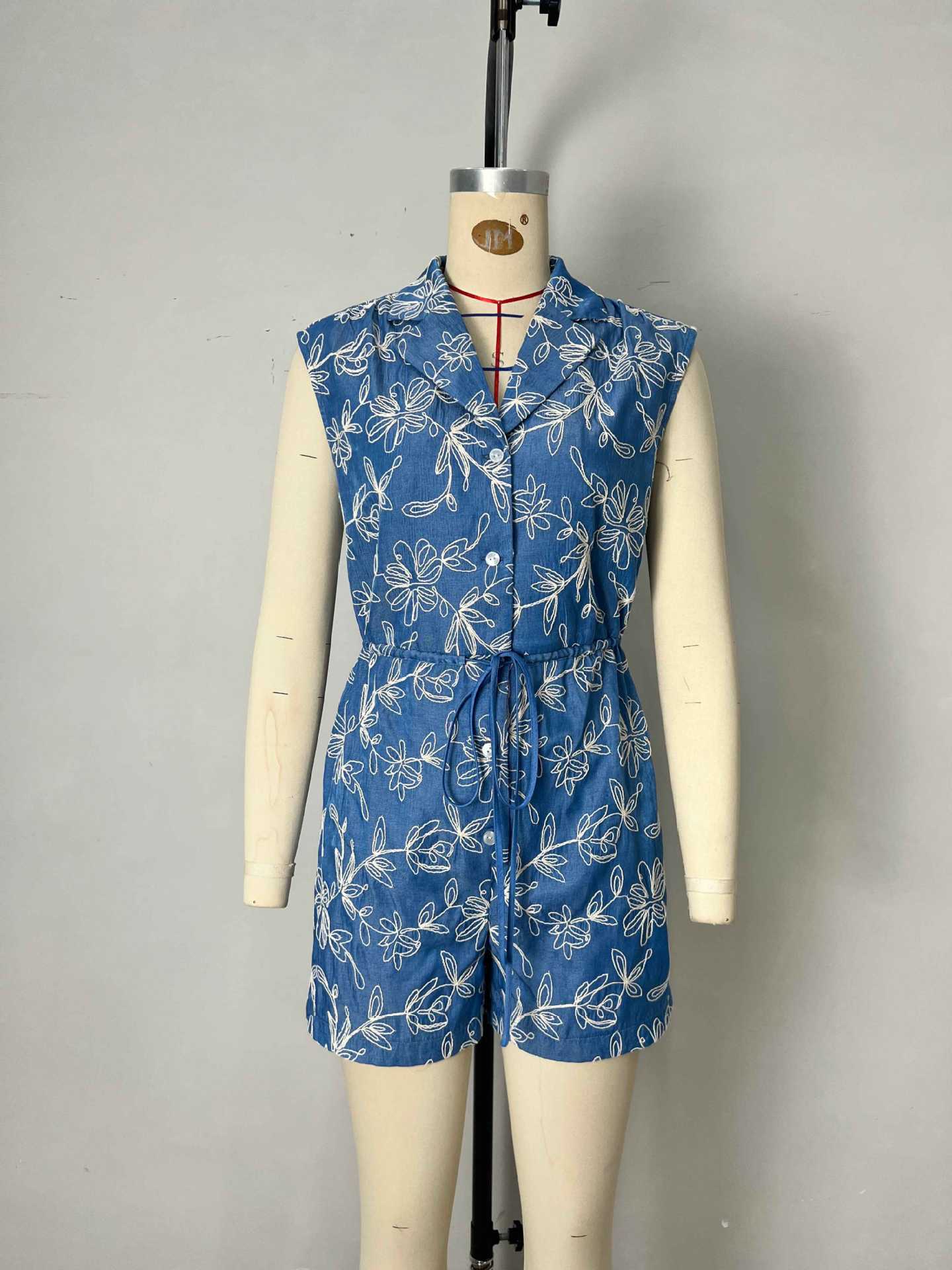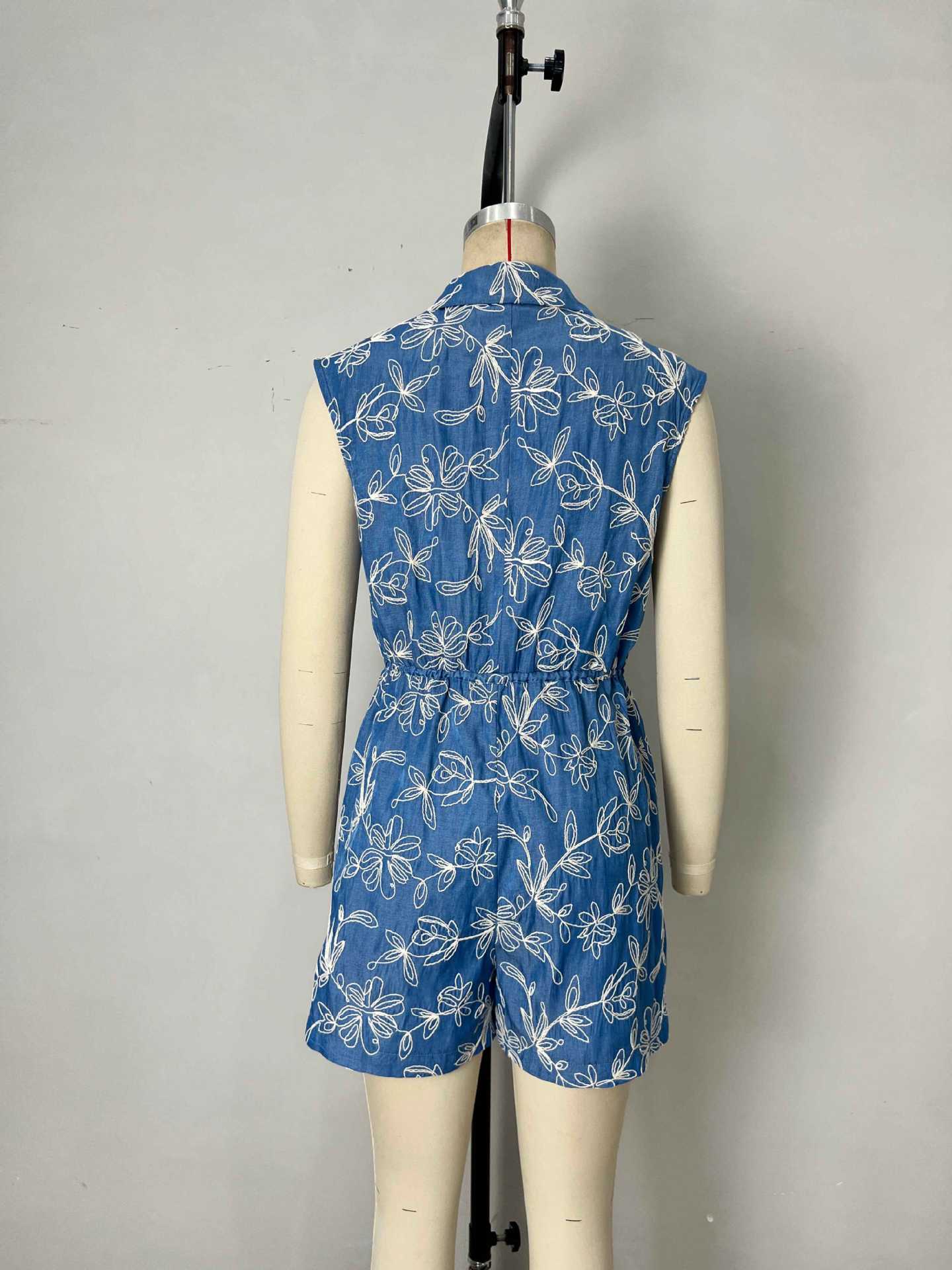 Moda Europea y Americana Sin Mangas Solapa Exquisito Bordado de Flores Detalle de Diseño con Lazo en la Cintura Mono de Mujer