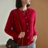 Otoño e Invierno 2024 Nuevo Cárdigan de Punto de Cachemira con Cuello Redondo, Manga Larga, Suelto, Color Sólido, Chaqueta Cálida para Mujer