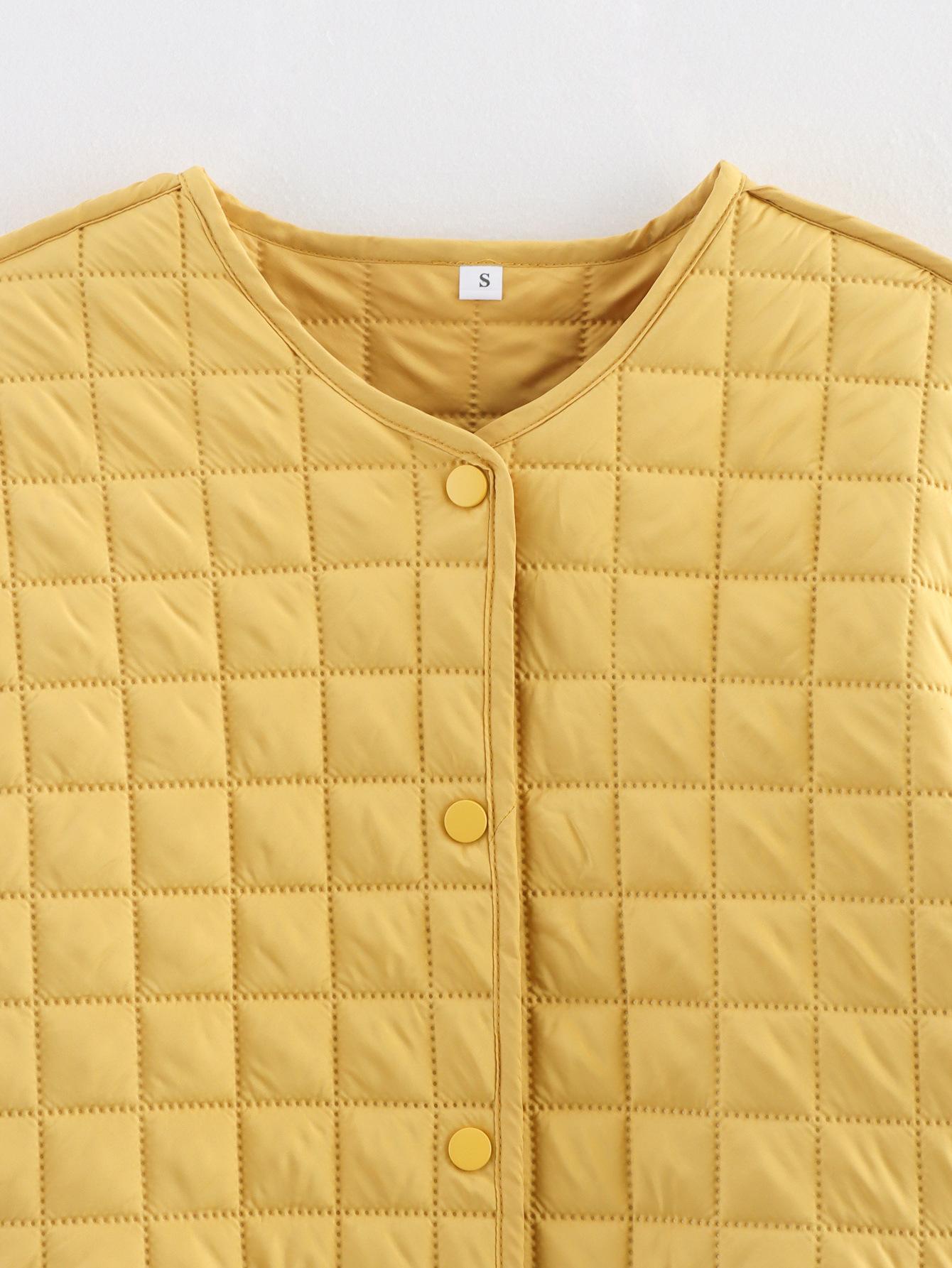 Ropa de Mujer de Comercio Exterior Transfronterizo 2025 Invierno Estilo Europeo y Americano Cuello Redondo Manga Larga Botonadura Sencilla Chaqueta de Algodón a Cuadros para Mujer A15064