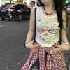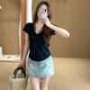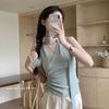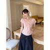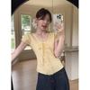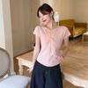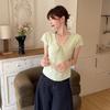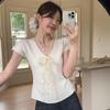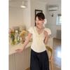 Shanli Dadi Estilo Coreano Estilo Suave Encaje Empalmado Tirantes Camiseta de Manga Corta Verano Nuevo Estilo Versátil