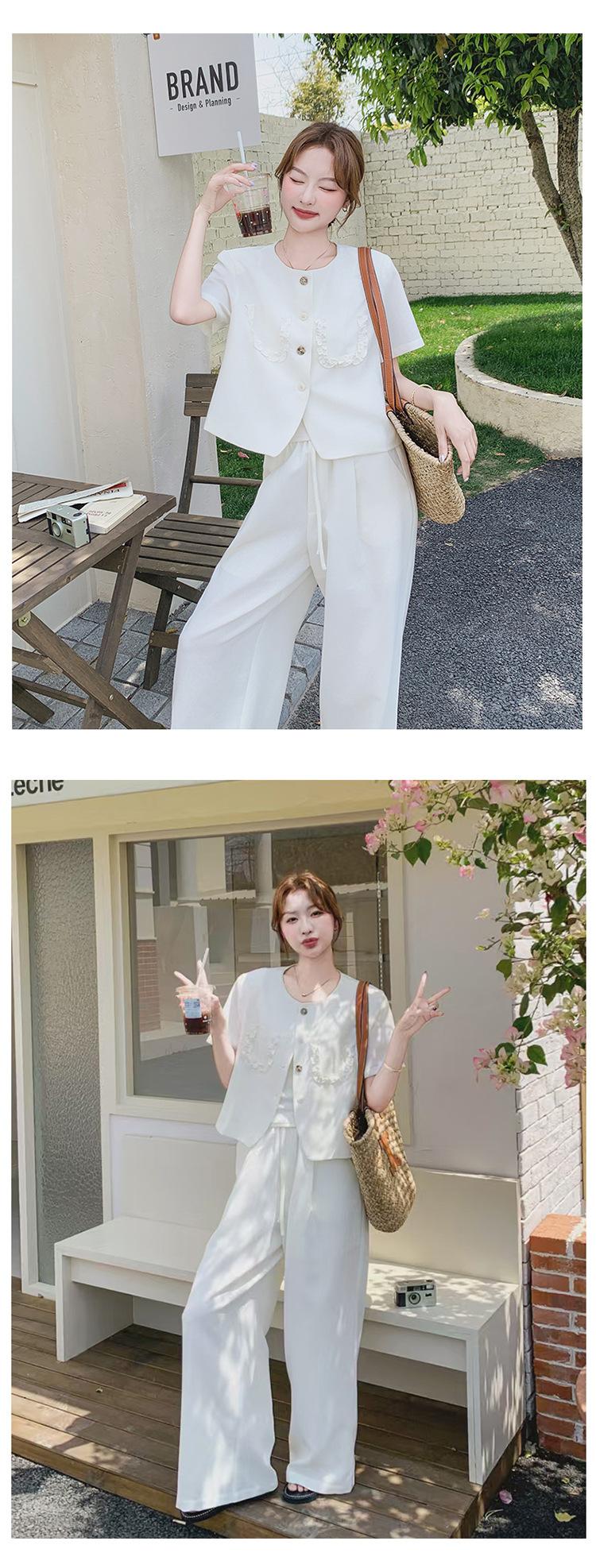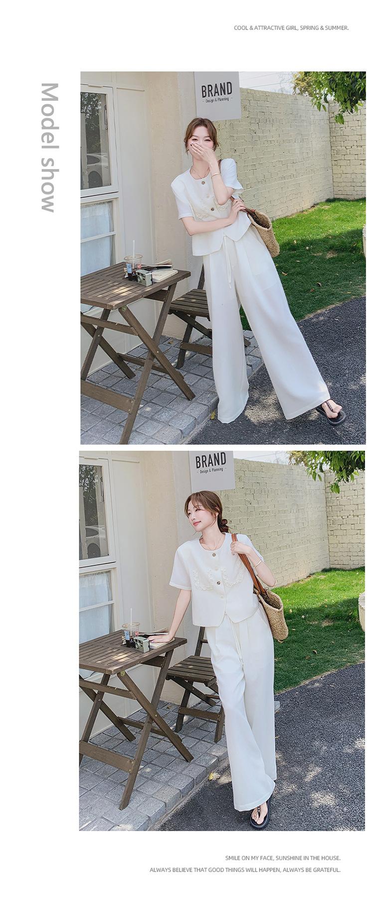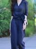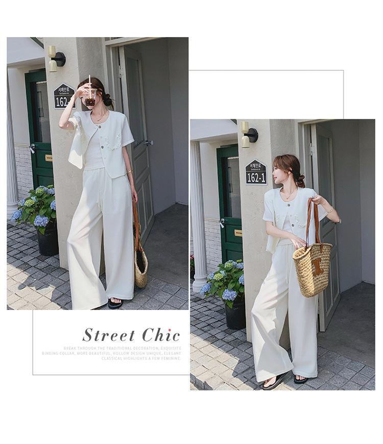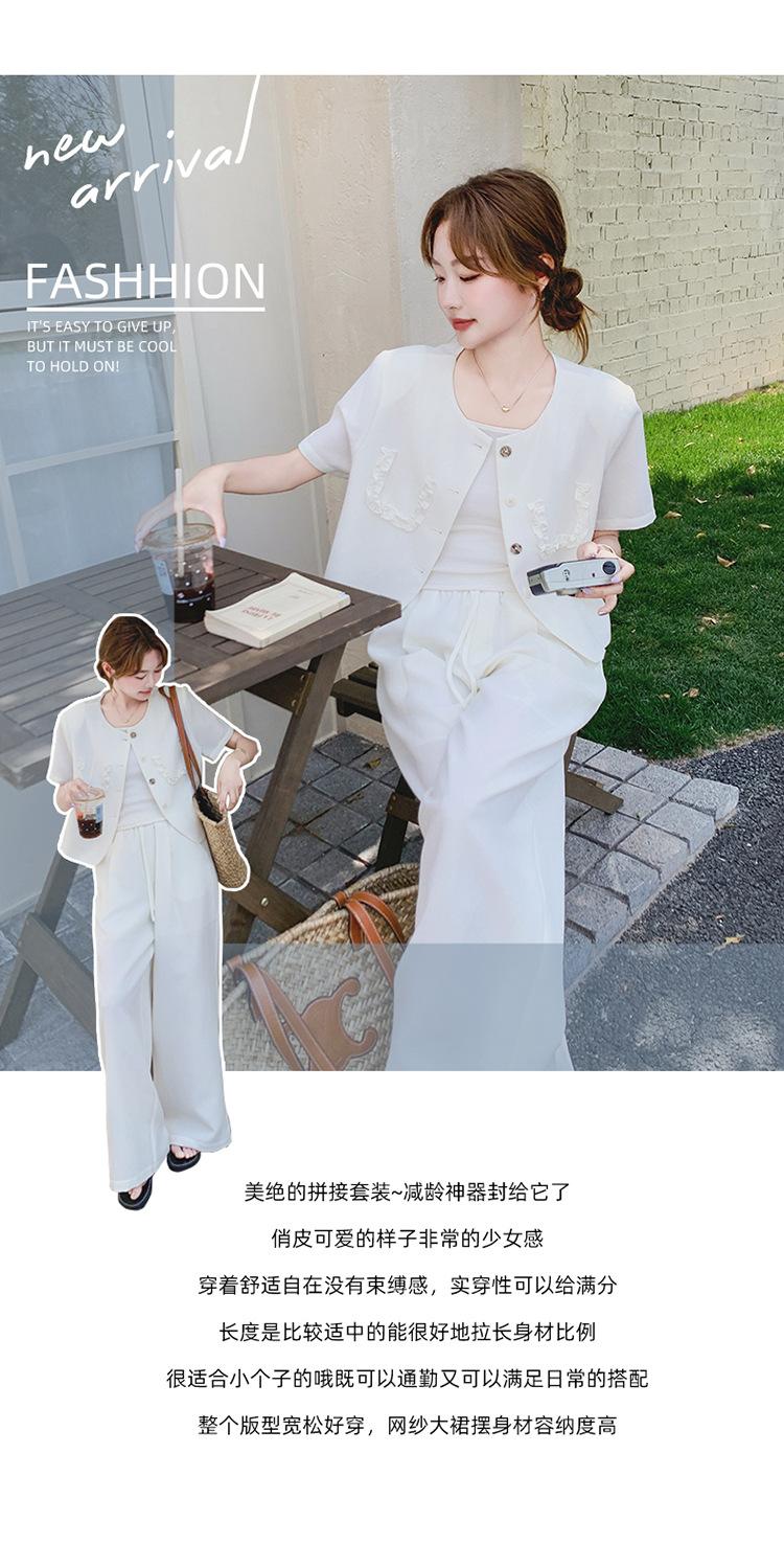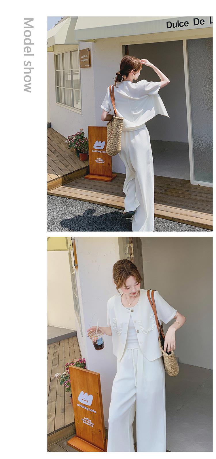 2025 Nuevo Verano Moda Casual Versátil Reductor de Edad Elegante Gris Cuello en V Manga Corta Top Pantalón de Pierna Ancha Traje