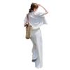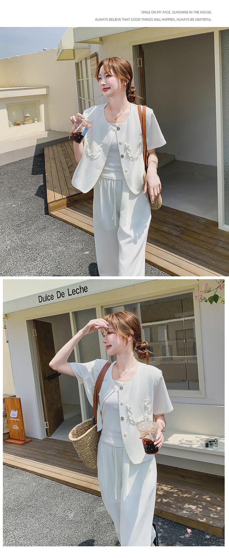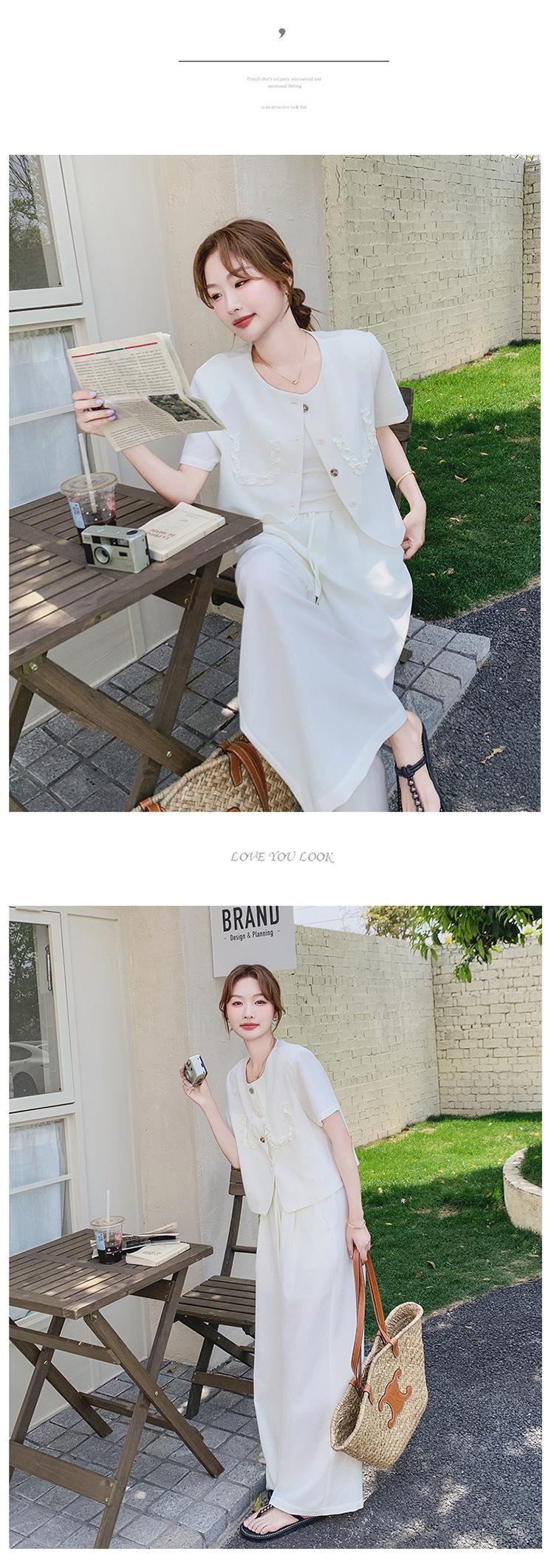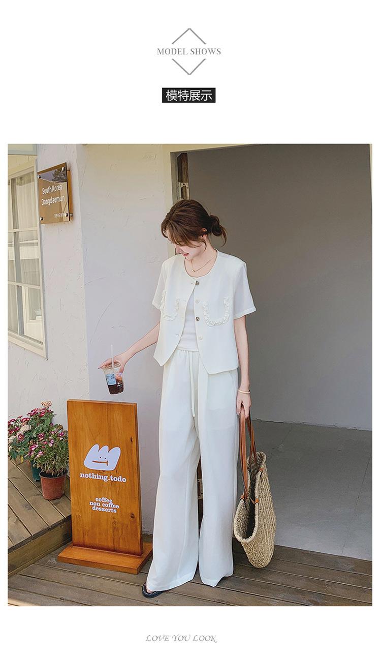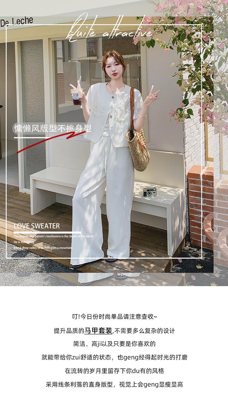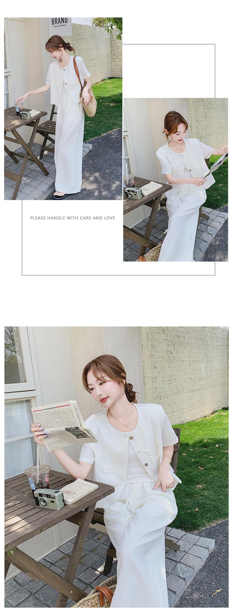 2025 Nuevo Verano Moda Casual Versátil Reductor de Edad Elegante Gris Cuello en V Manga Corta Top Pantalón de Pierna Ancha Traje