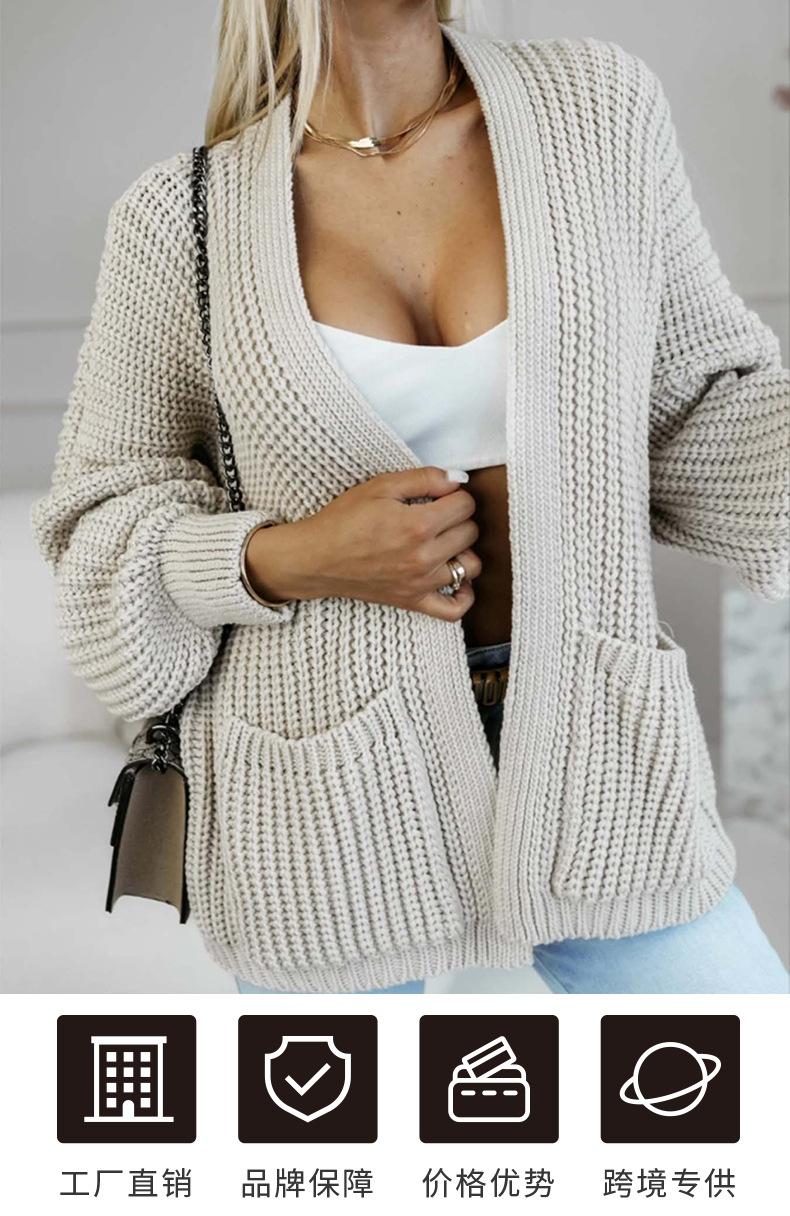 Cárdigan de Punto Grueso para Mujer de Otoño e Invierno Transfronterizo Europeo y Americano, Chaqueta de Moda Casual Holgada con Bolsillo, Suéter para Mujer de Comercio Exterior