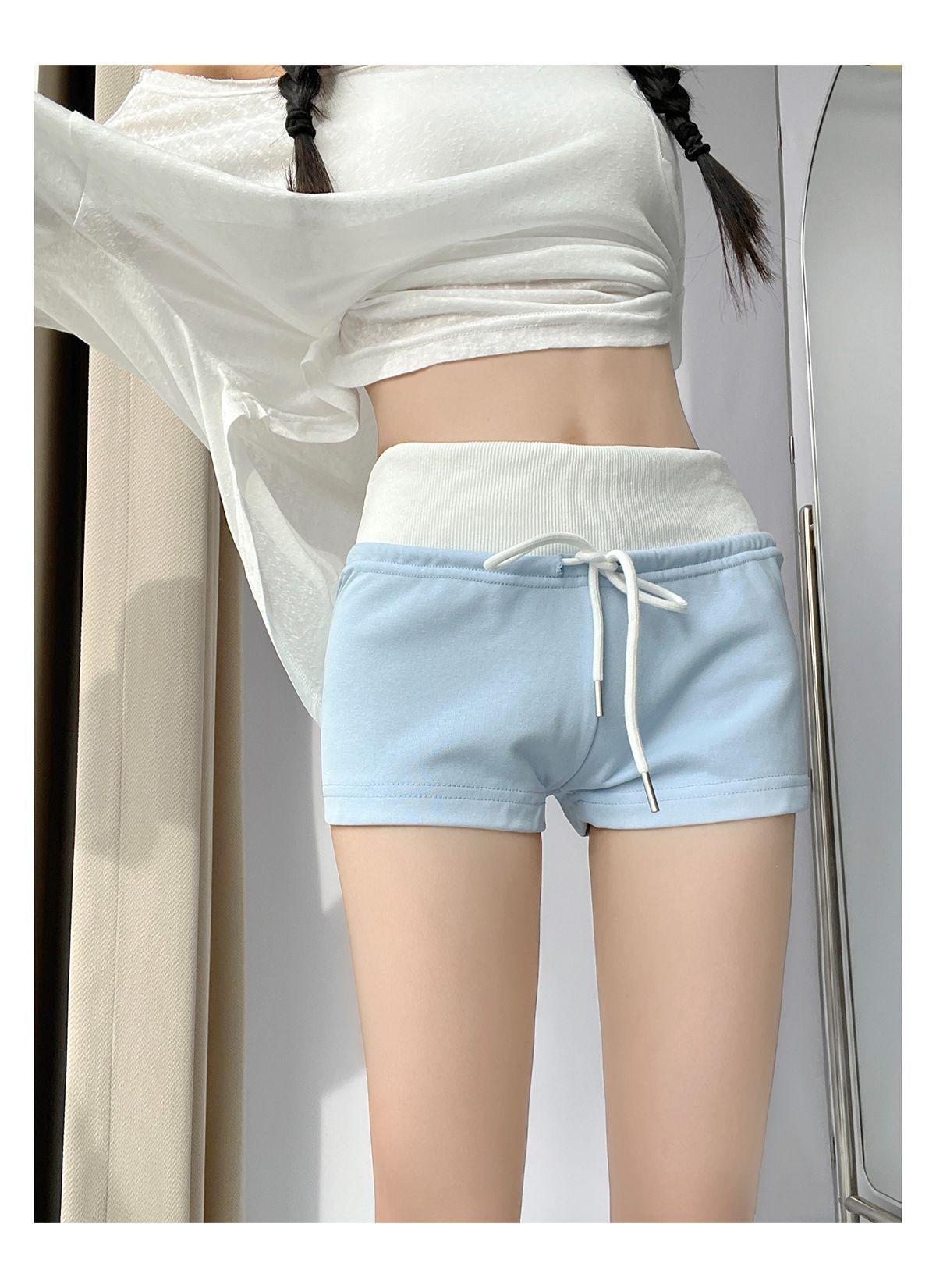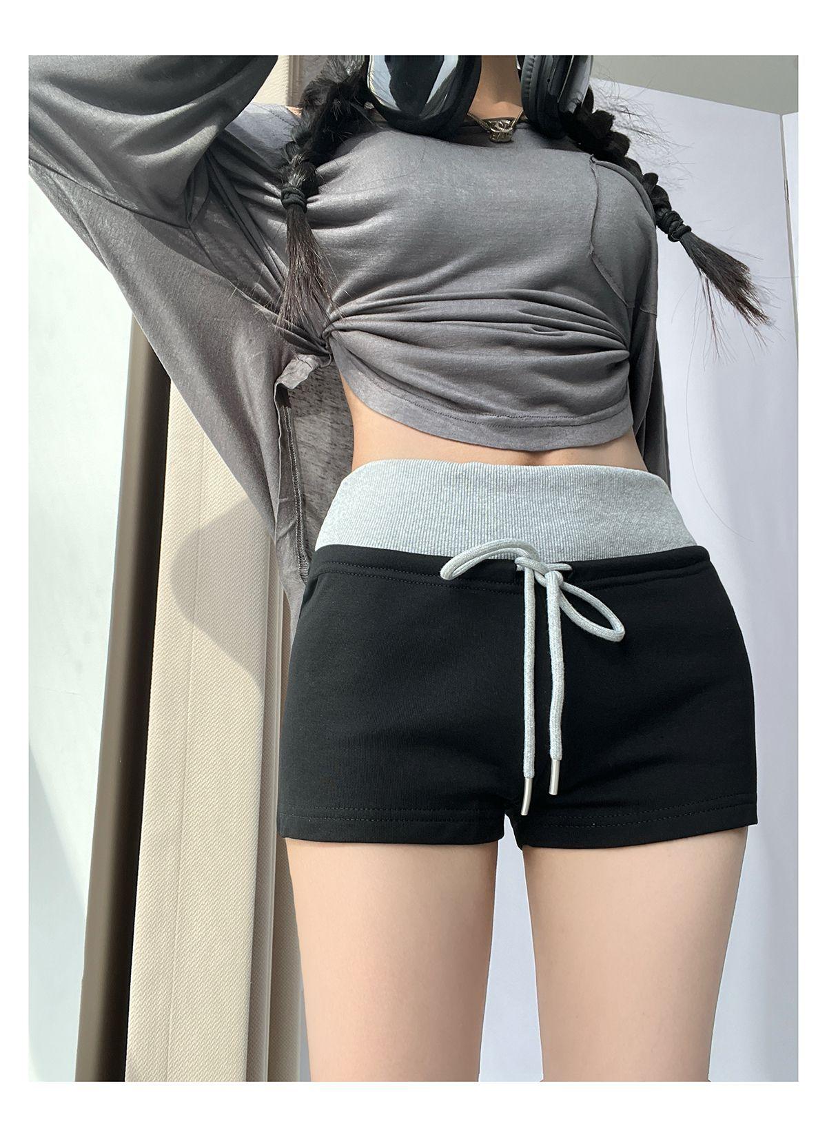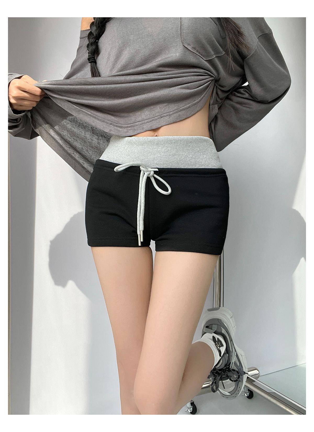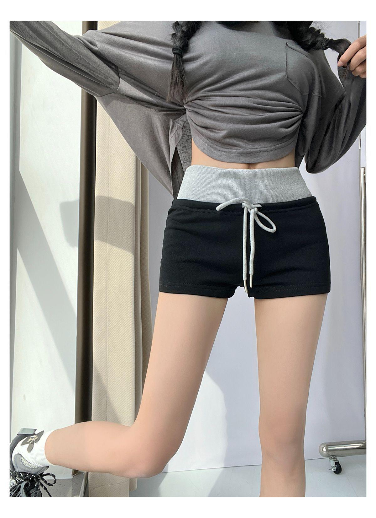 Shorts Sexy de Estilo Europeo y Americano con Cordón Ajustable en Bloques de Color para Mujer 2025 Nuevos Pantalones Casuales de Verano de Cintura Alta y Corte Slim