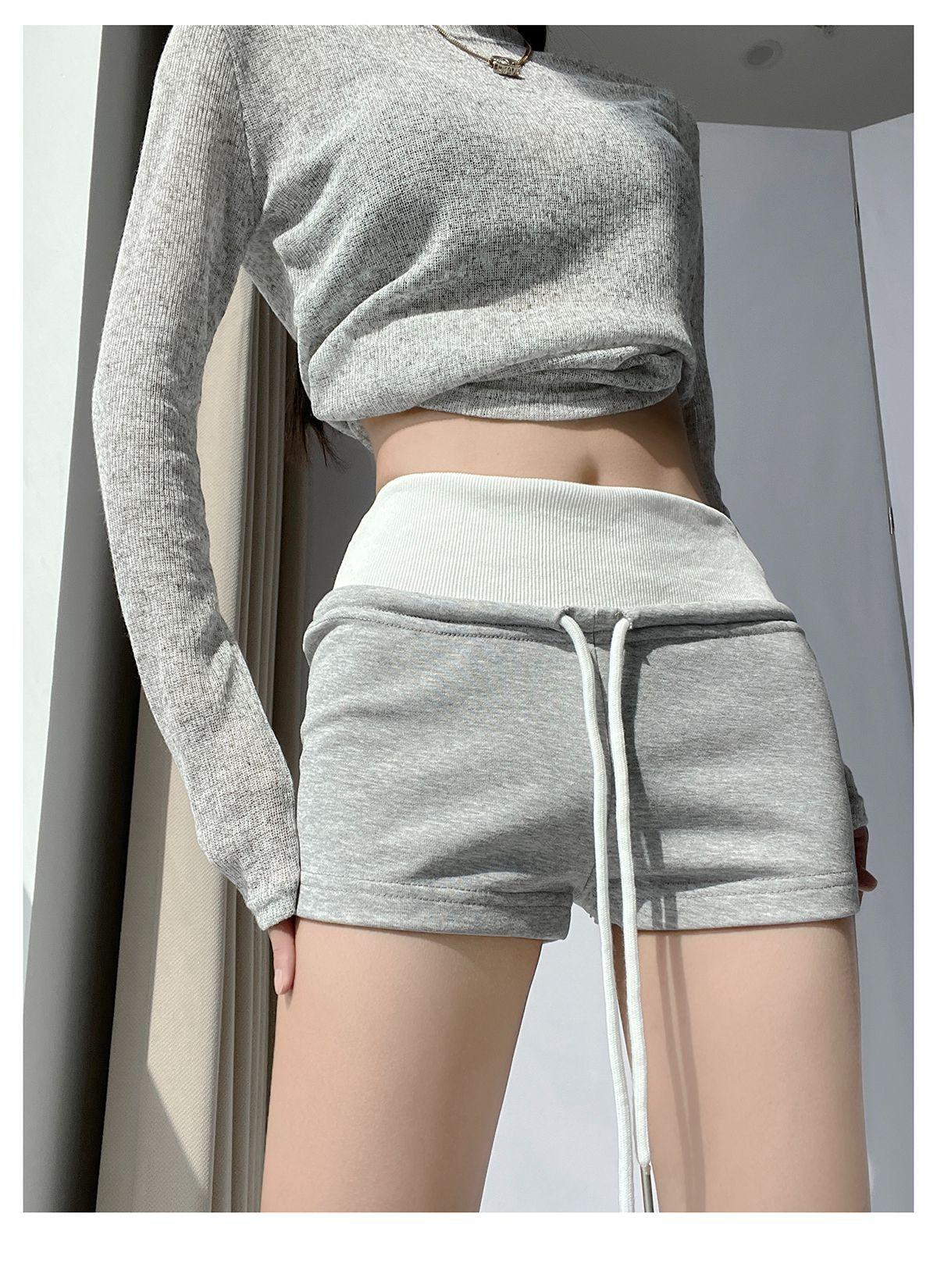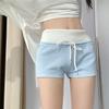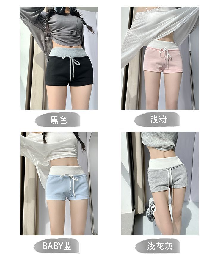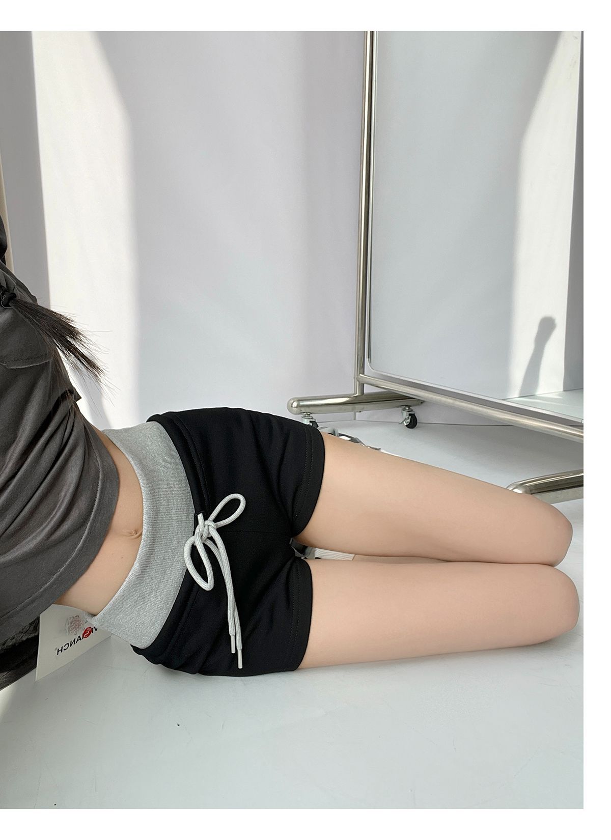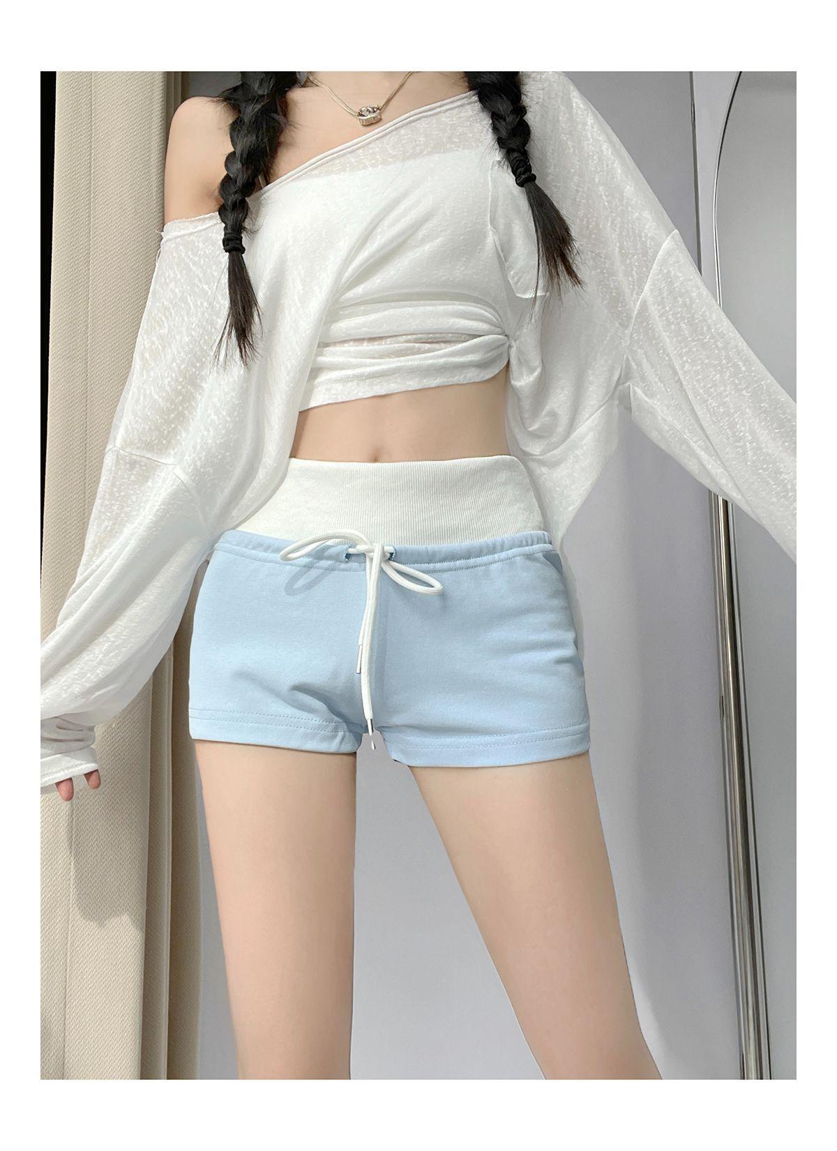 Shorts Sexy de Estilo Europeo y Americano con Cordón Ajustable en Bloques de Color para Mujer 2025 Nuevos Pantalones Casuales de Verano de Cintura Alta y Corte Slim